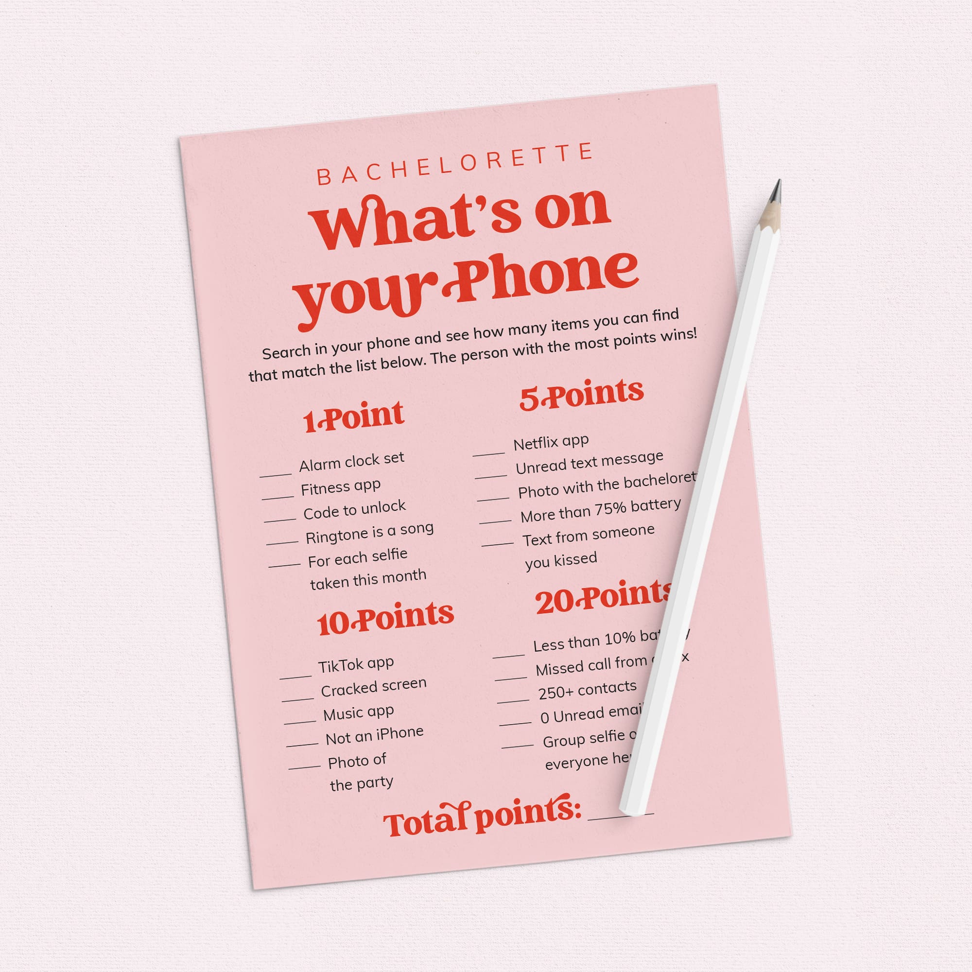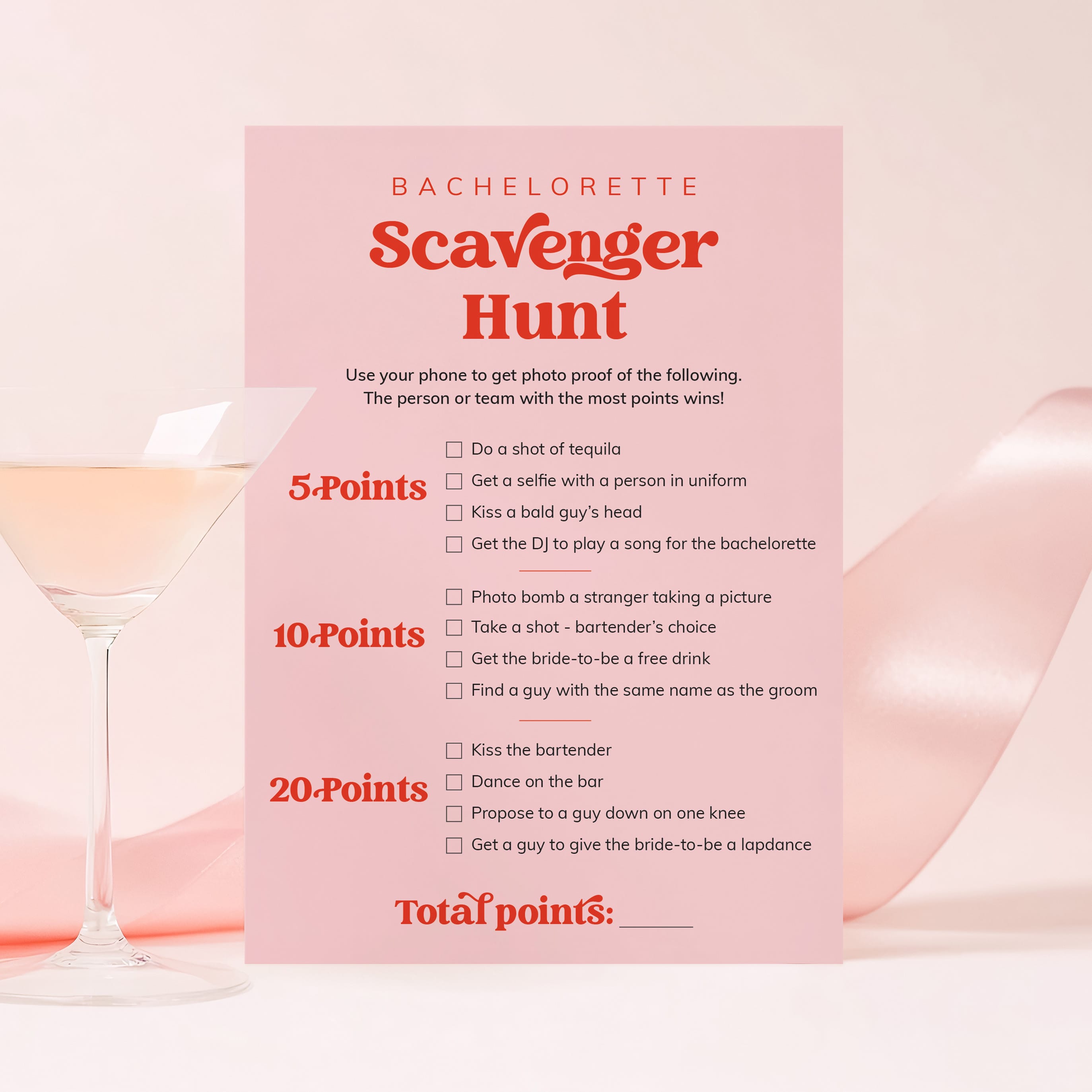 Looking for a fun and stylish addition to your bachelorette party? This Bachelorette Party Games Bundle is all about laughter, friendship and unforgettable memories. Featuring a soft pink background paired with bold retro red lettering, this playful design sets the perfect tone for a fabulous night with your favorite ladies.