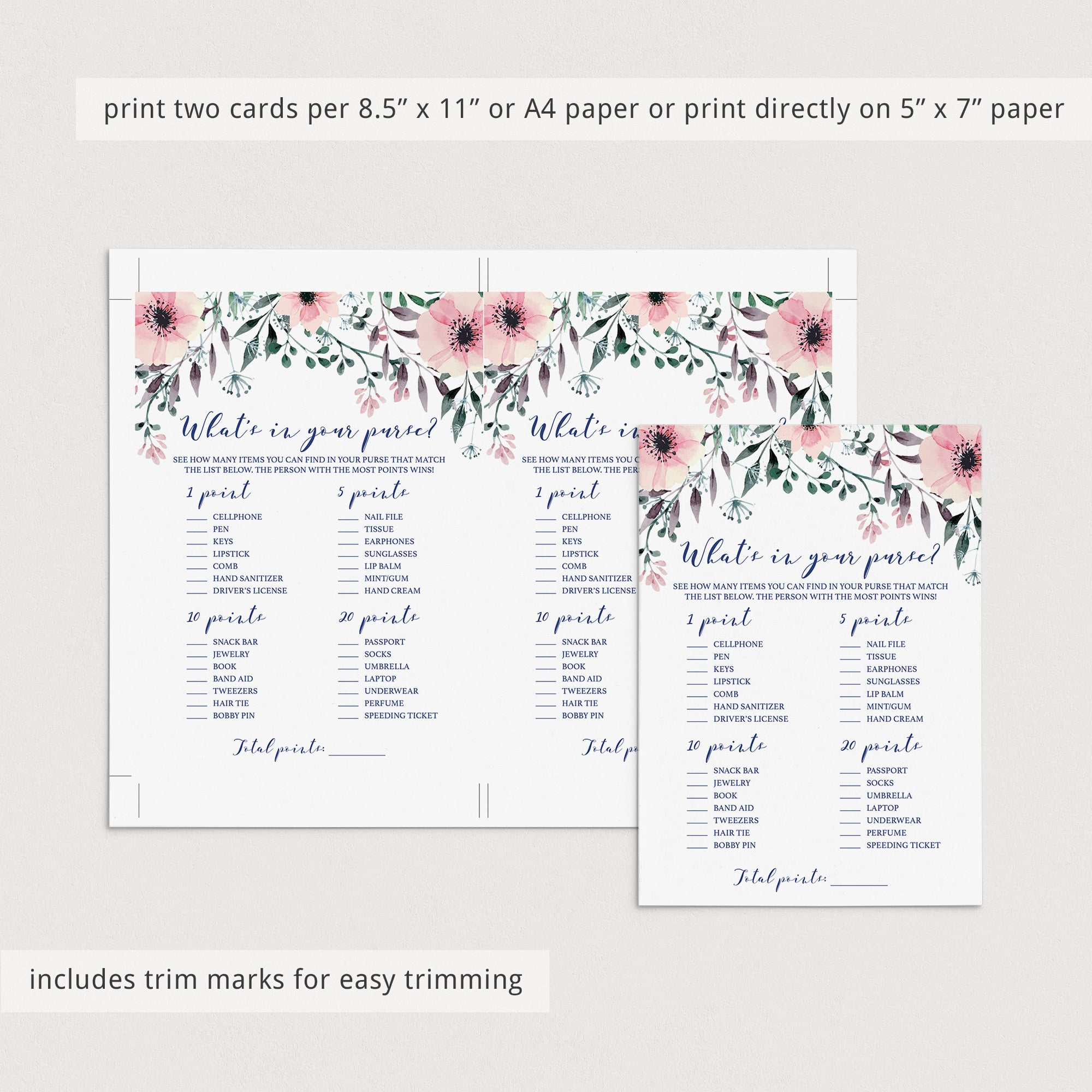 Looking for a fun game to play at your bridal shower? Do a purse raid with these gorgeous pink bridal shower game cards! Let your guests look through their purse and see if they can find any items that match the lists on the cards. The person with the highest score wins.