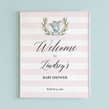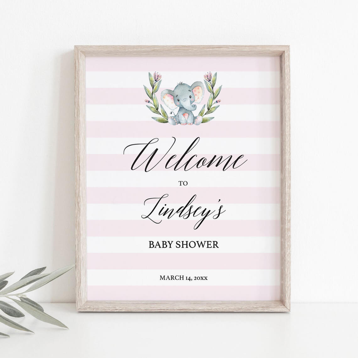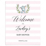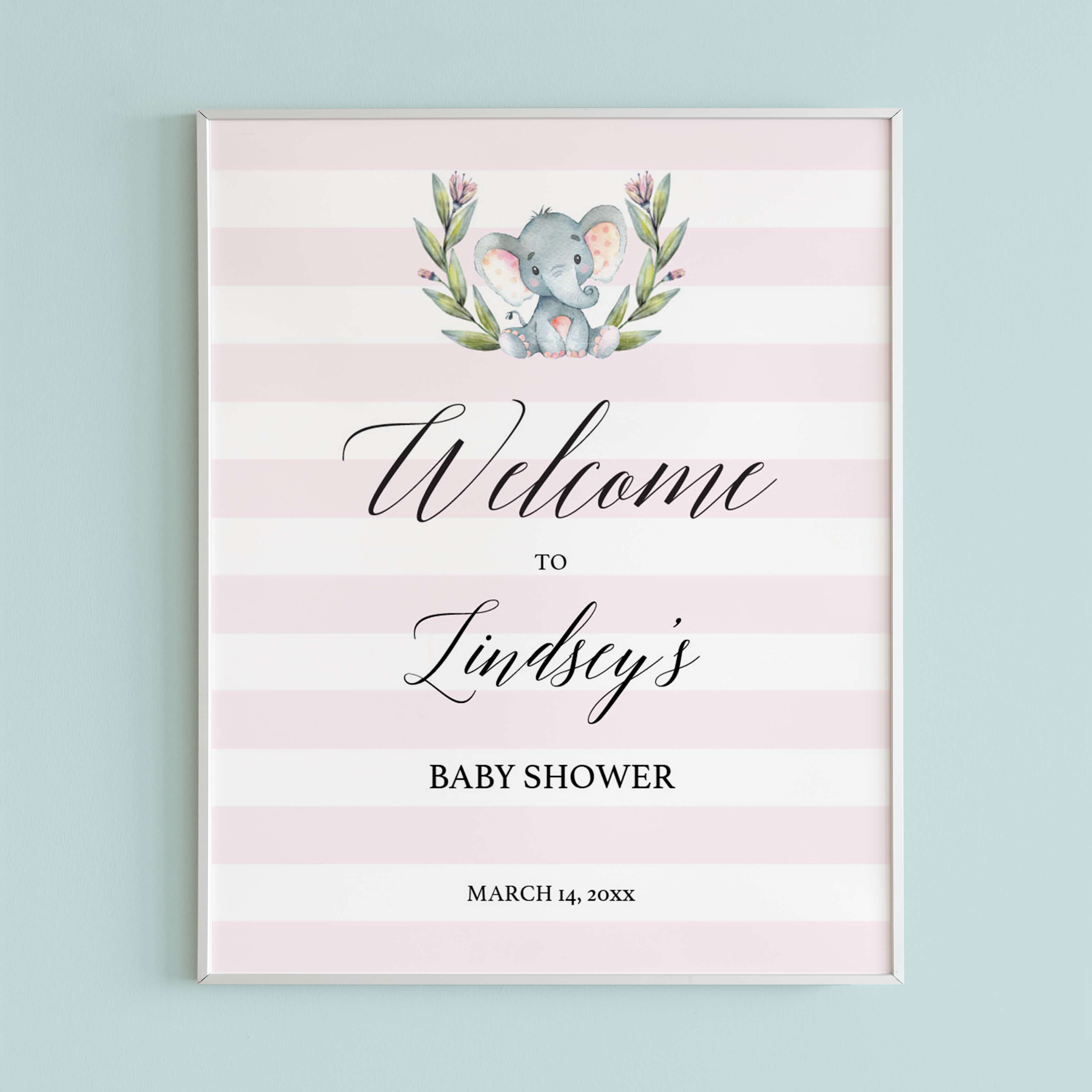 They say that first impressions are important. Set the tone for your baby shower and decorate your party with this adorable pink elephant party welcome sign.