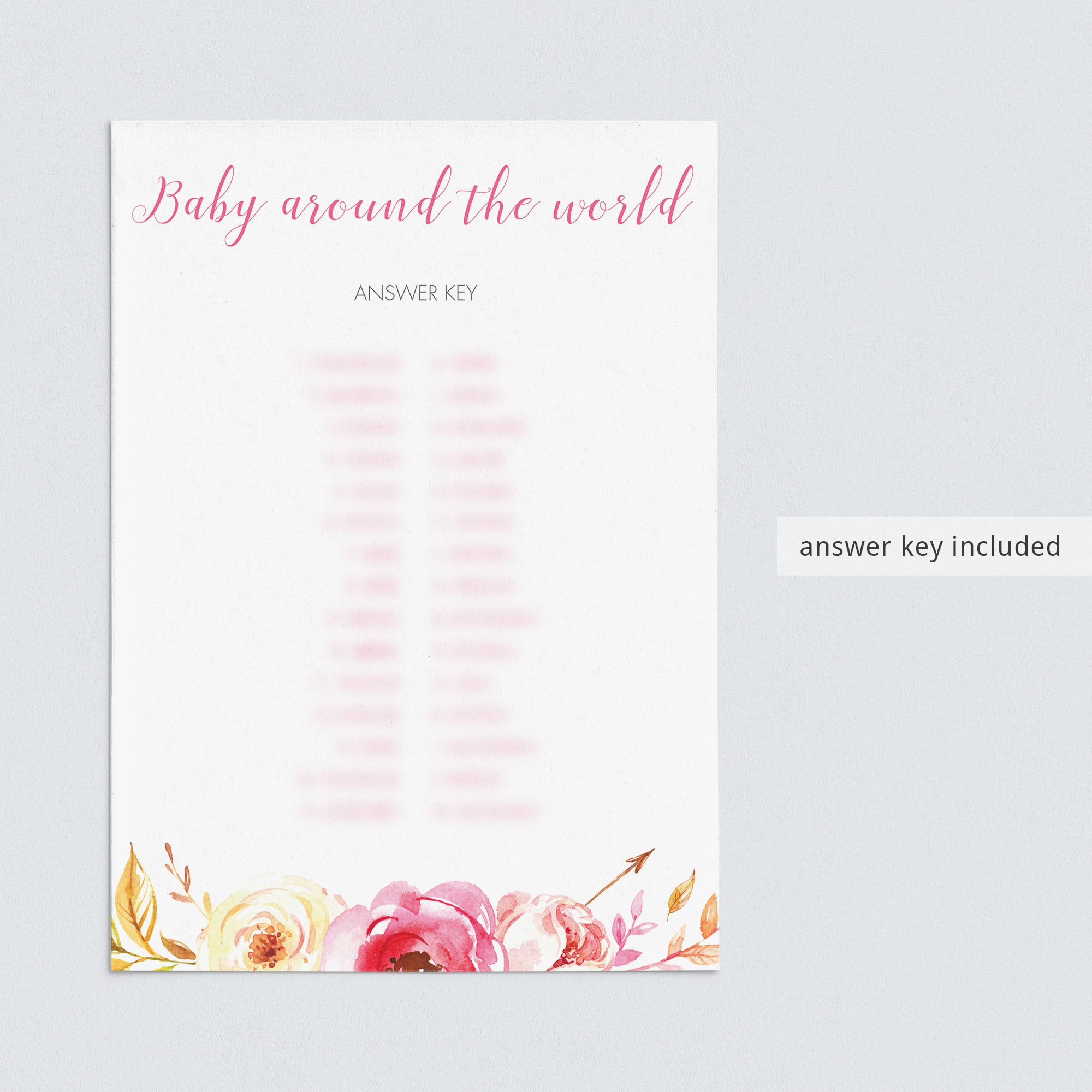 This pink floral baby shower game will sure be a hit at your next baby party!