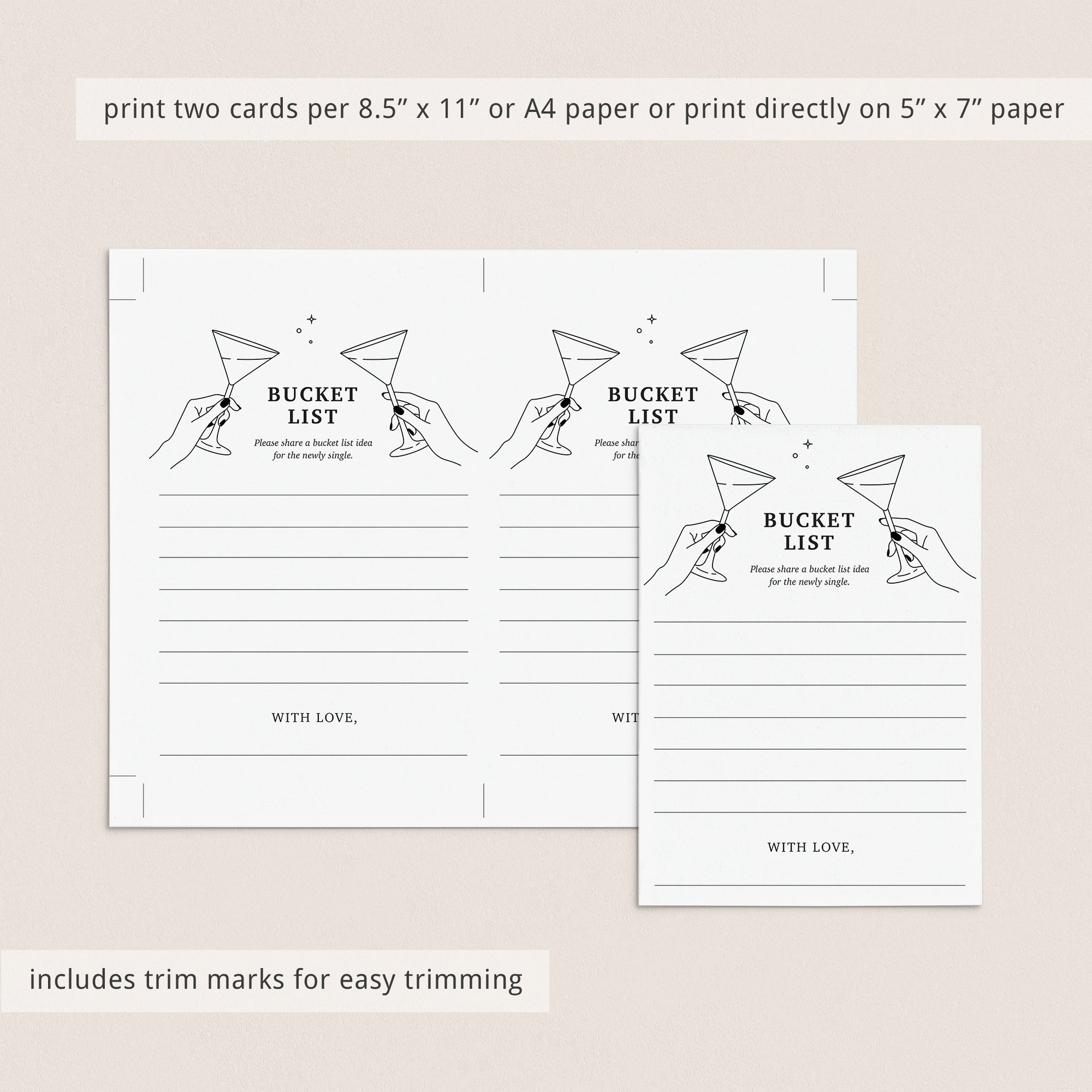 • 1 High resolution PDF sized 8.5" x 11" with trim marks for twice the 5" x 7" design