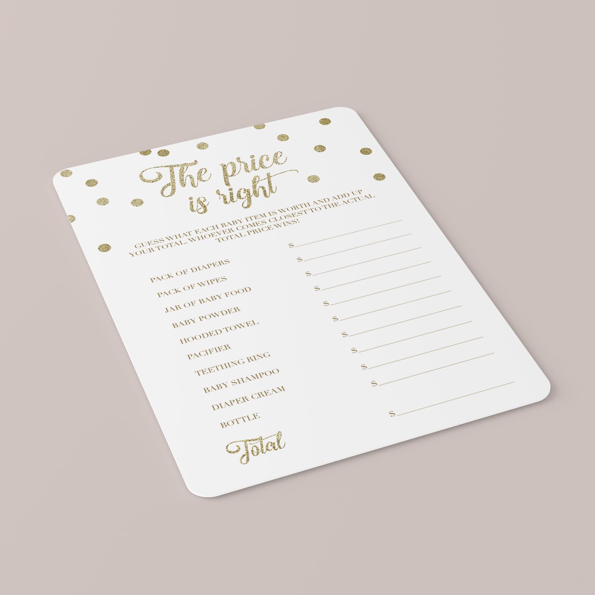 For an in-person baby shower, you can download and print the Price is Right game as many times as you need. We recommend printing on a nice heavy card stock for highest quality feel. Print right from your computer in a matter of minutes or have the cards printed at your favorite print shop.