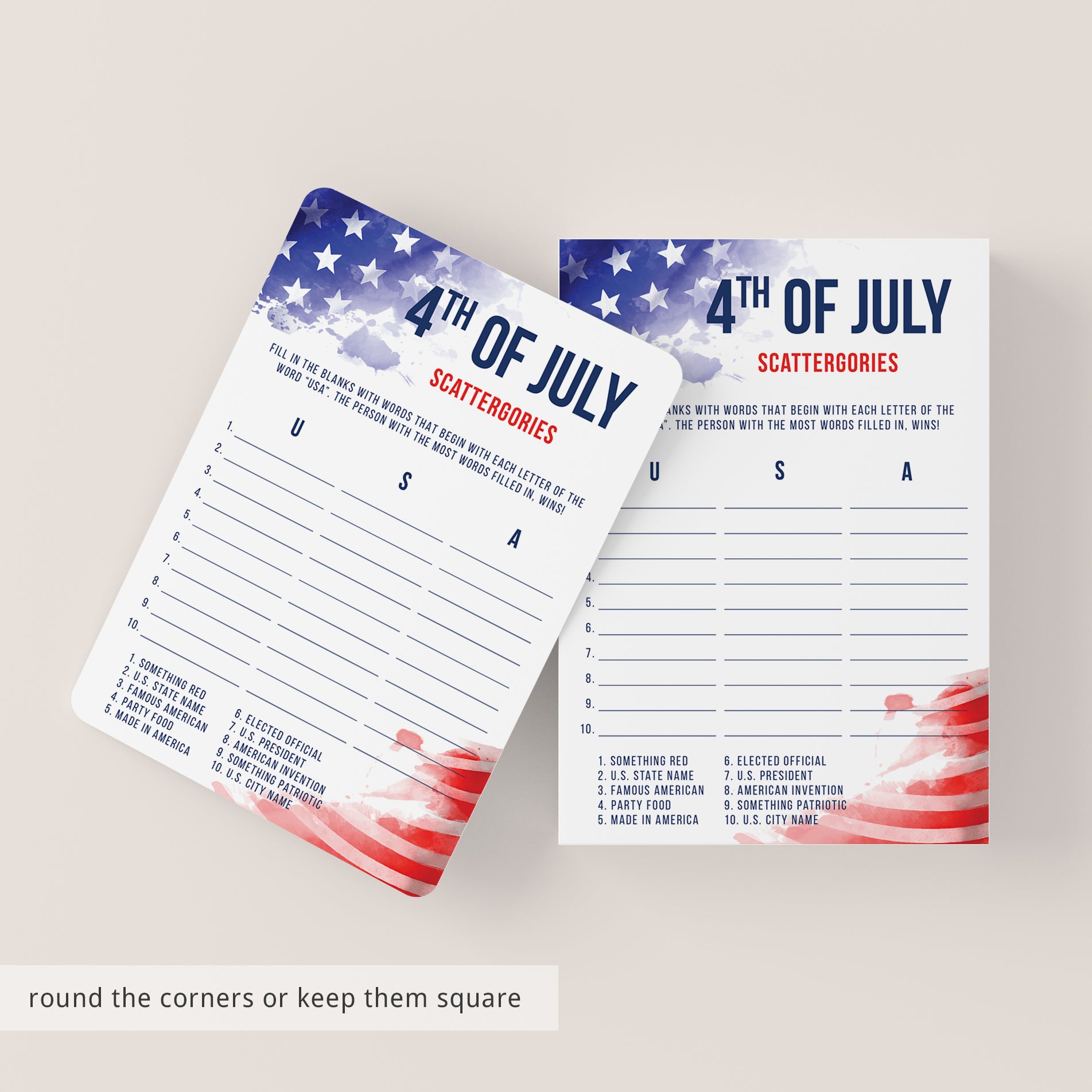• Fourth of July Scattergories