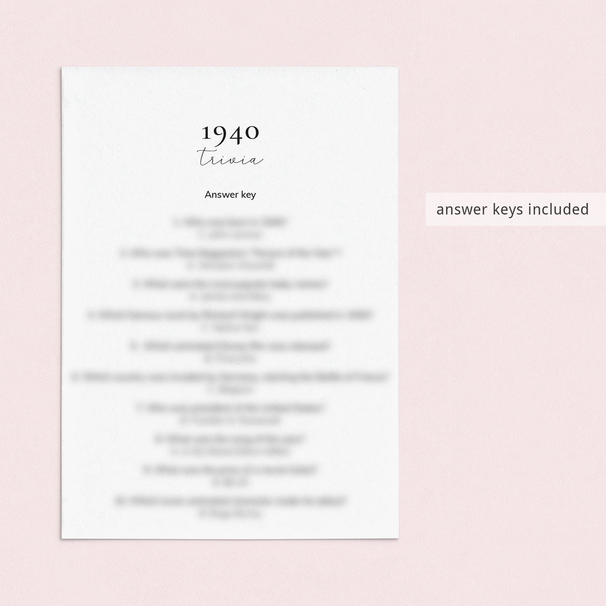 • 1940 Trivia (answer key included)