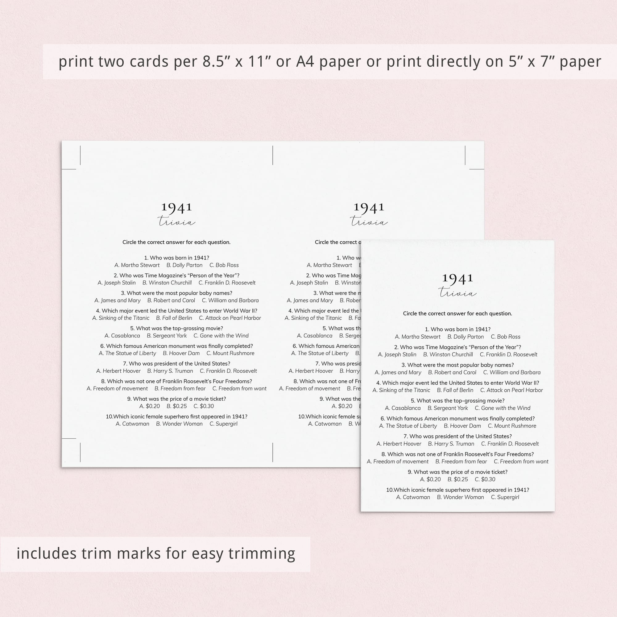 • 1941 Trivia (answer key included)