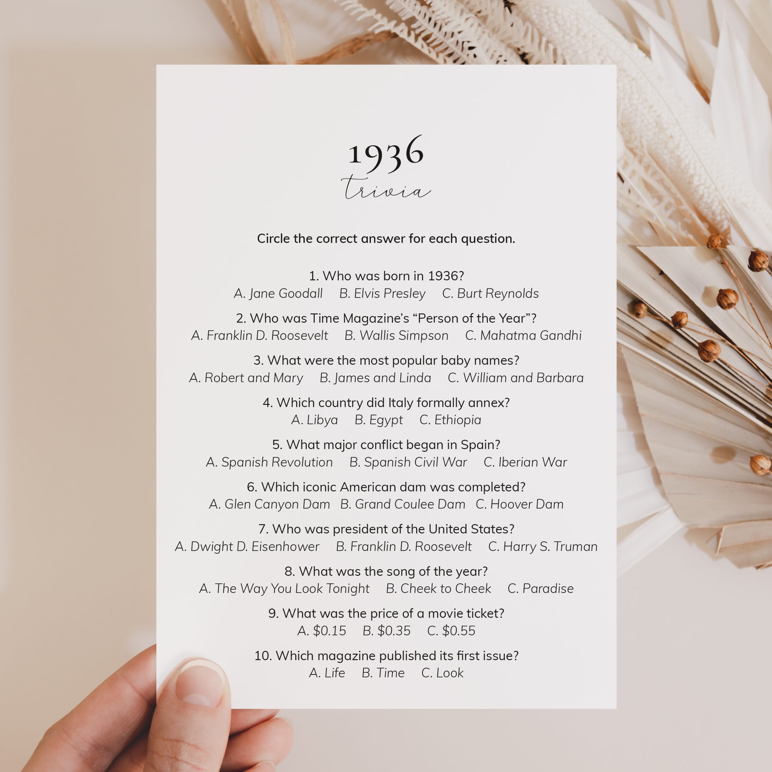 Printable 90th Birthday Games for Her Born in 1936 by Littlesizzle