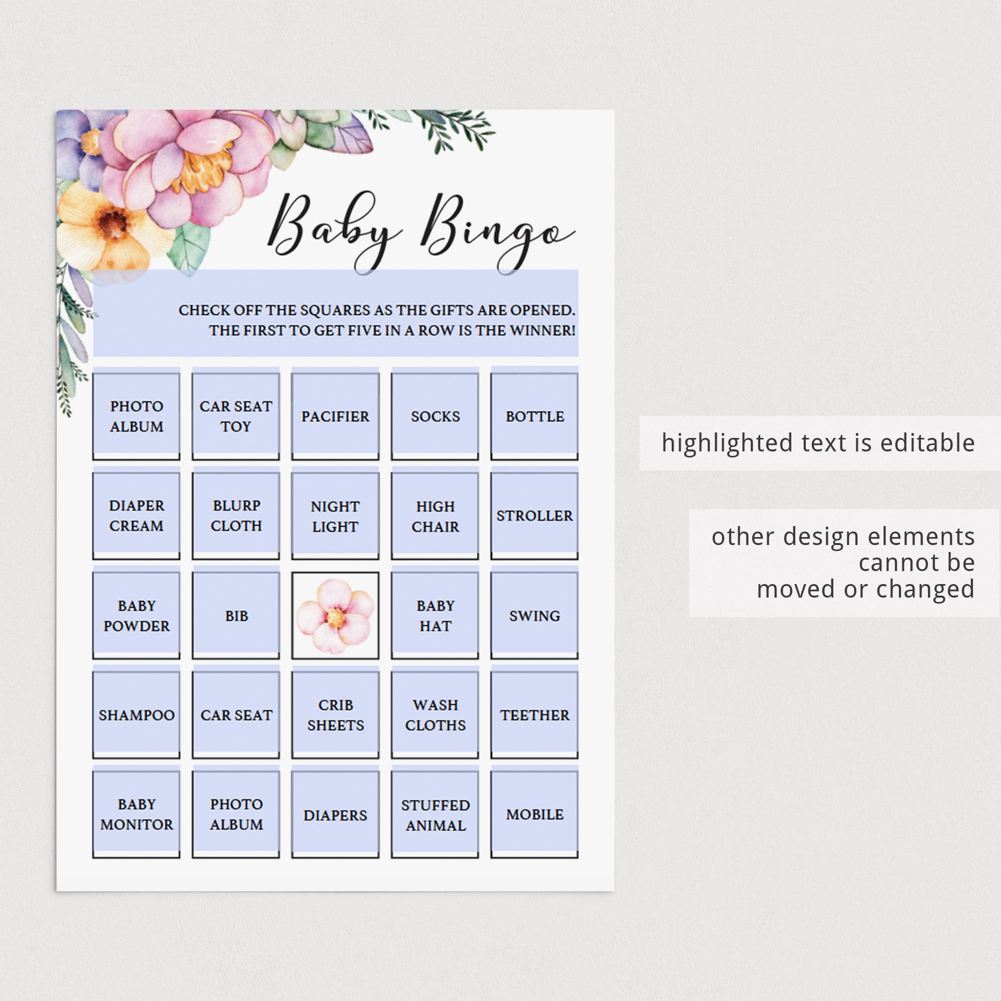 The baby shower bingo cards are instant downloadable files that can be printed right from your computer in a matter of minutes. Or you can have them printed by your favorite print shop. We recommend printing on a nice heavy card stock for the highest quality feel. A detailed instruction guide, with tips & tricks on editing, printing, trimming and more is included.