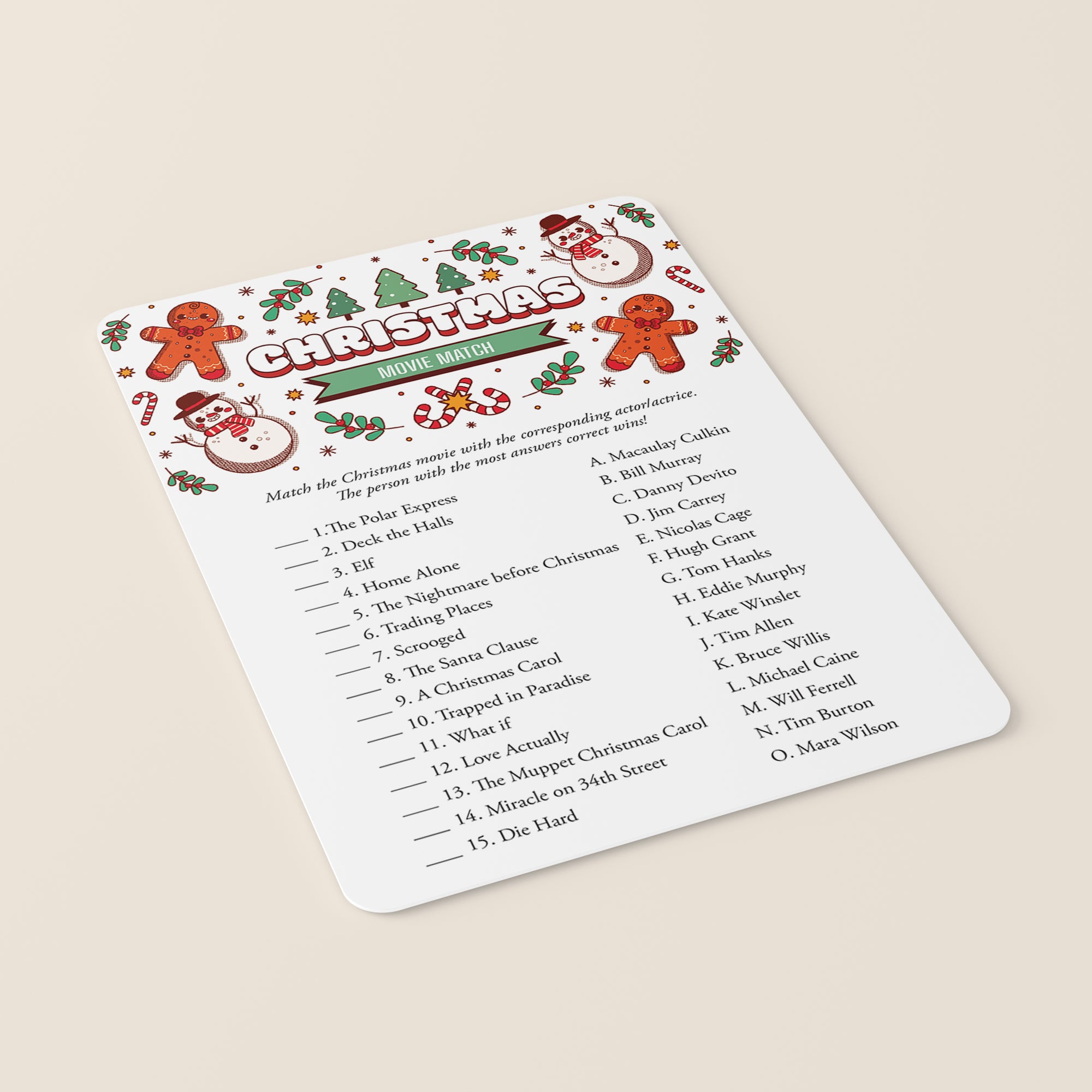 Are you looking for a fun game for your Christmas party? Play Christmas Movie Match. This Christmas game will have everyone racing to be first to match up the lead actor to the Christmas movie. If any of your friends or family members are movie buffs, then they might have a leg up when playing this funny game.
