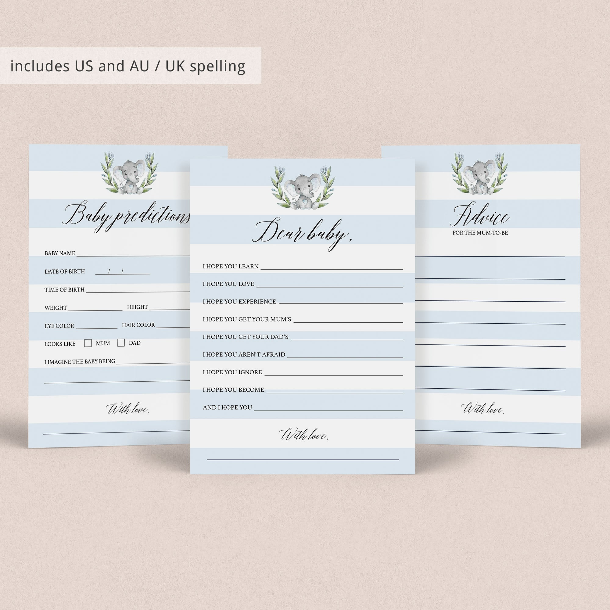 Elephant baby prediction card for boy baby shower by LittleSizzle