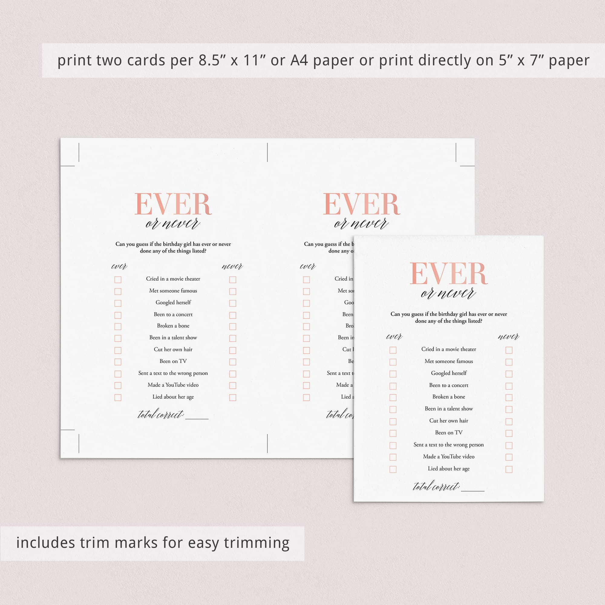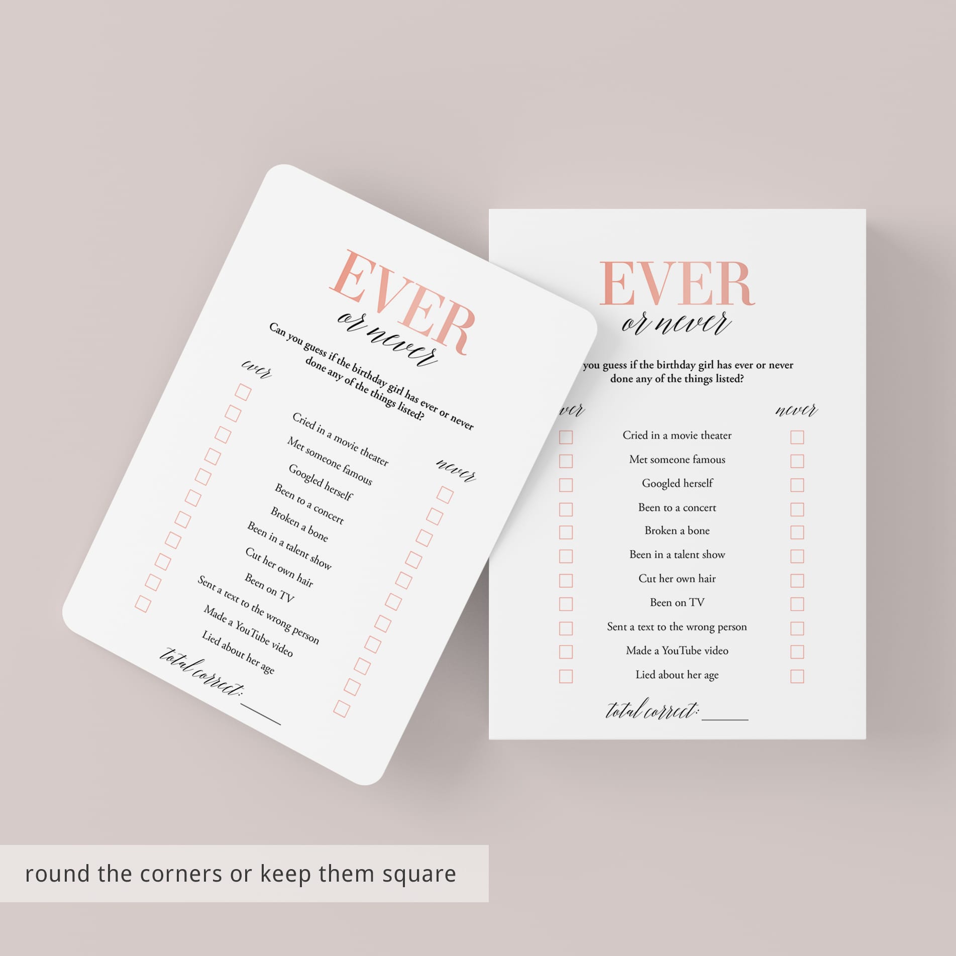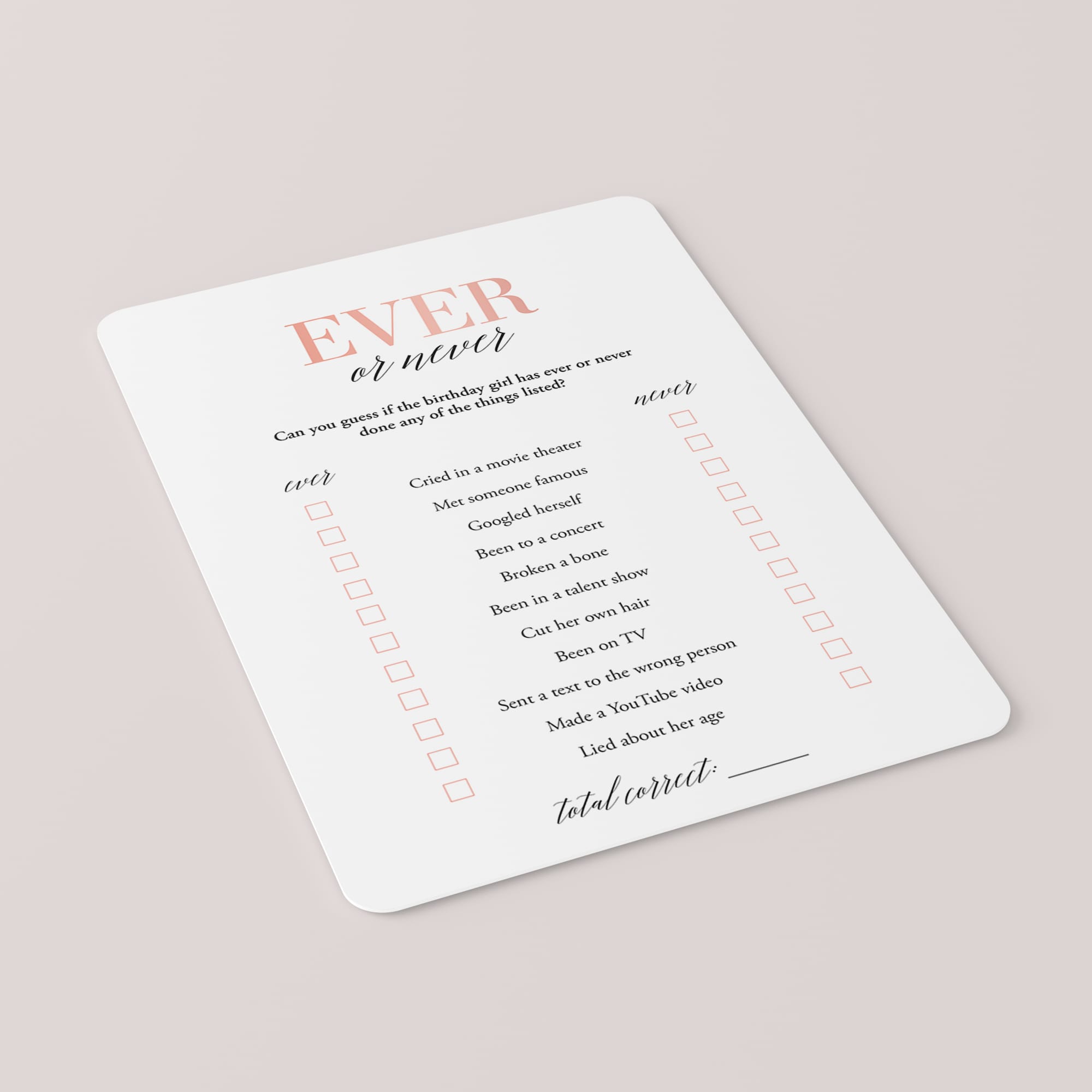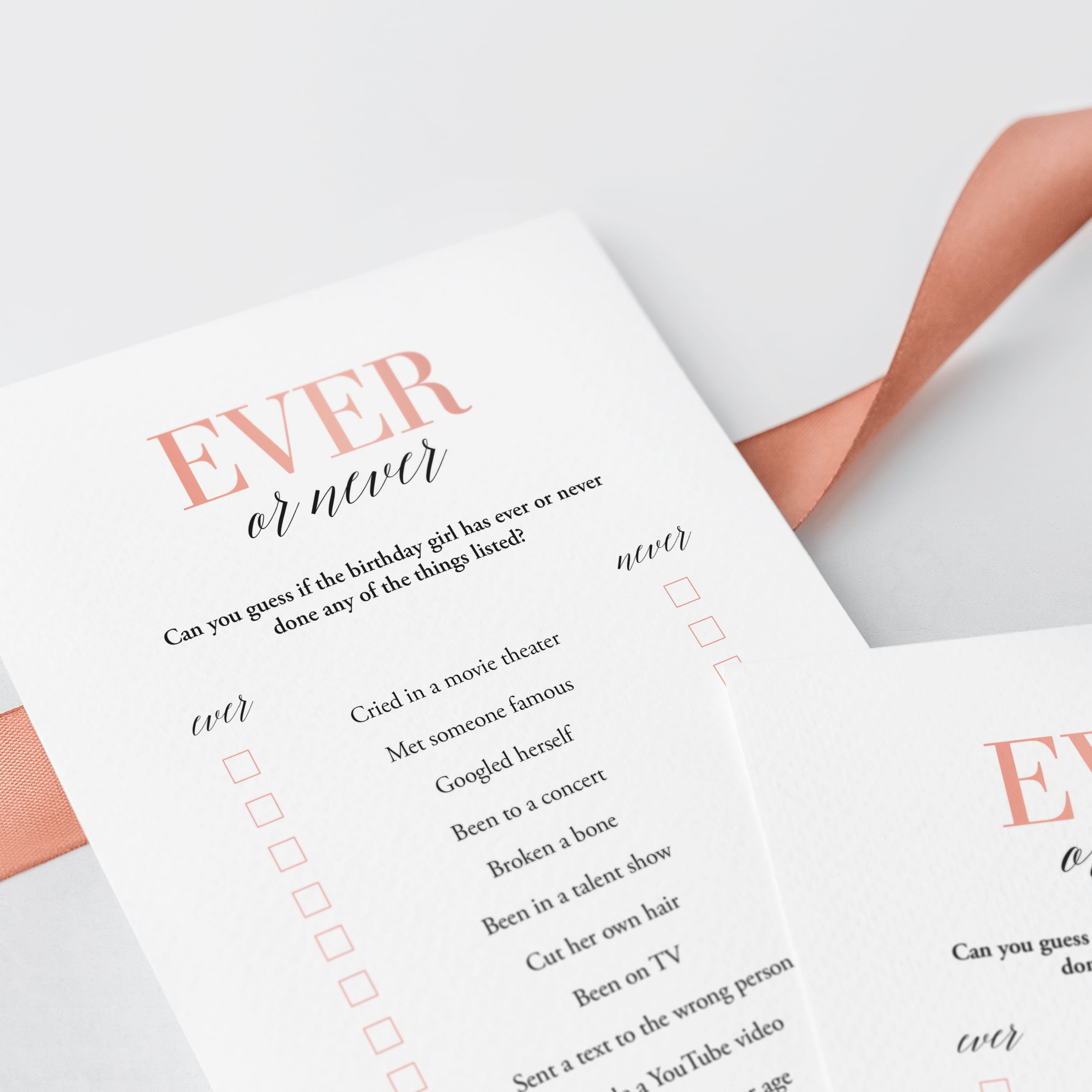 Looking for a funny birthday game for a teen girl? Play Ever or Never! This fun and easy party game, is sure to get everyone laughing and sharing stories.