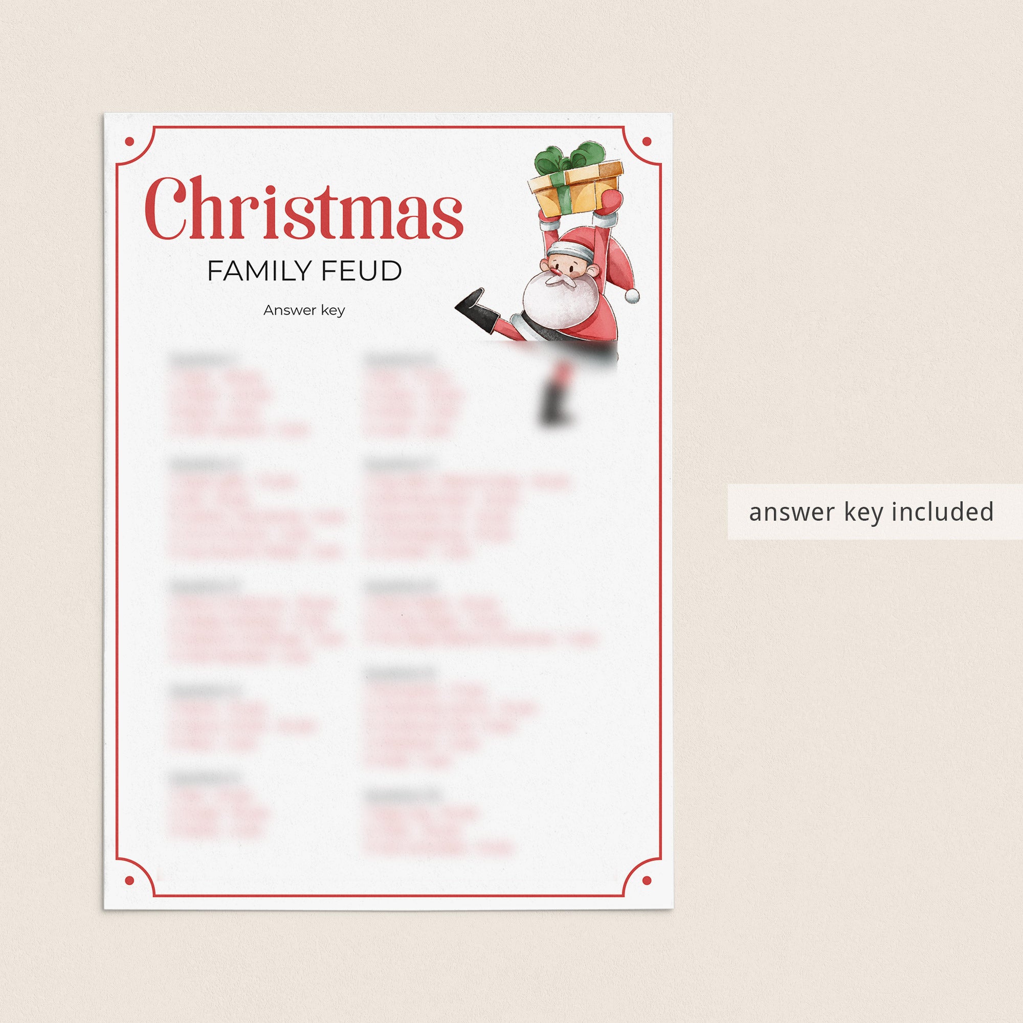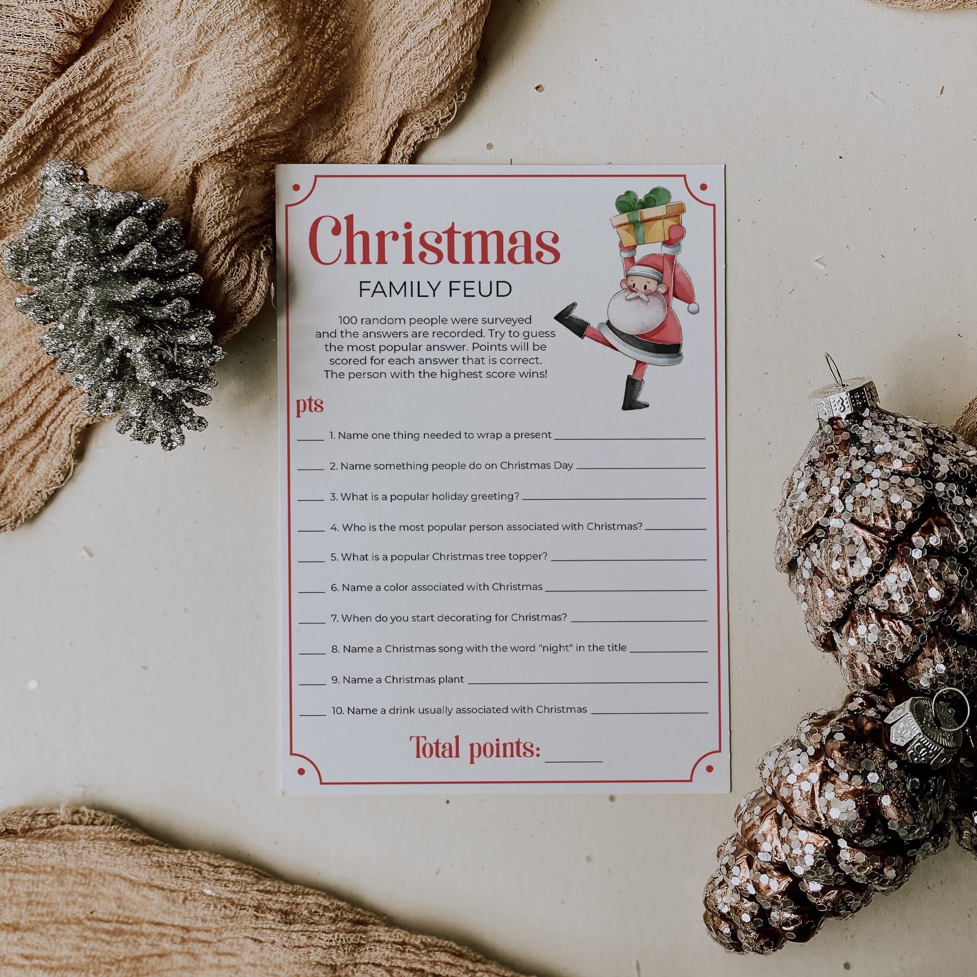 Family Feud is one of the best game shows ever. Have your friends and family compete to guess the most popular answer to random holiday themed family feud questions. An answer key with the Christmas family feud answers and points is included. The person or team with the highest score wins!