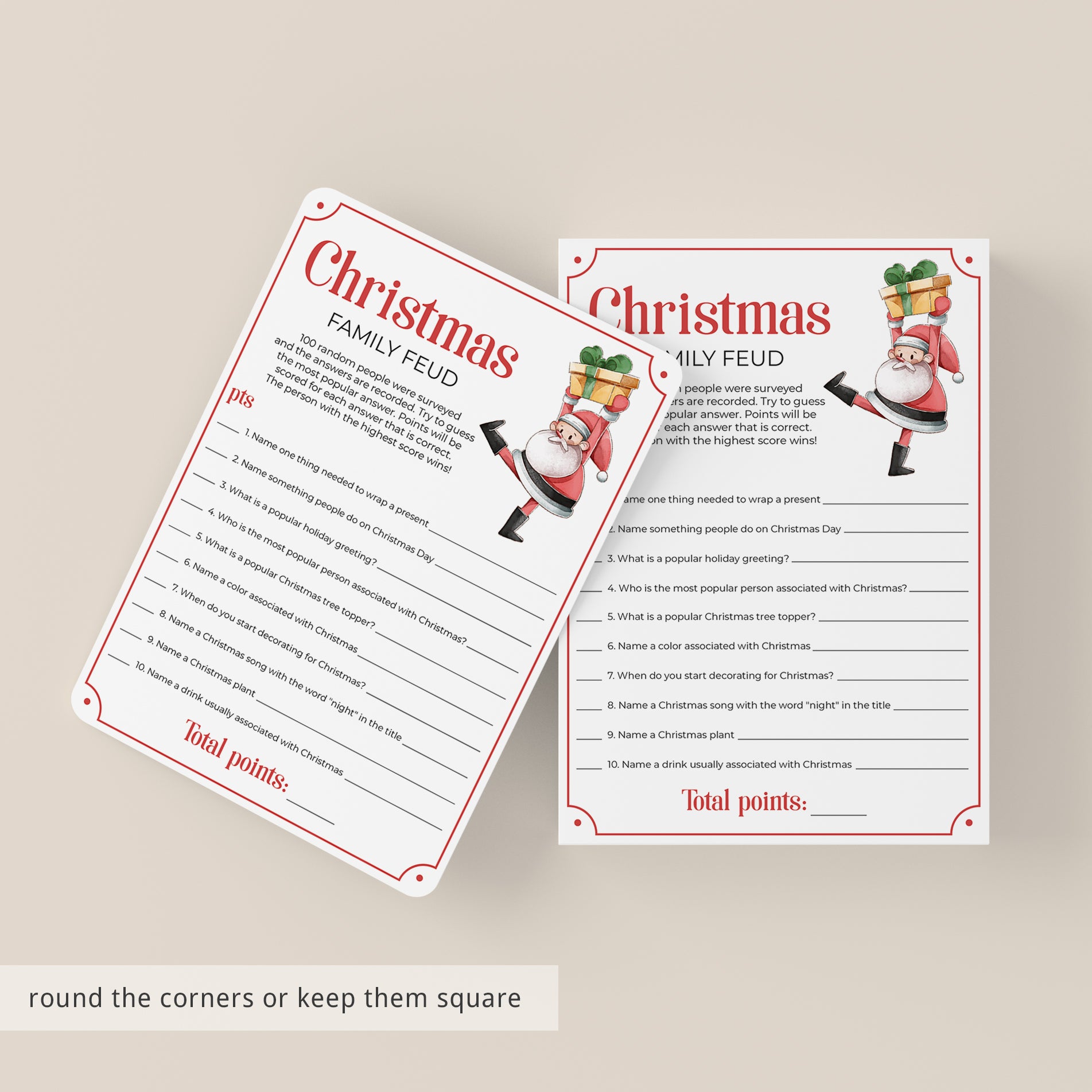 Are you looking for a fun game to play at your family Christmas party? Play Family Feud with this fun game card with watercolor Santa Claus.