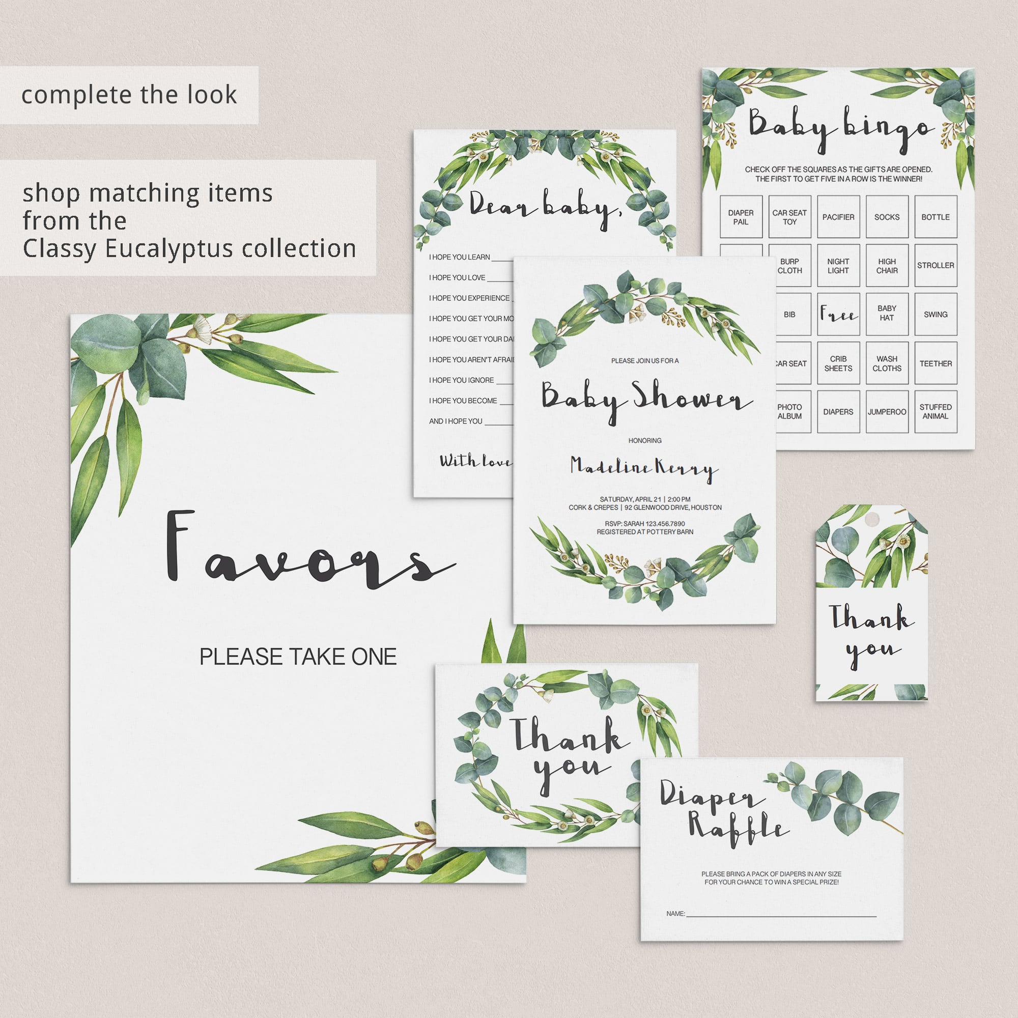 Printable Guest Book Sign with Watercolor Eucalyptus Leaves