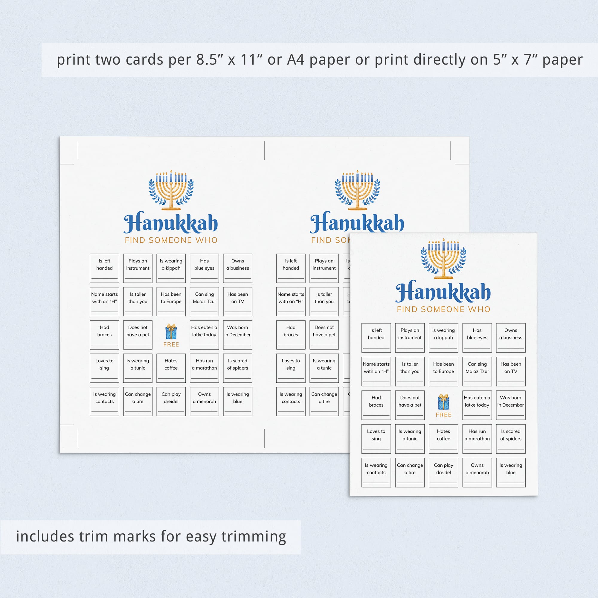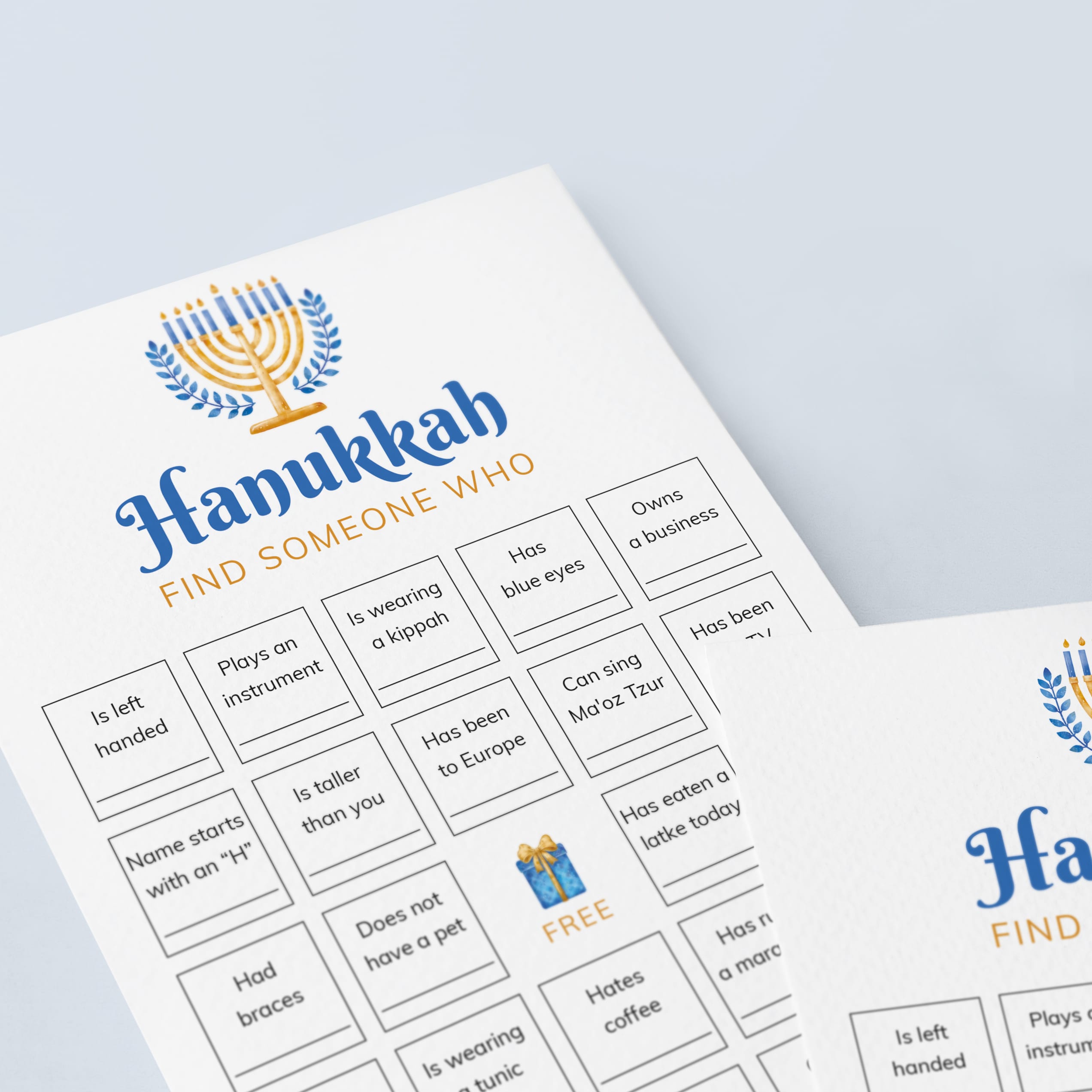 The Hanukkah Find Someone Who Bingo cards are the perfect addition to any Hanukkah celebration.