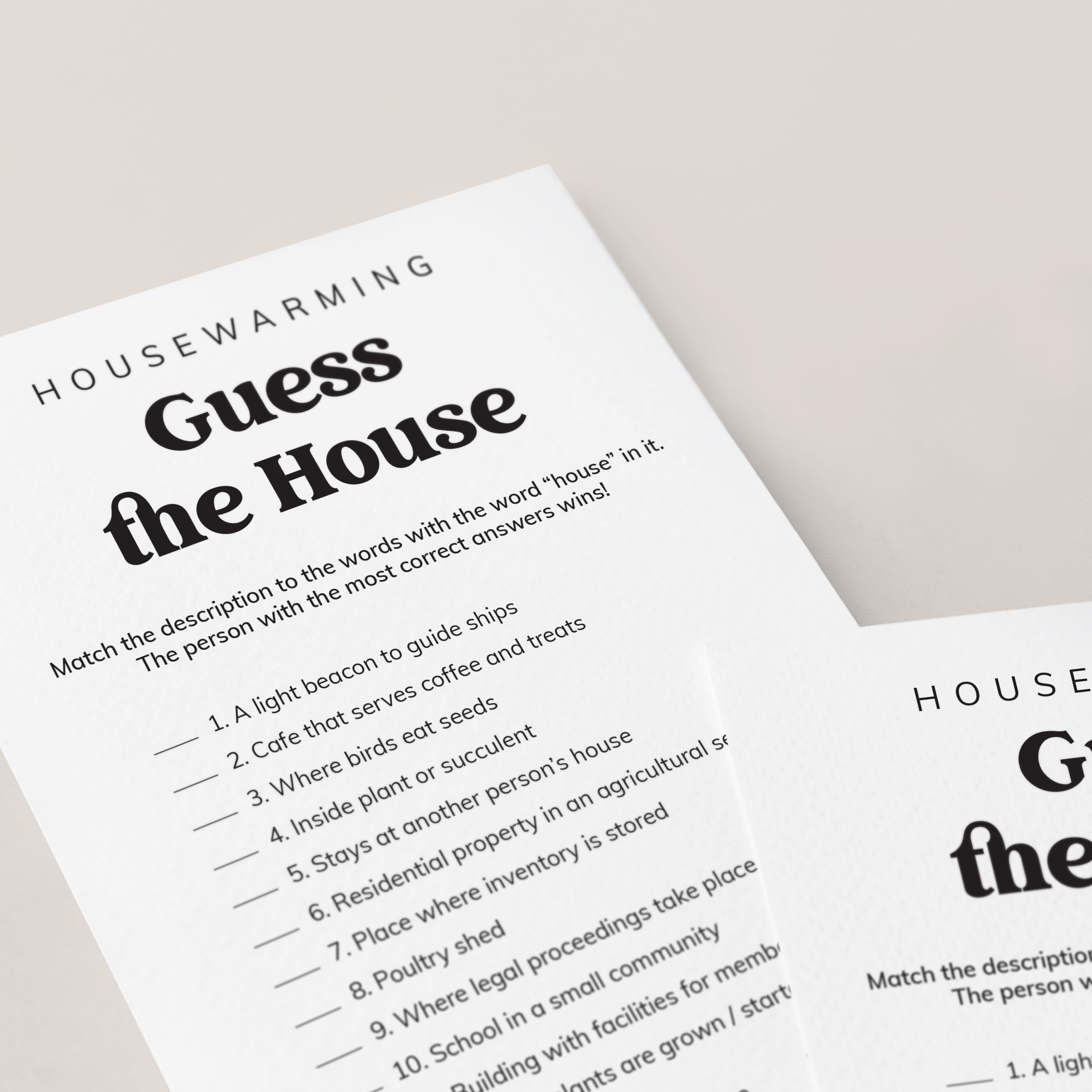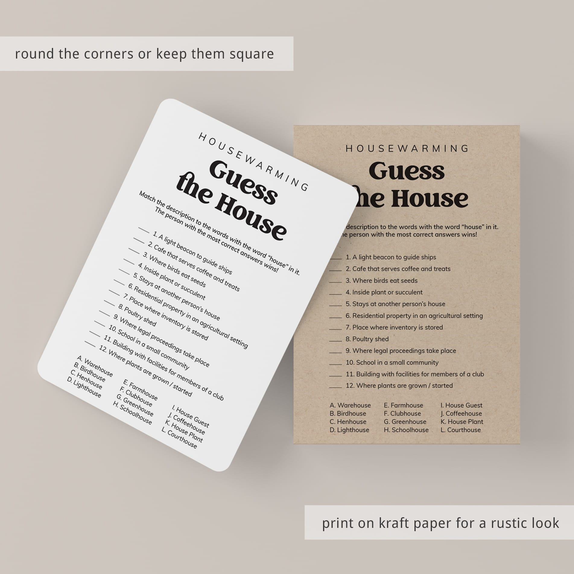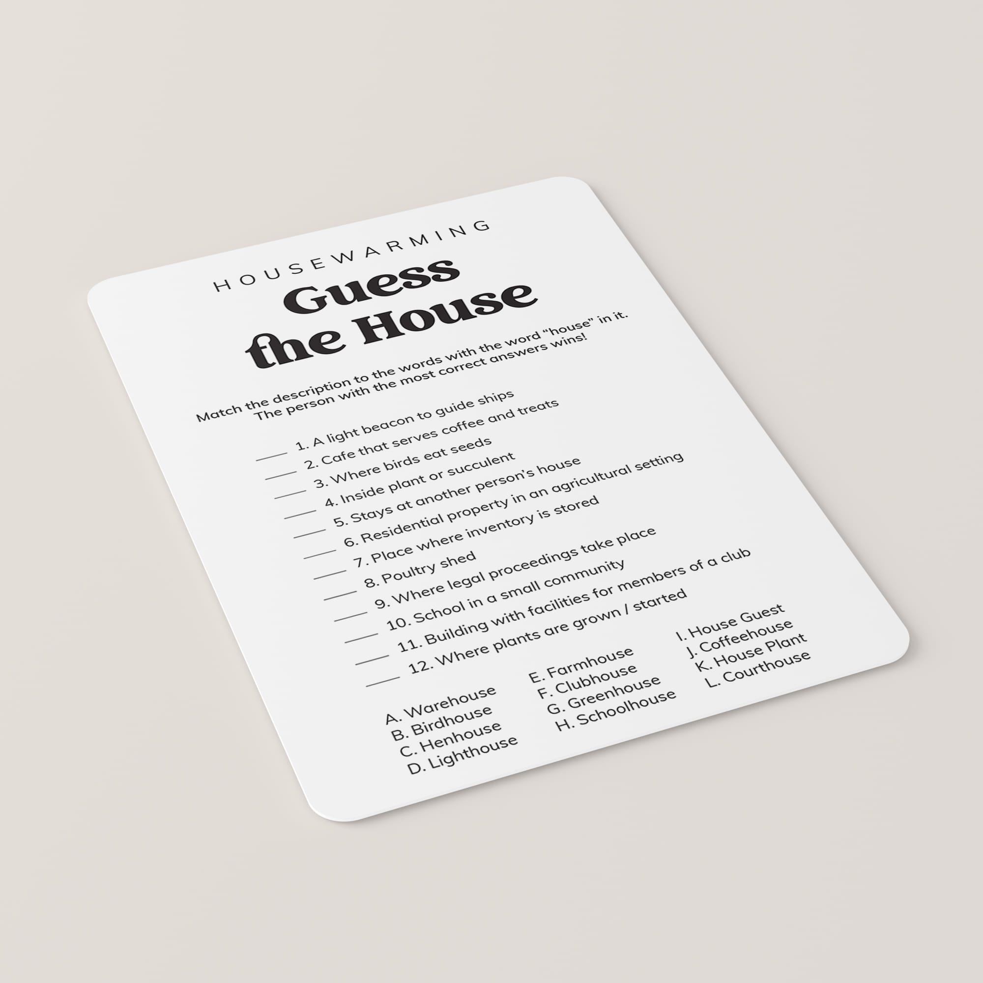 Add some fun to your housewarming party with this Guess The House gameThe black and white game will fit any housewarming party theme. It will create a fun and enjoyable moment for all of your guests.