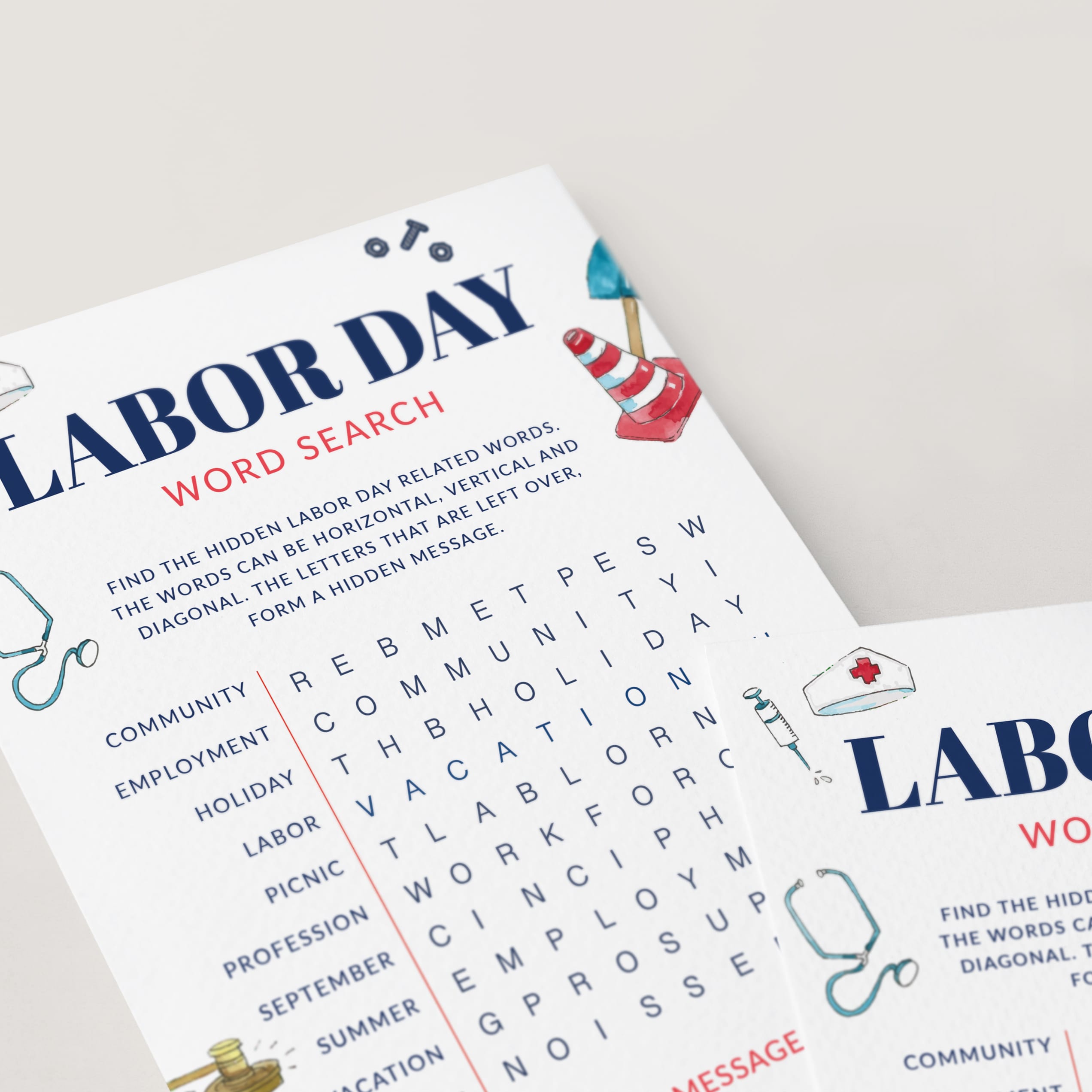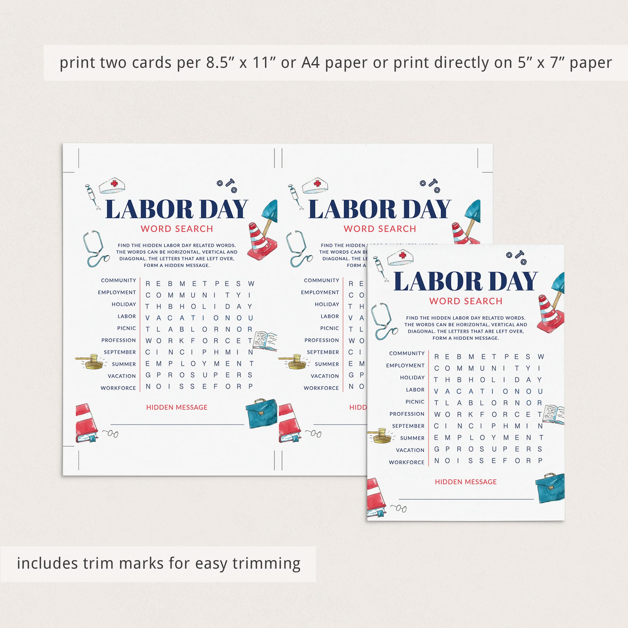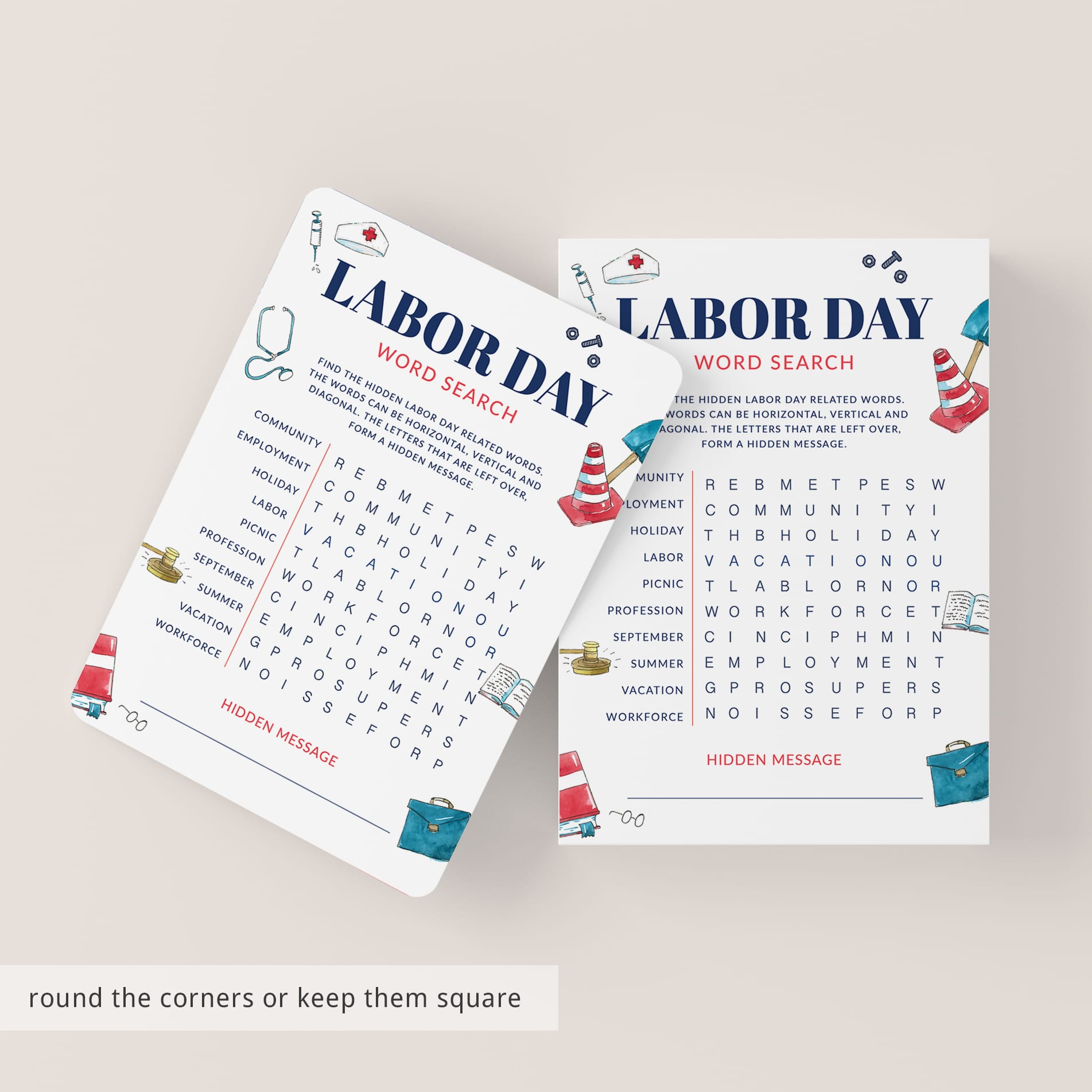Let everyone search for all Labor Day related words that are listed on fun game cards. The words can be found horizontally, vertically and diagonally.
