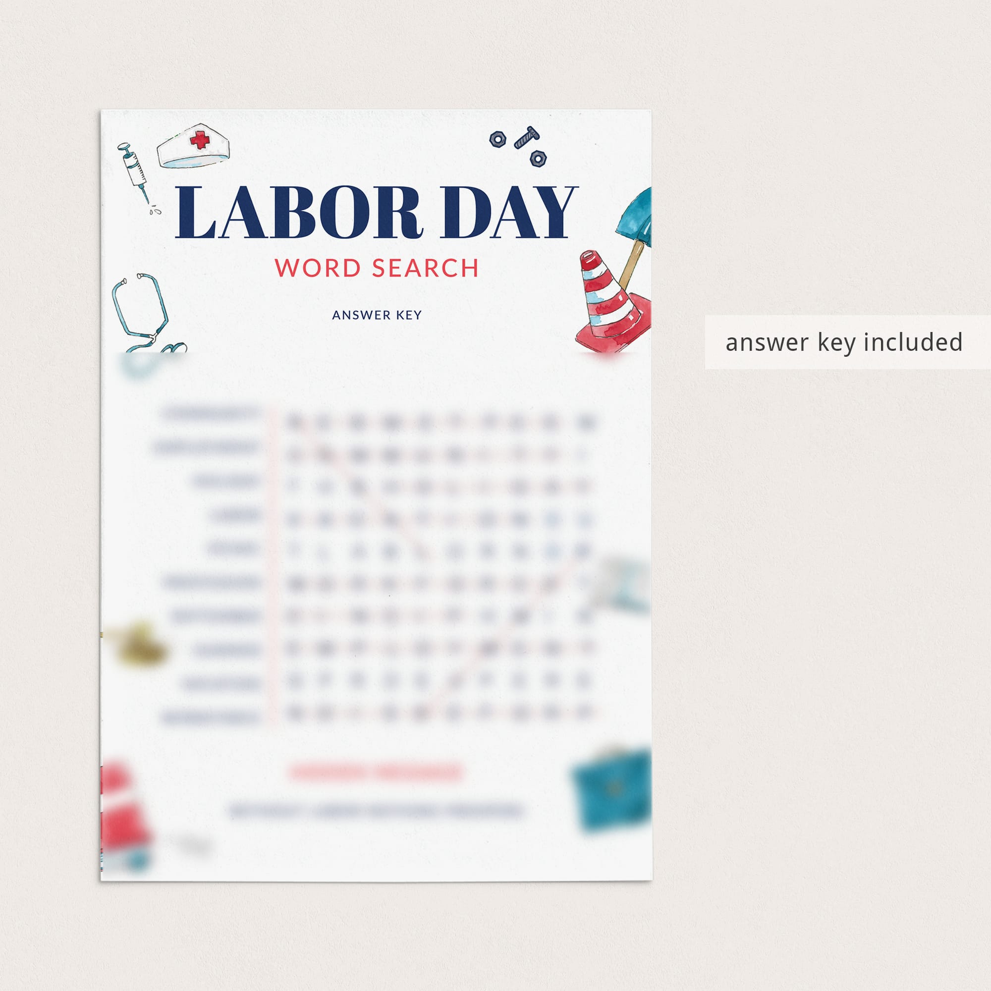 Labor Day Word Search Answer Key: