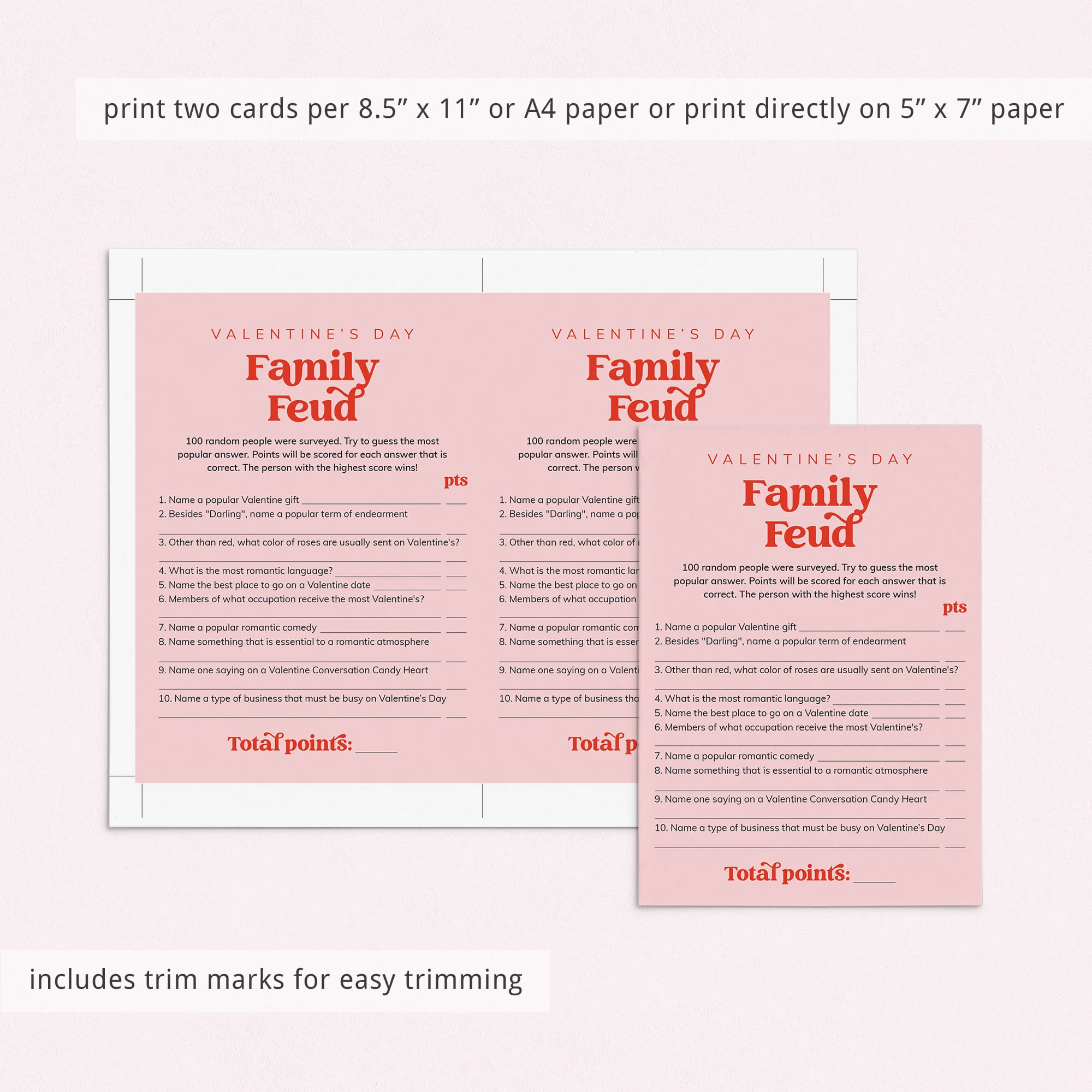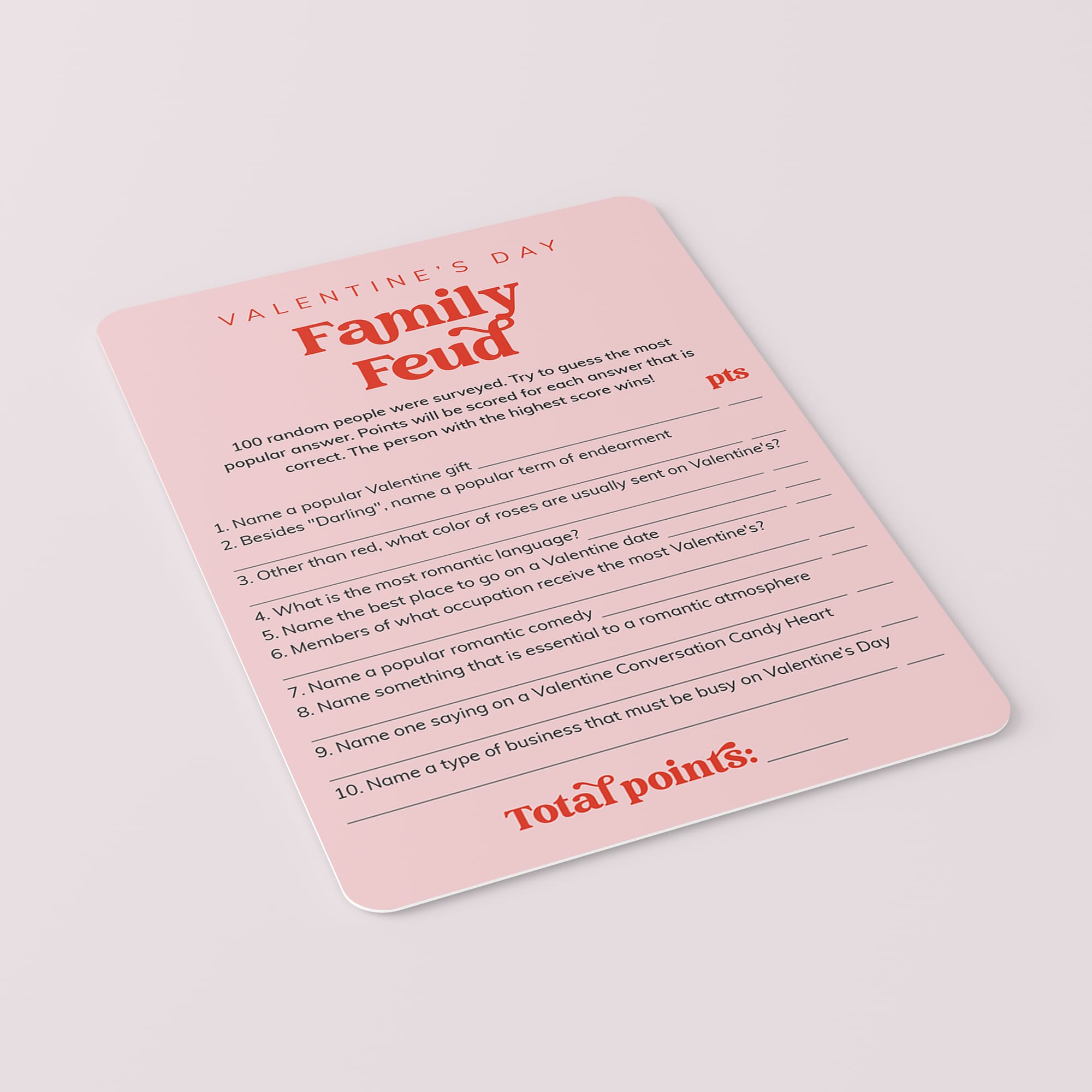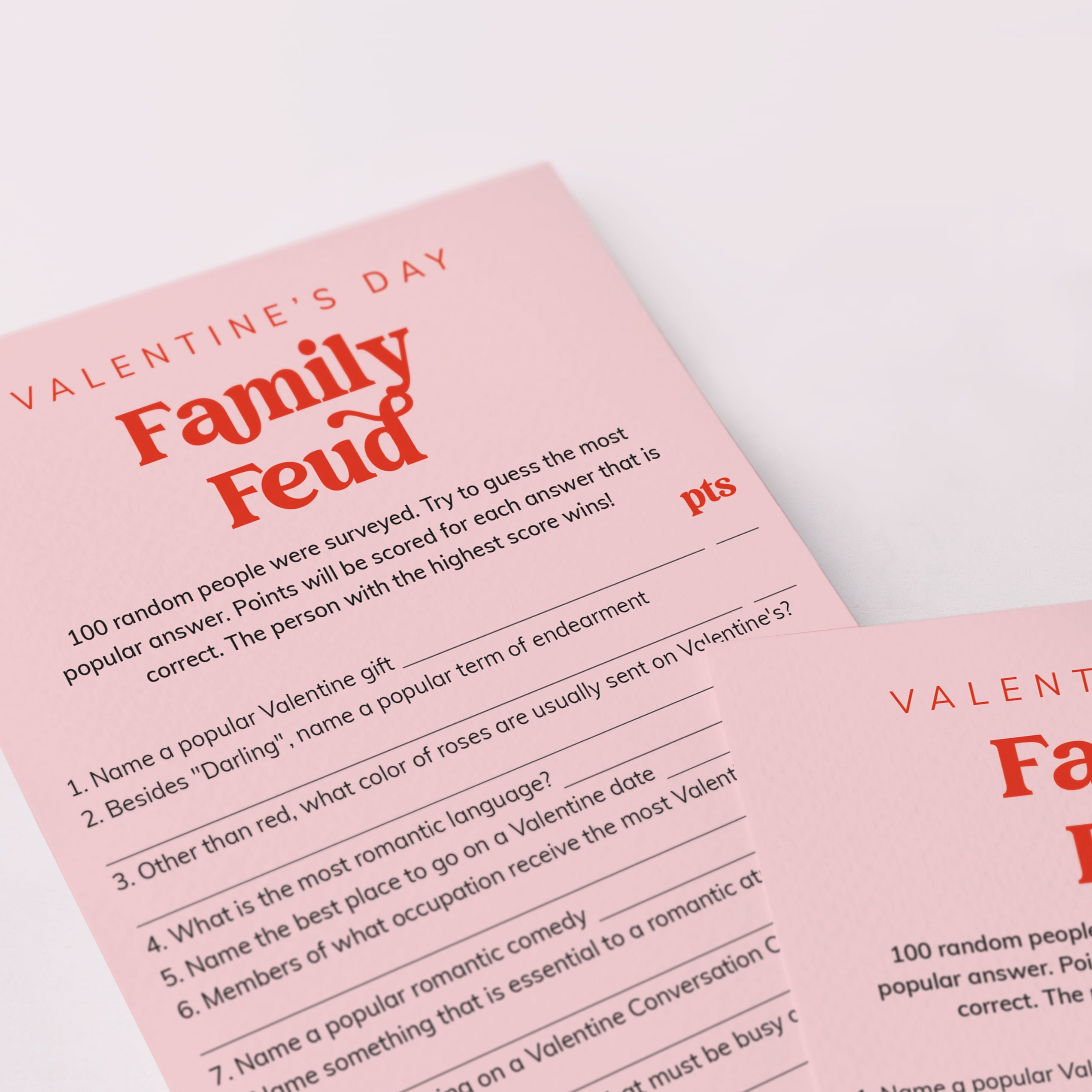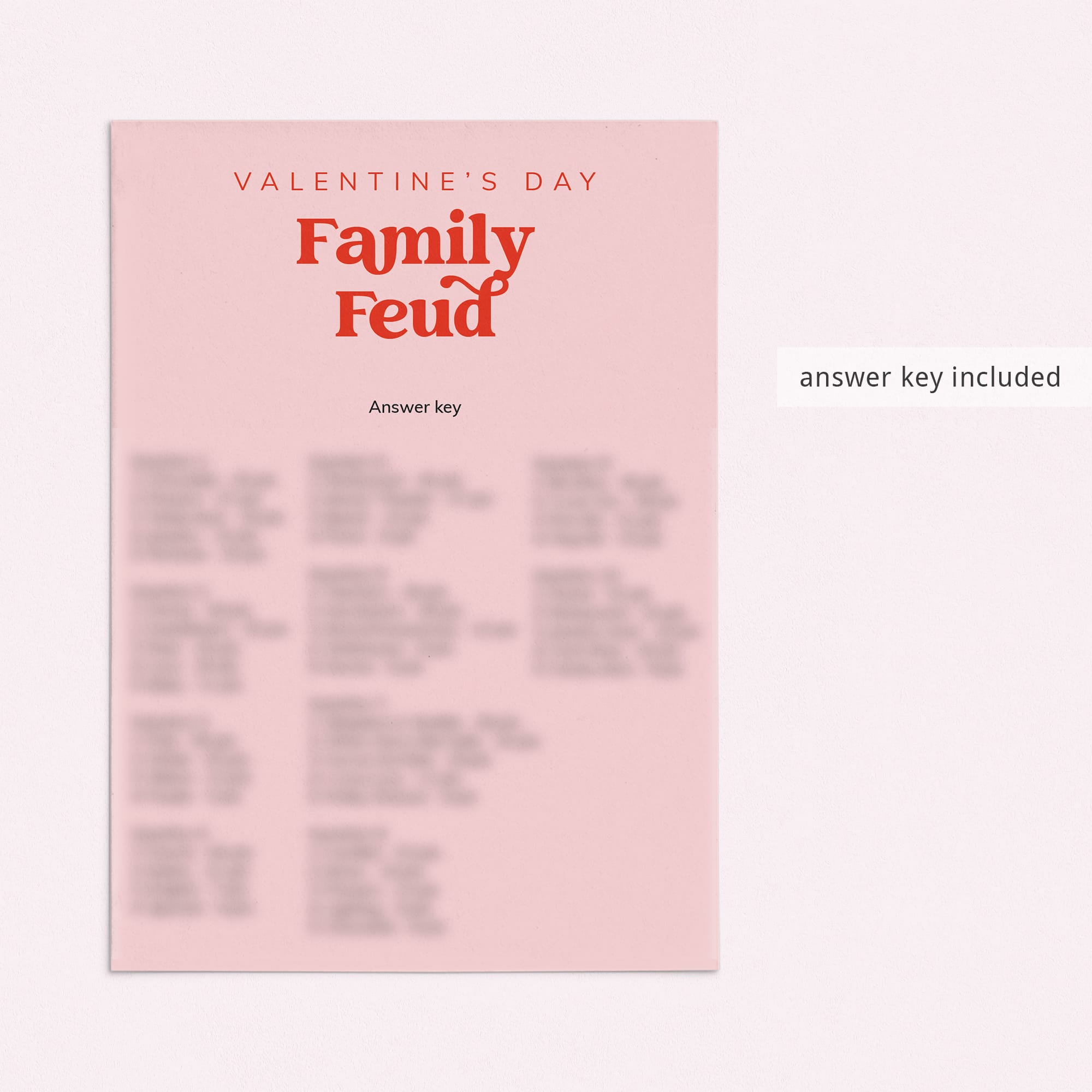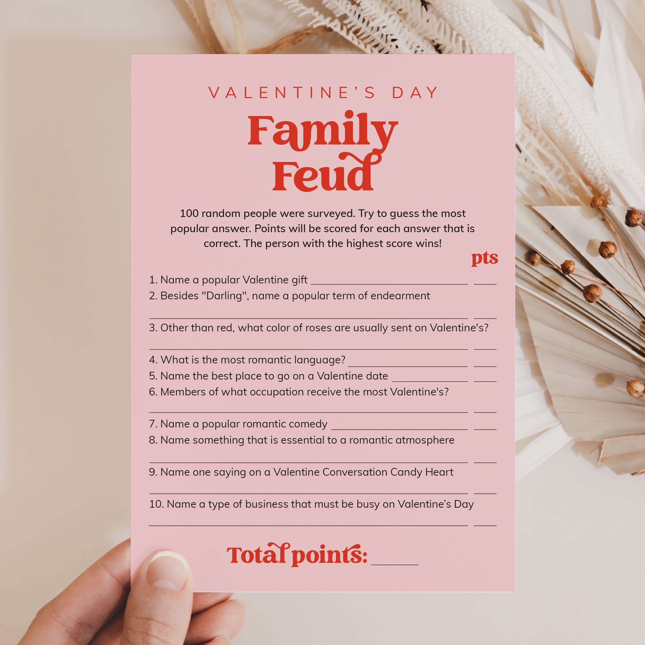 Family Feud is one of the best game shows ever. Have your friends and family compete to guess the most popular answer to random Valentine's Day themed family feud questions. An answer key with the Valentine's Day feud answers and points is included. The person or couple with the highest score wins!
