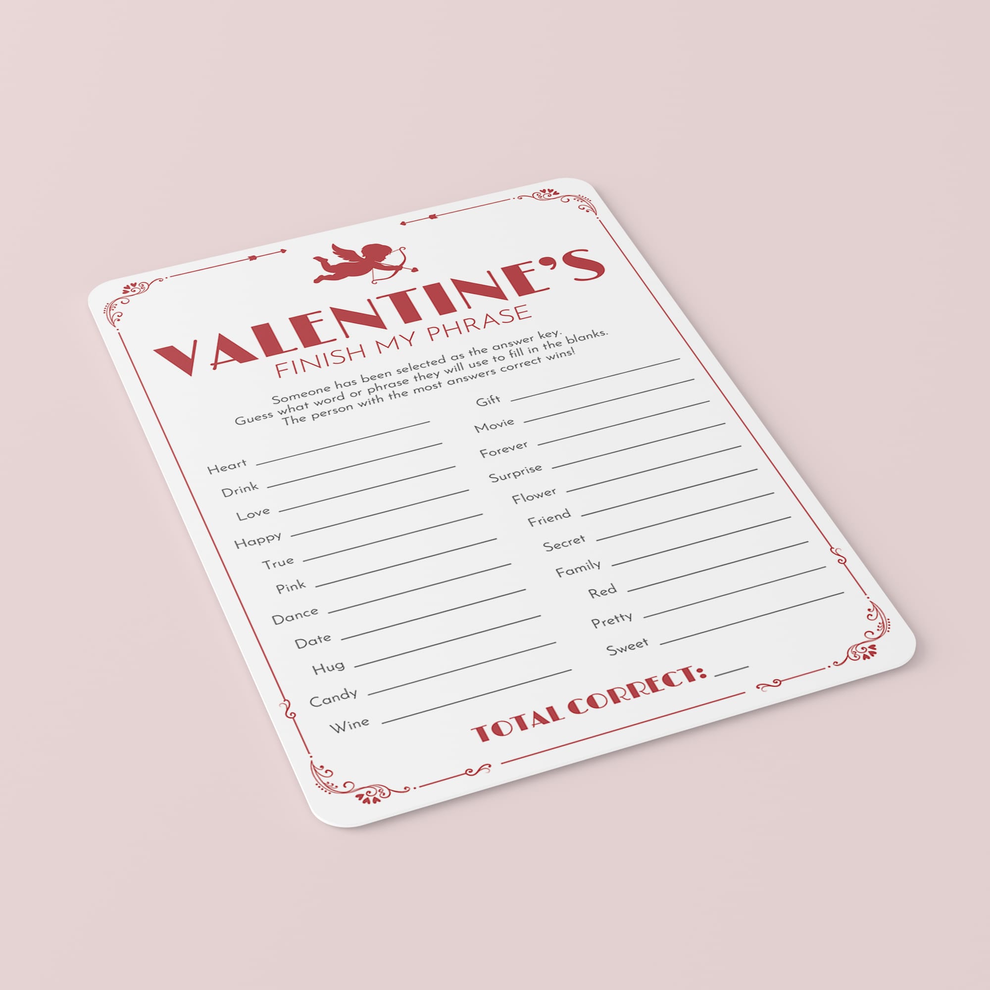 This Valentines game is a digital download. After purchase you will receive a download link immediately on screen. Also within minutes of your order and payment, an e-mail will be sent to you with a link for your download.
