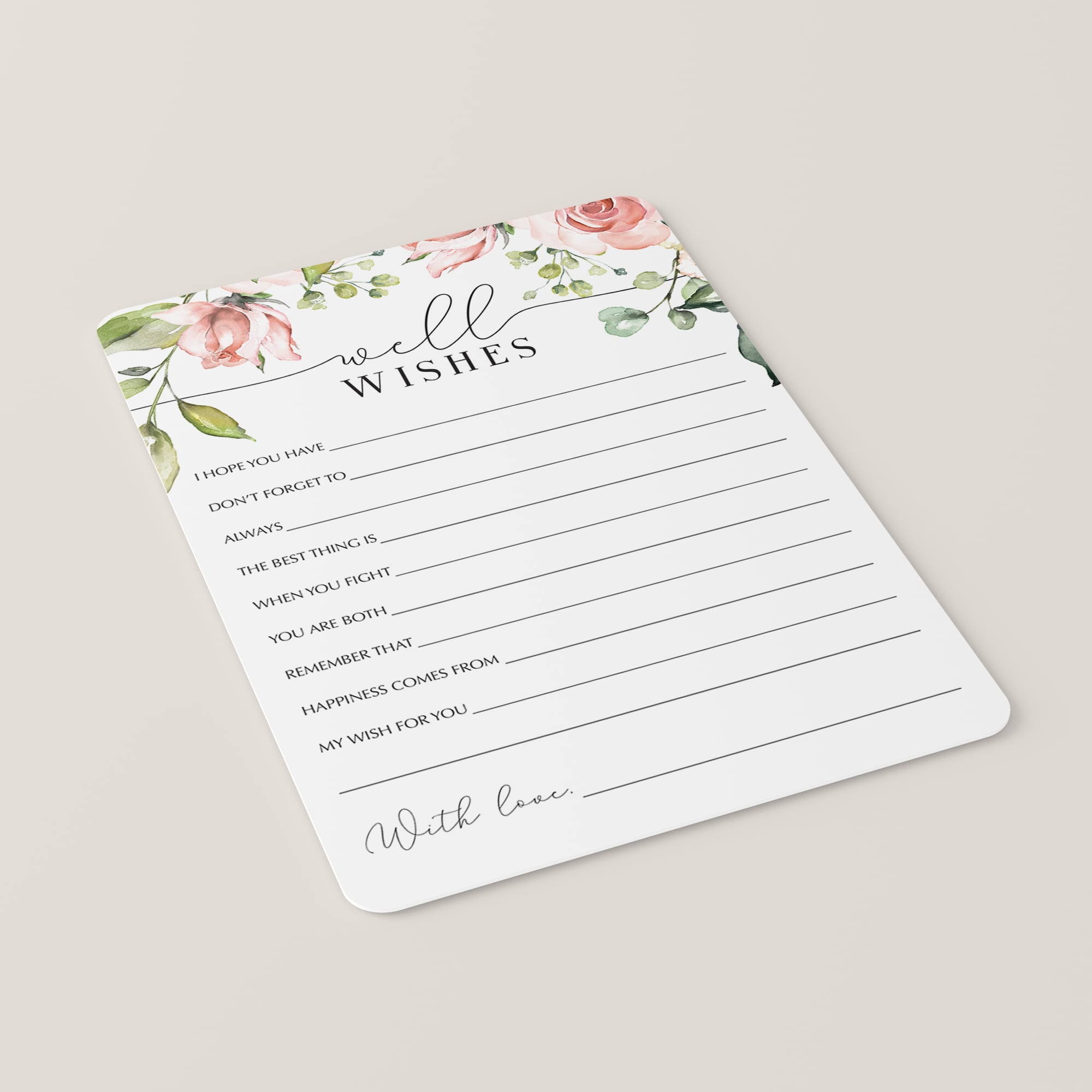Printable Well Wishes Cards with Blush Roses