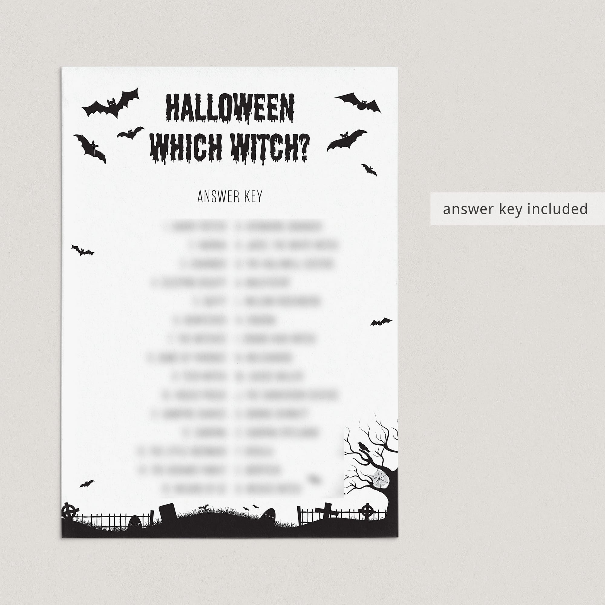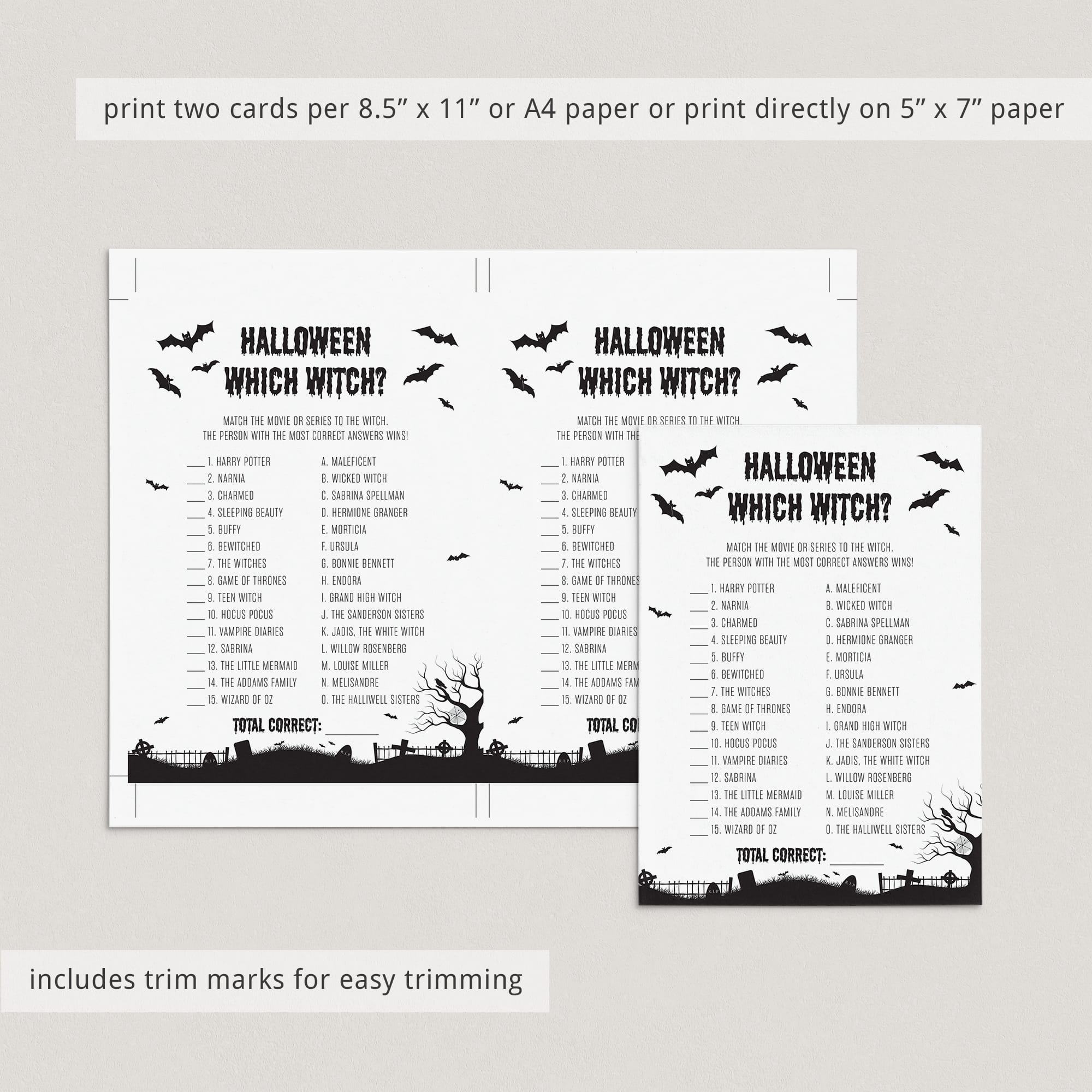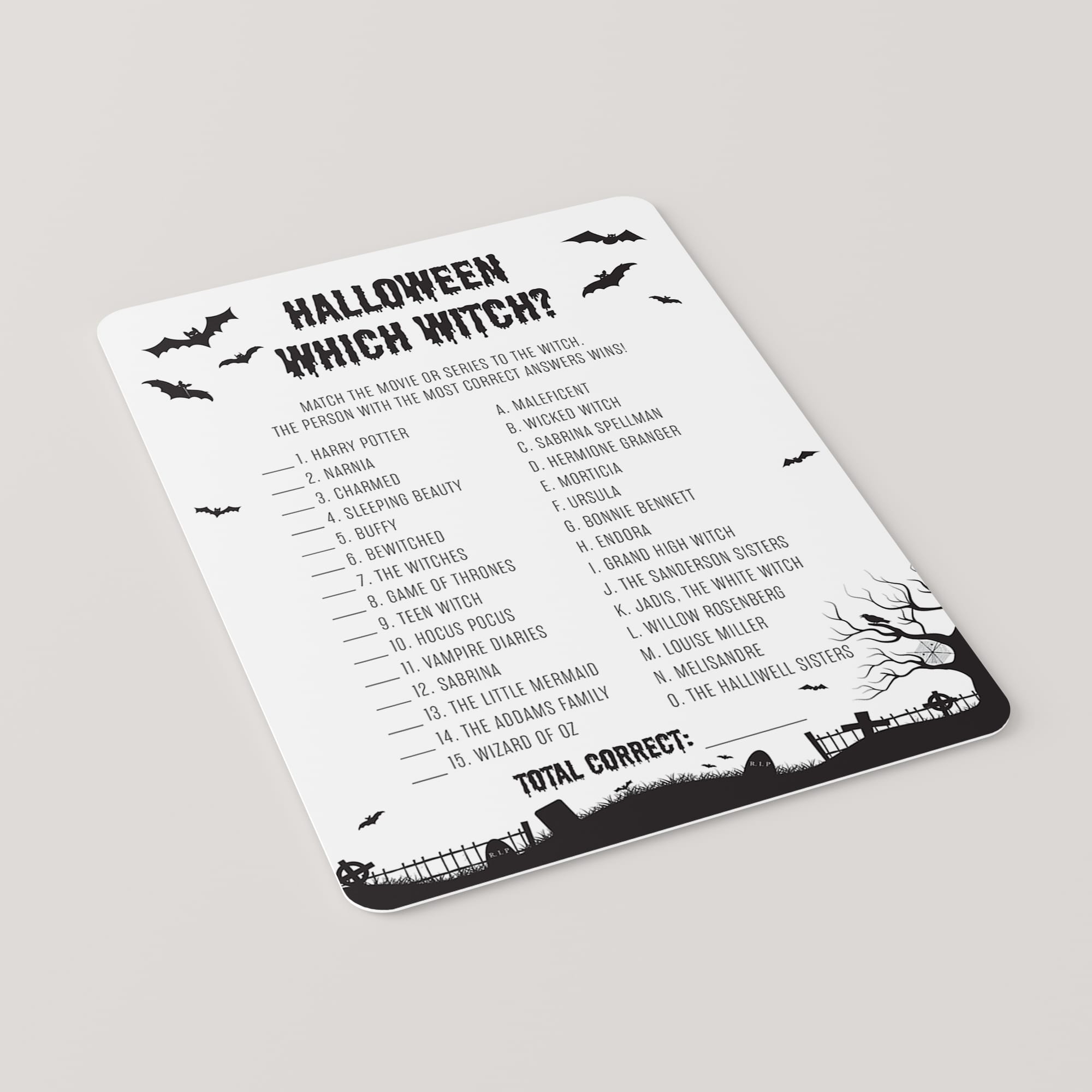 Are you hosting a Witch theme Halloween party? Use this fun Halloween game to test your guests knowledge about witches. Match the movie or series to the witch. It’s a fun Halloween game to play at your Halloween office party or Halloween family night.