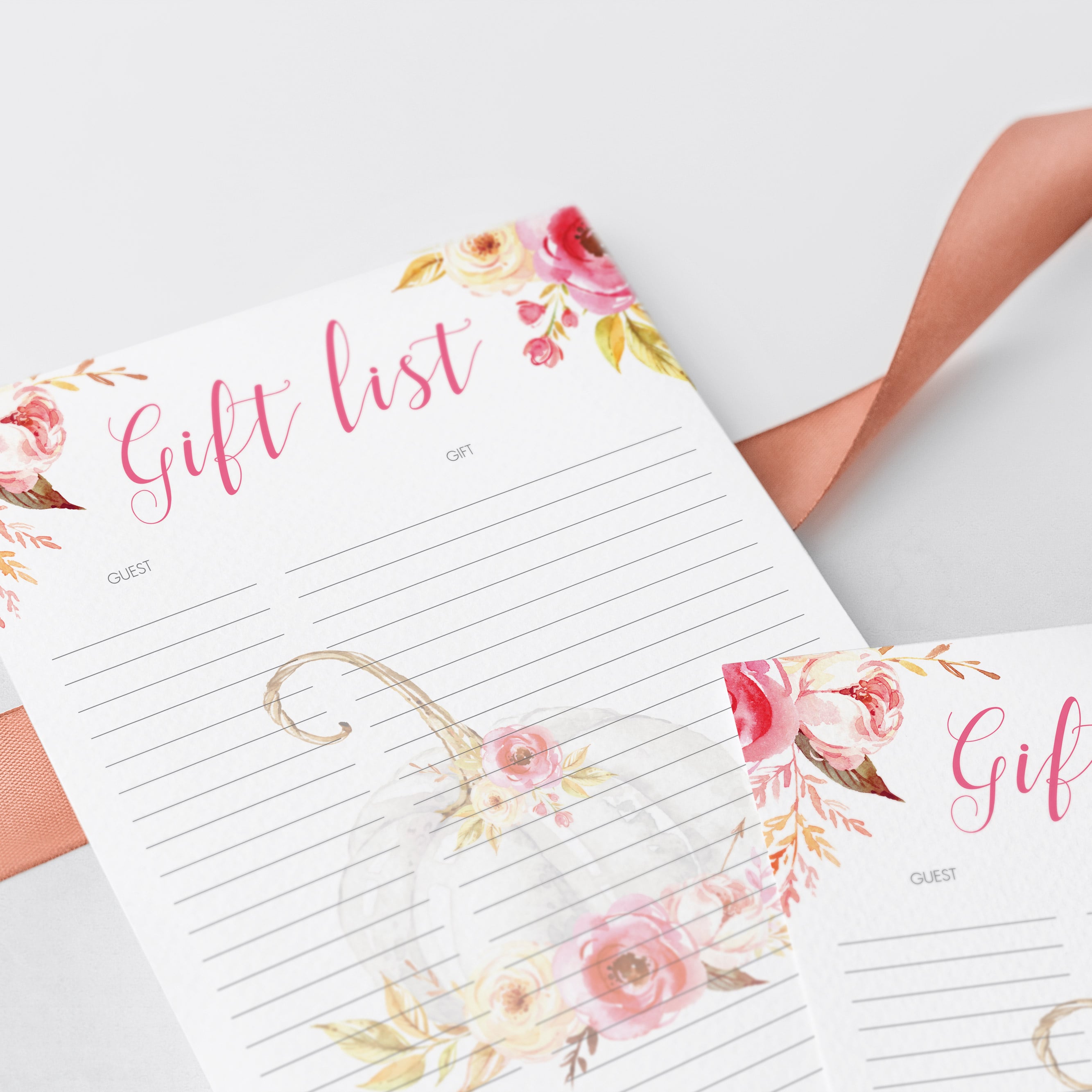 Are you hosting a pumpkin party? Use this pumpkin party decor package to take notes to remember who gave each gift and thank you guests for coming. The printable package includes a gift and guest sheet, thank you cards and favor tags. With these essential pumpkin party supplies, you’ll be ready in no-time!
