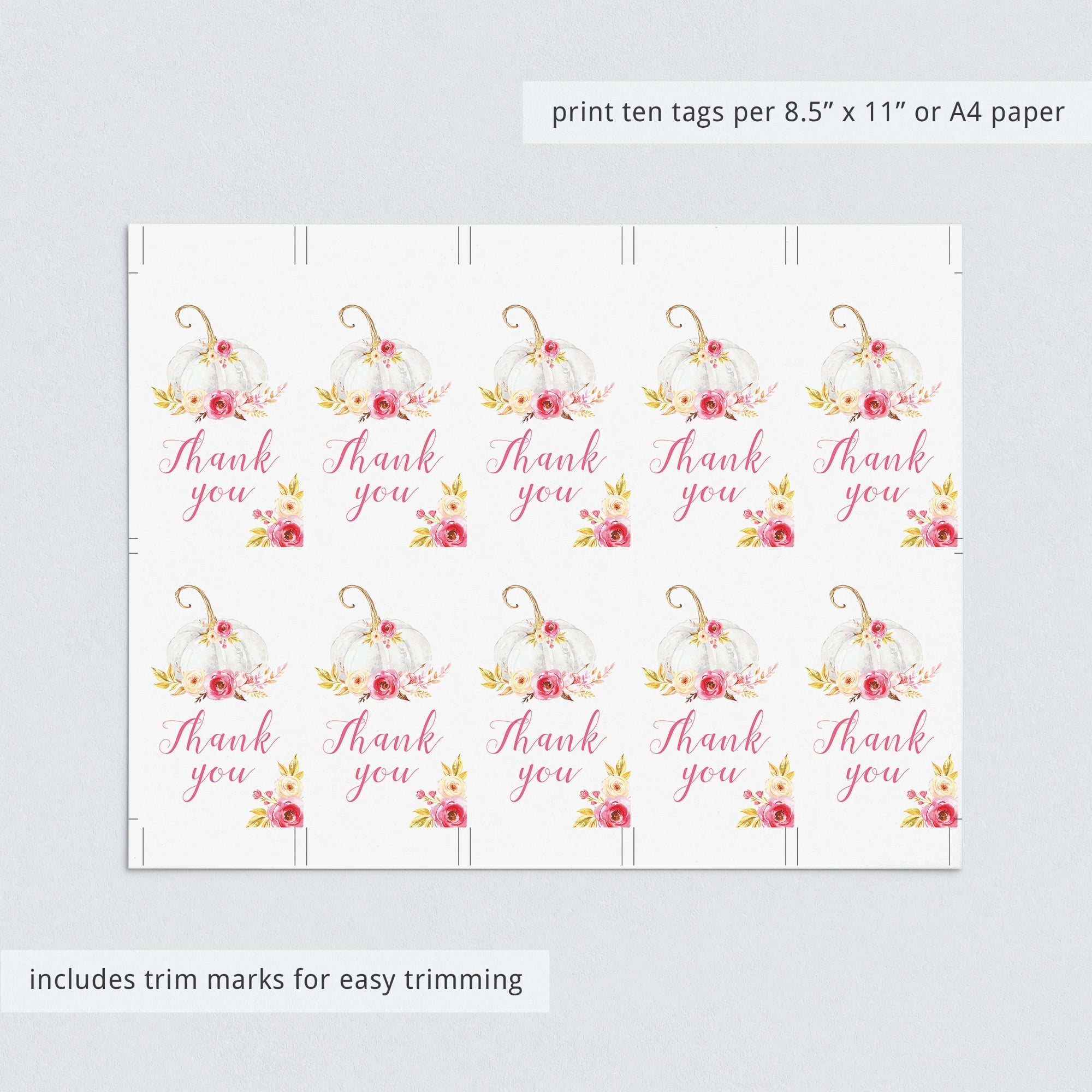 These pumpkin party supplies are instant downloadable files. Simply download and print the items as many times as you need. We recommend printing on a nice heavy card stock for highest quality feel. Print right from your computer in a matter of minutes or have the items printed at your favorite print shop.