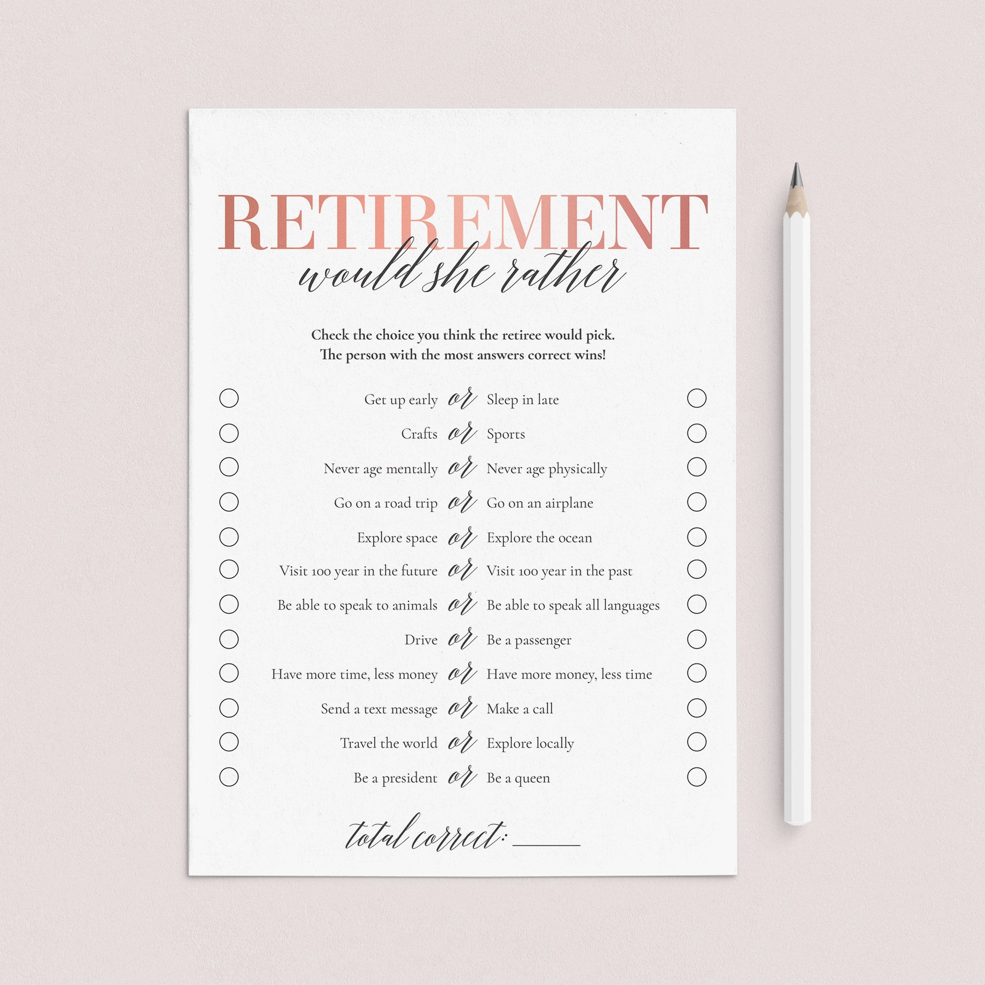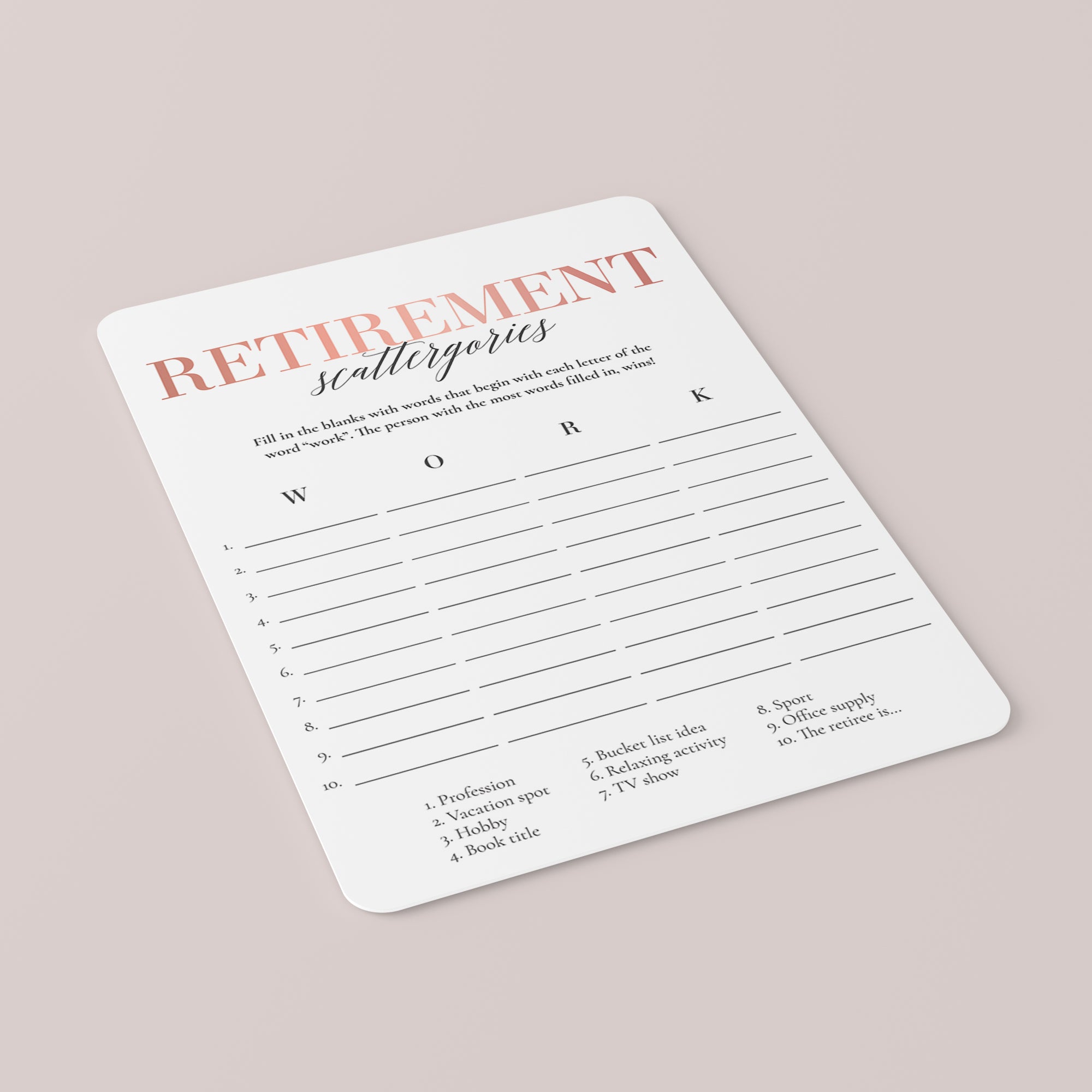 Are you planning a retirement party for your mother, grandmother, mother in law or colleague? Kick off the celebration with a variety of fun retirement party games! This budget-friendly bundle of printable retirement party games for her are the perfect addition to any retirement party. The modern blush games will fit any women's retirement party theme. Games are a must for every retirement party!