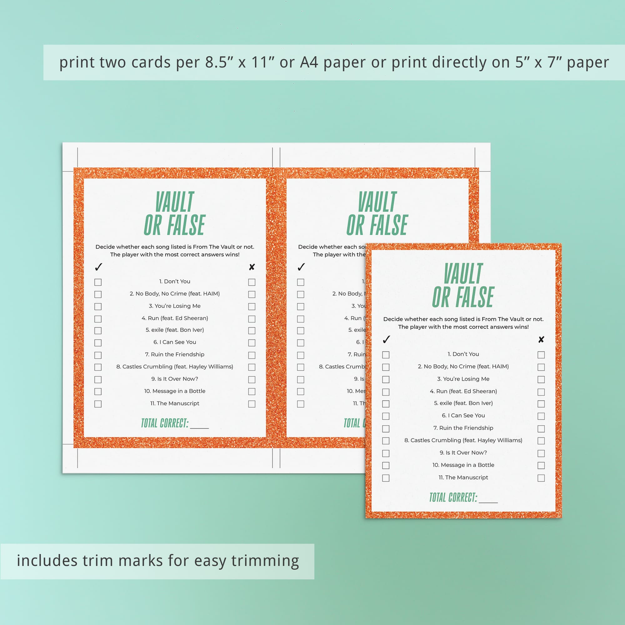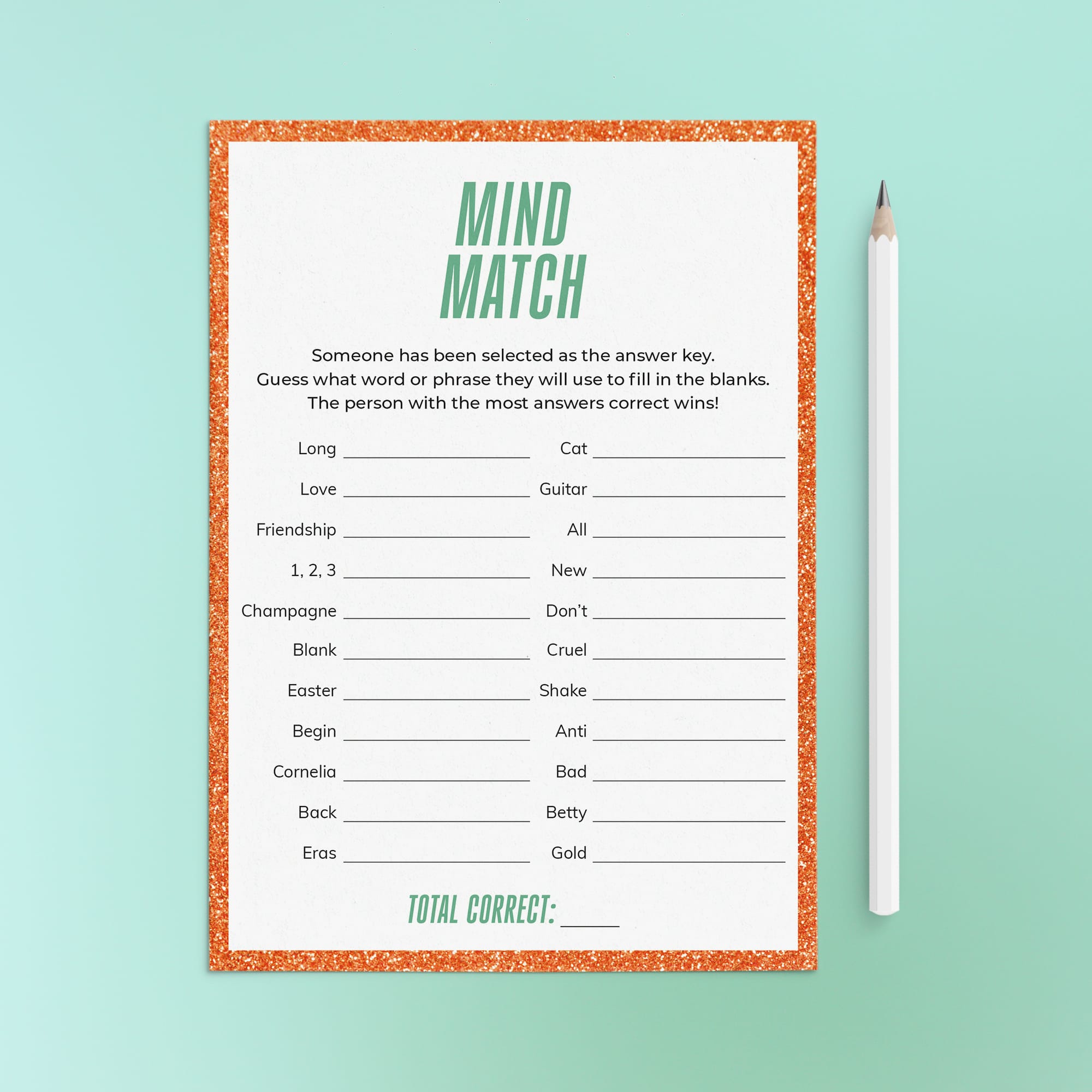 Turn your party into a glittering celebration with this Showgirl-inspired printable game bundle, featuring a dazzling glitter orange border and playful mint green accents. These fun music games work beautifully for birthdays, sleepovers, or Showgirl themed listening parties.