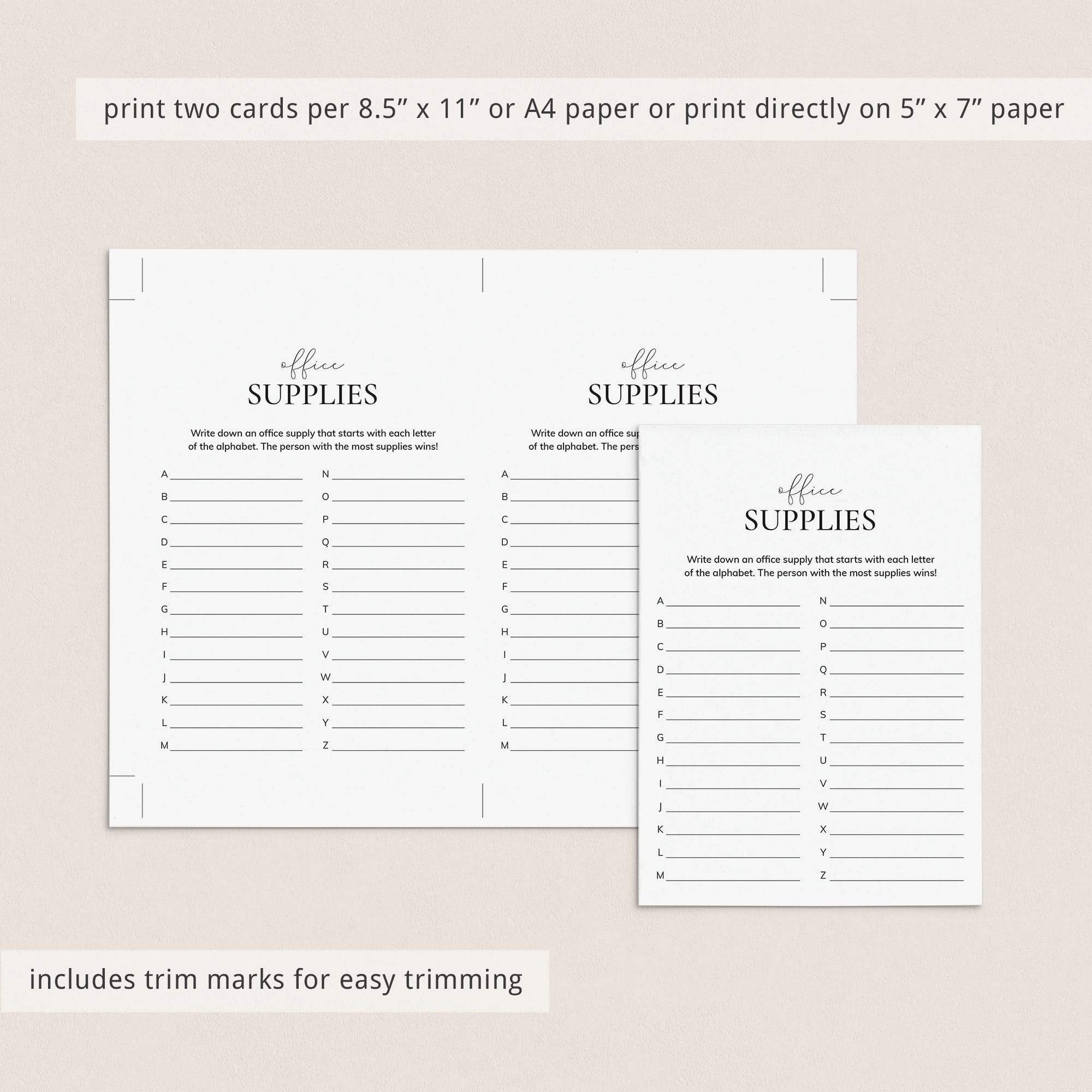 Simple Office Party Game Printable A To Z Office Supplies by LittleSizzle