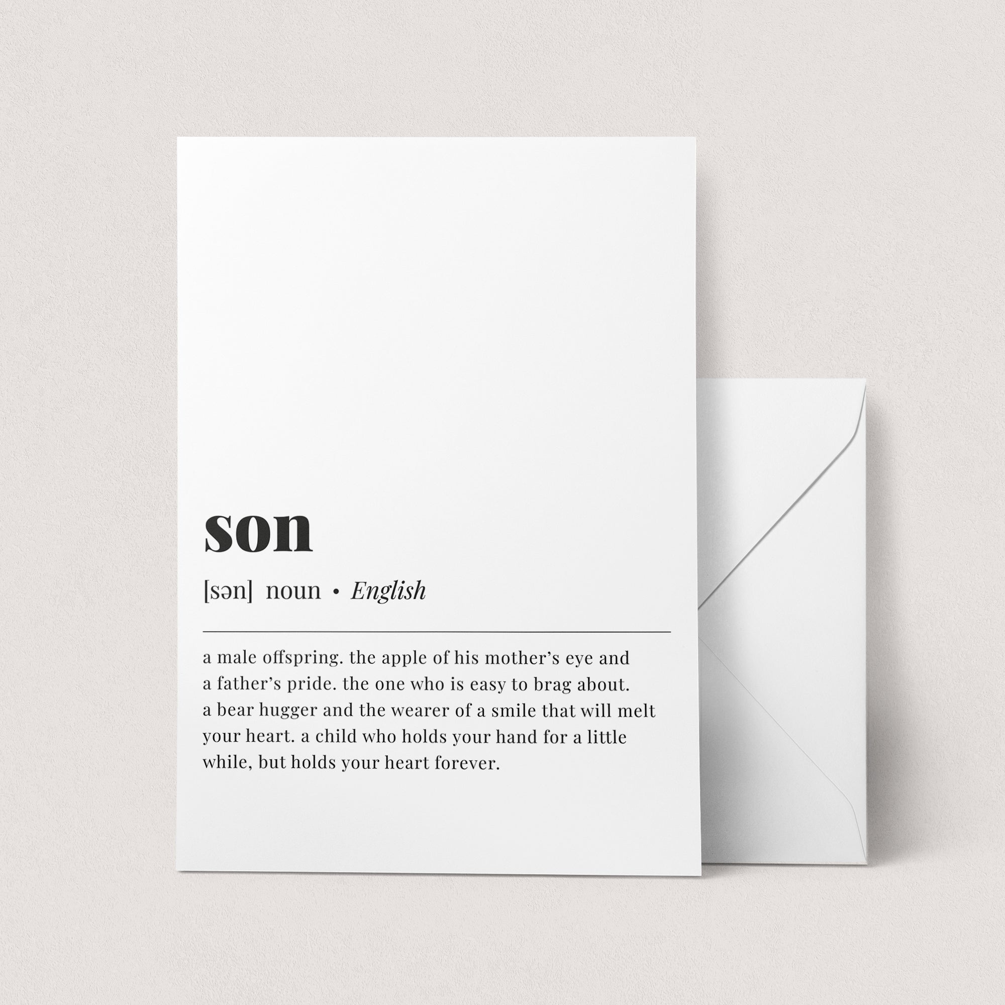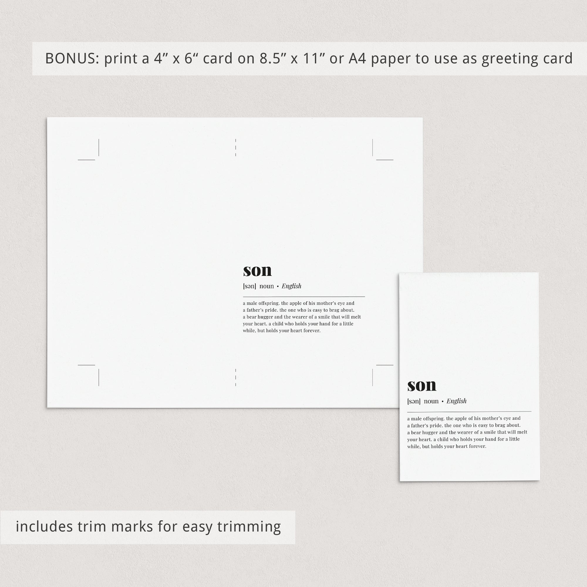 Are you looking for the perfect gift for your son? Look no further! This modern minimalist son definition print is the perfect gift for your son. Whether you're looking for a unique birthday gift or just a thoughtful card to remind him how special he is, this Son typography print will definitely put a smile on his face.