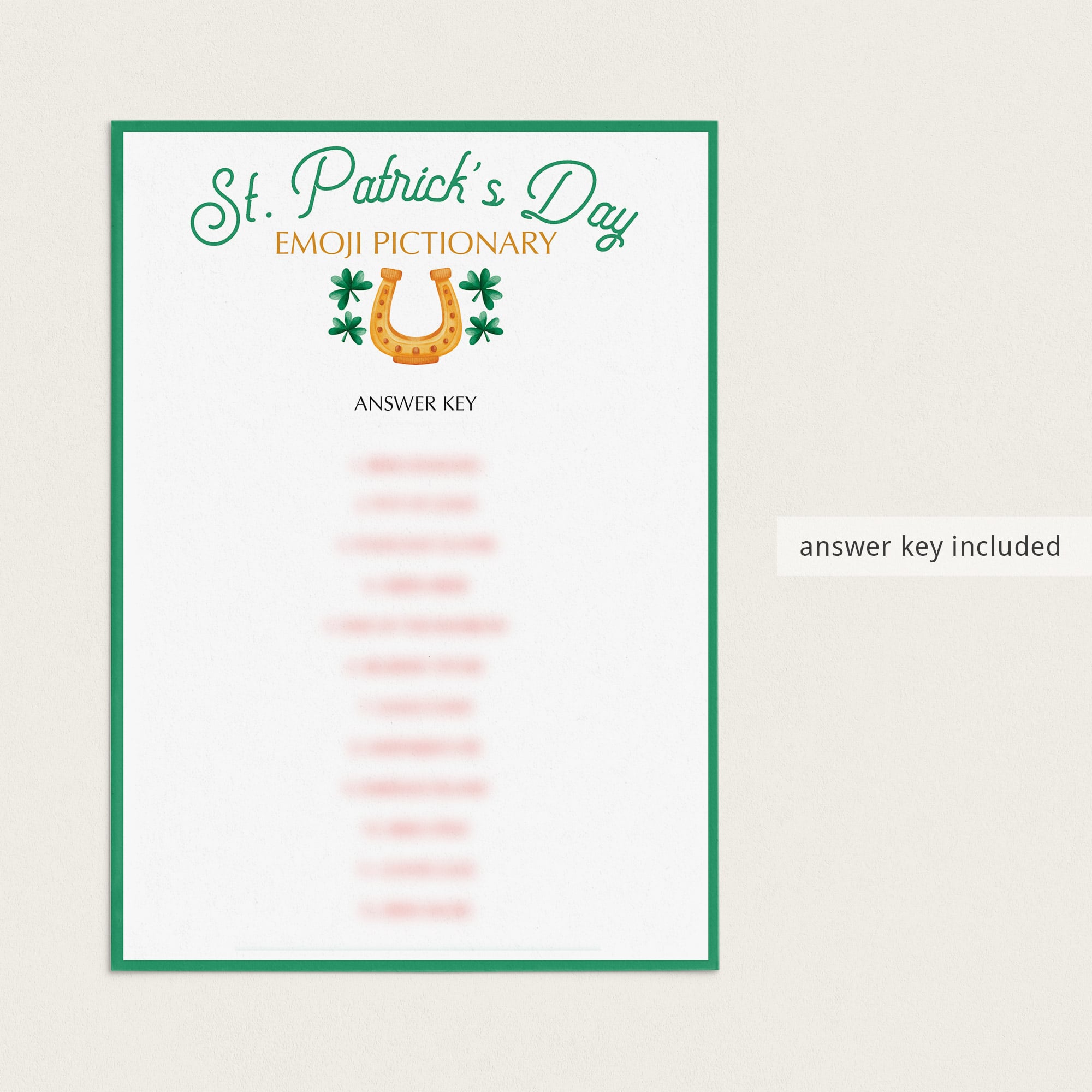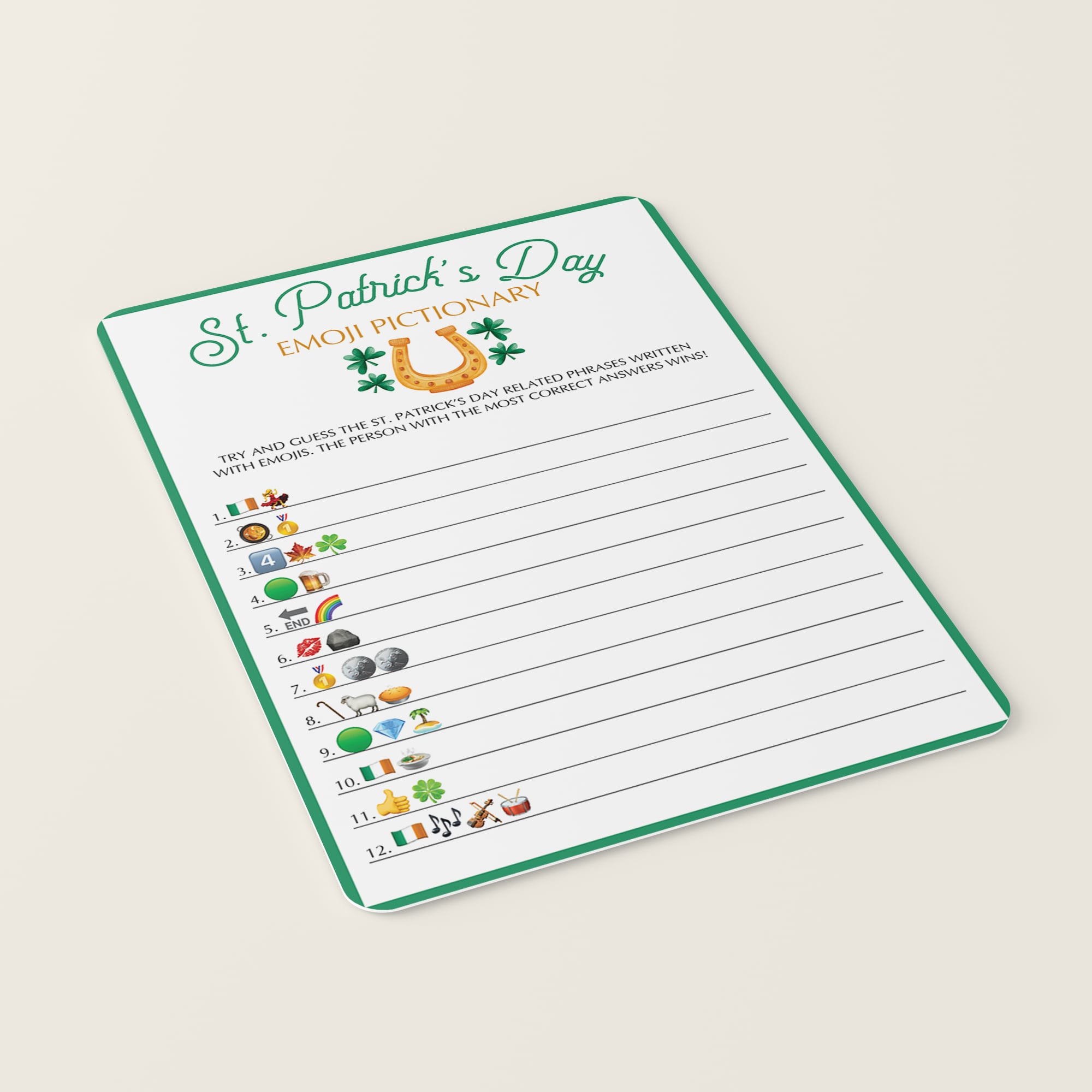 Guess the names of the St. Patrick's Day-related phrases described using emojis we all know and love. The person with the most correct answers wins. An answer key is included.