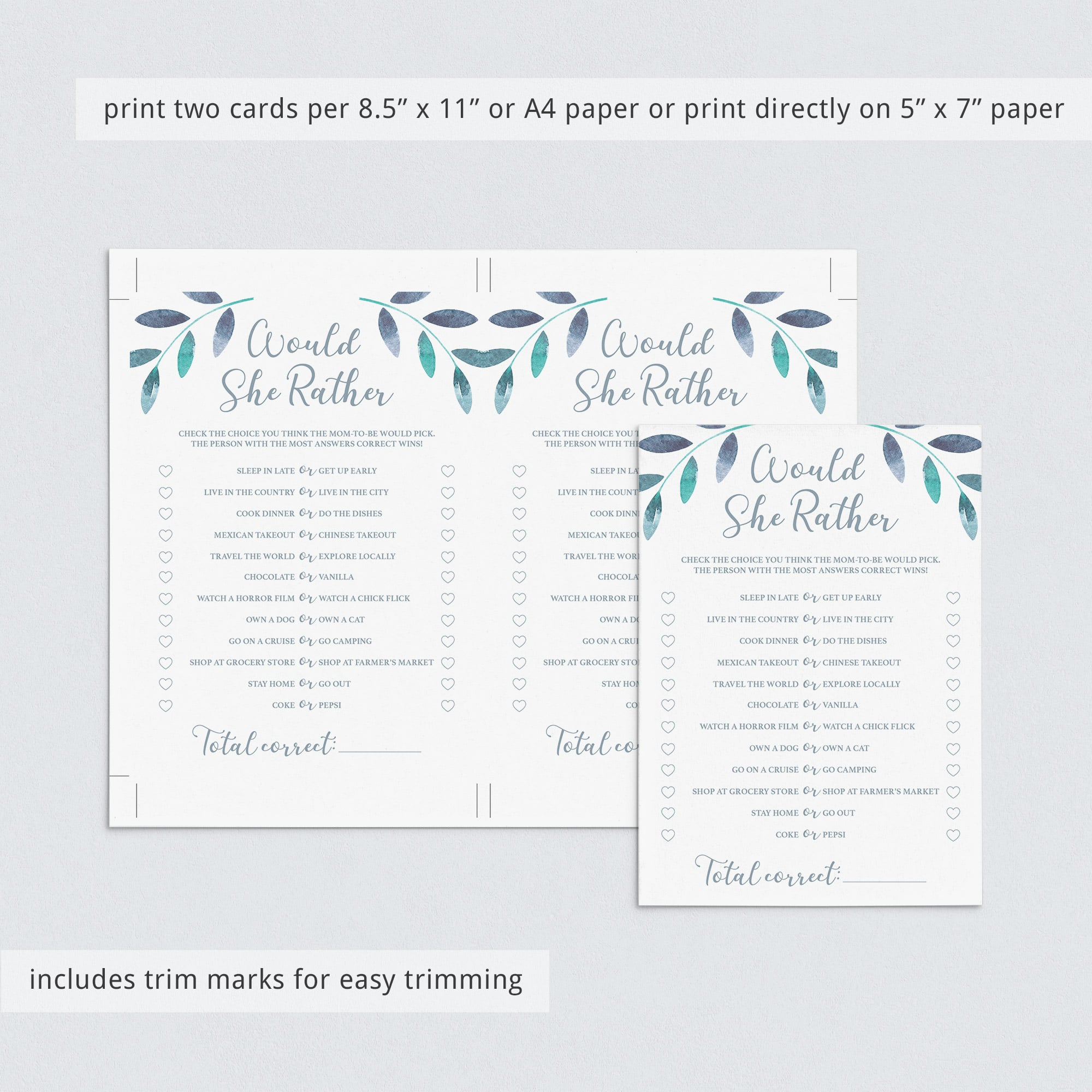 • 1 Editable PDF sized 8.5” x 11” with trim marks for twice the 5” x 7” design