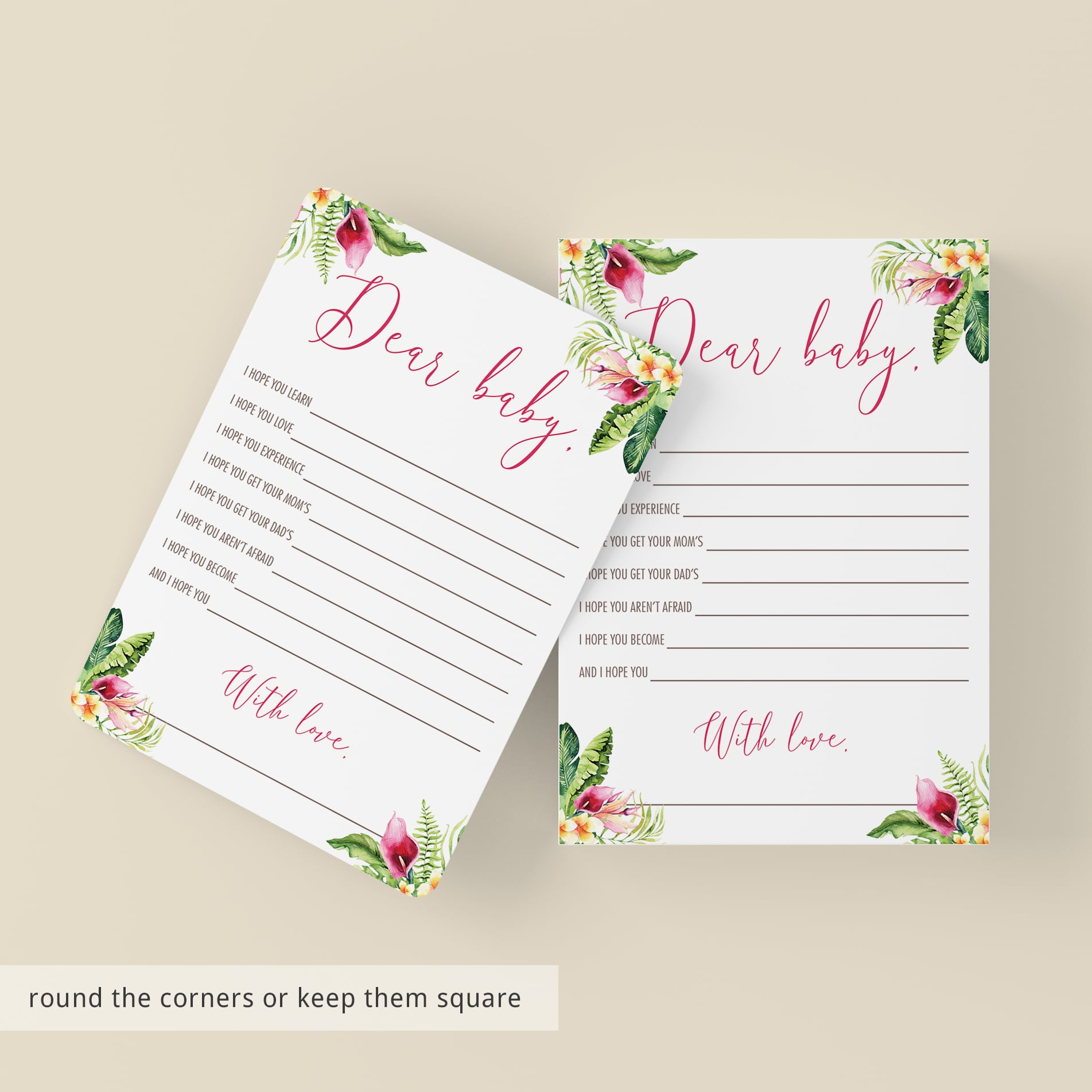 Create meaningful keepsakes with this gorgeous package of tropical flora baby shower games. The package includes everything you need to engage your baby shower guests during the celebration and it makes a beautiful keepsake for the mom-to-be afterwards. These games are perfect for a floral themed or summer baby shower.