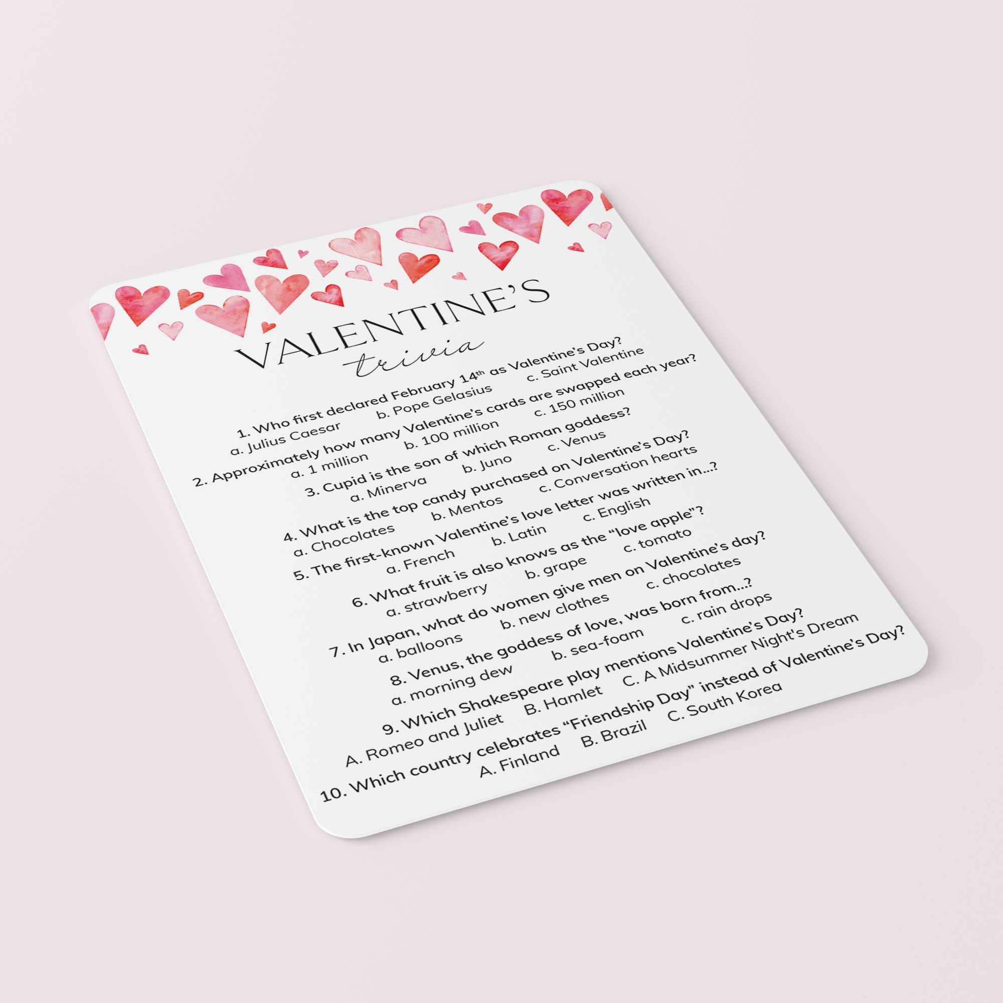 Are you hosting a Valentine's Day party? Test your guests knowledge of this romantic holiday with this Valentine Trivia game with 10 multiple choice questions. The quiz is a great addition... Read more