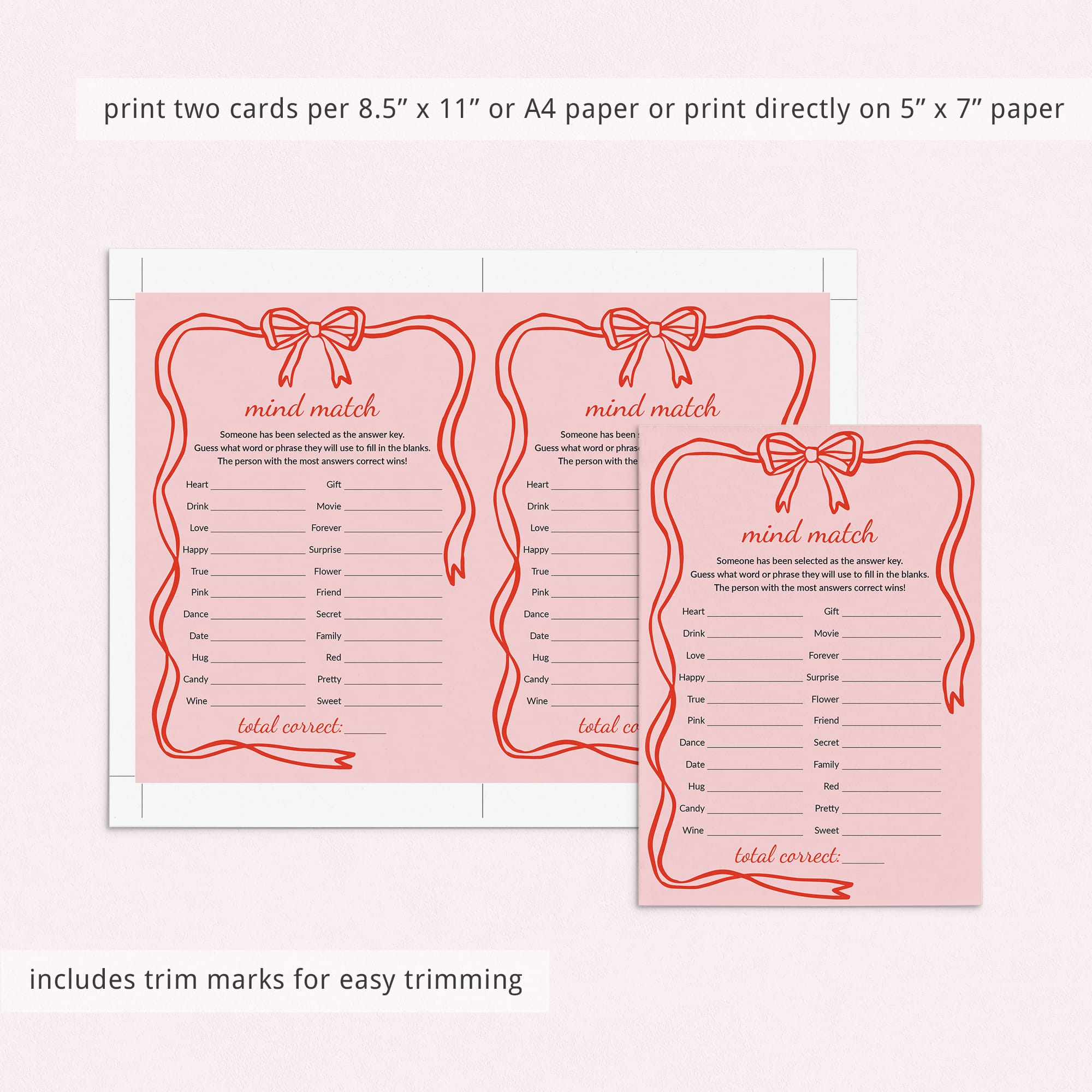 Print the game right from your computer in a matter of minutes or have the game cards printed at your favorite print shop. We recommend printing on a nice heavy card stock for highest quality feel.