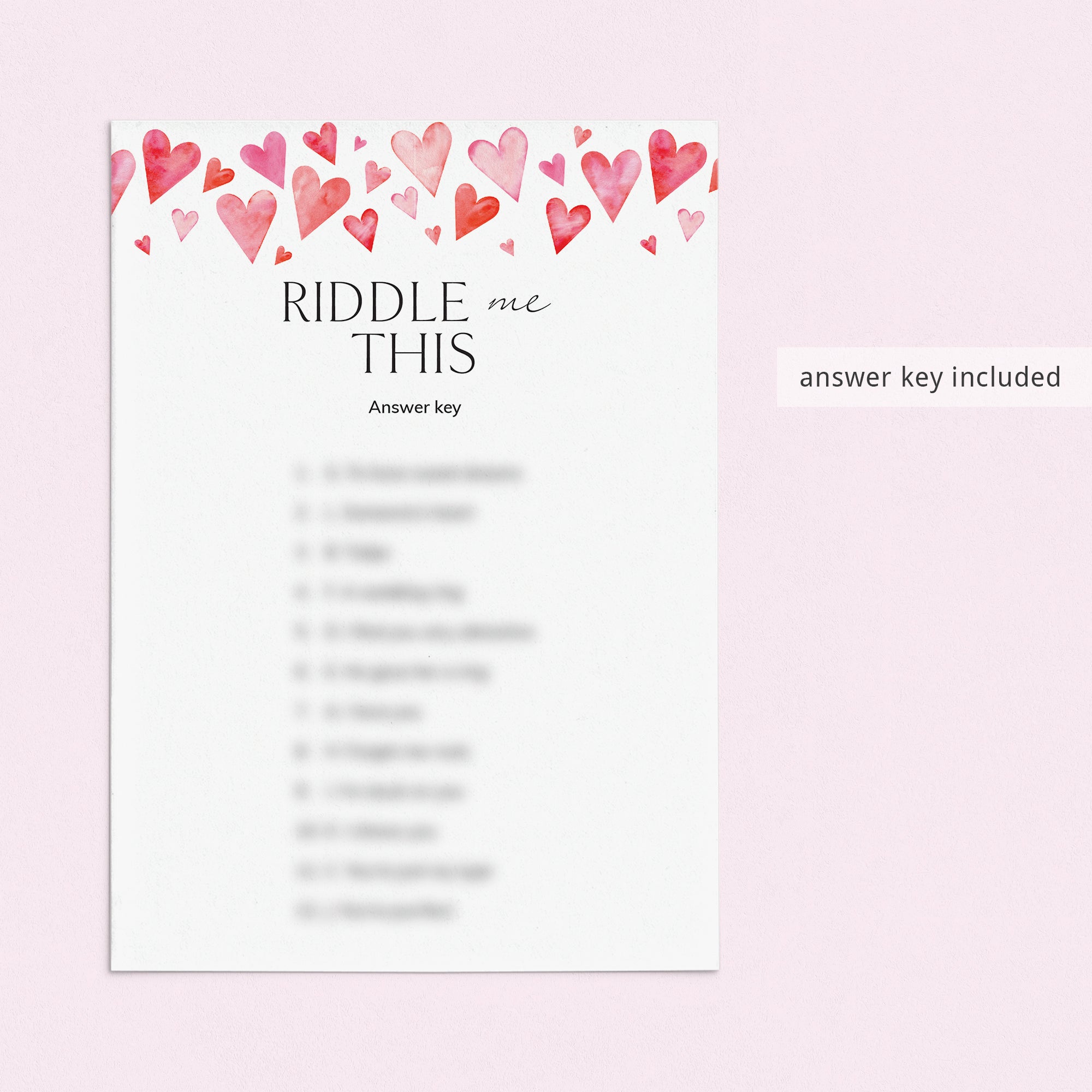 This Valentine's Riddles game is an instant download. After purchase you will receive a download link immediately on screen. Also within minutes of your order and payment, an e-mail will be sent to you with a link for your download.