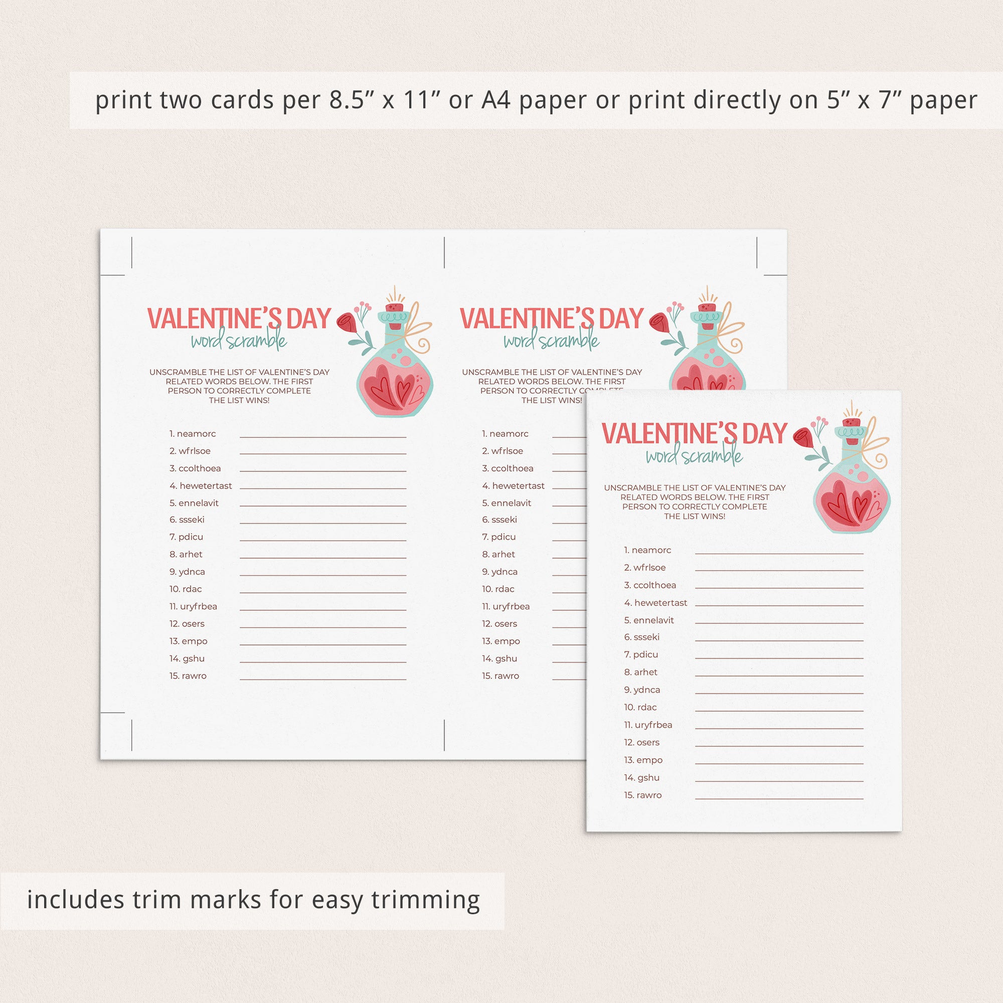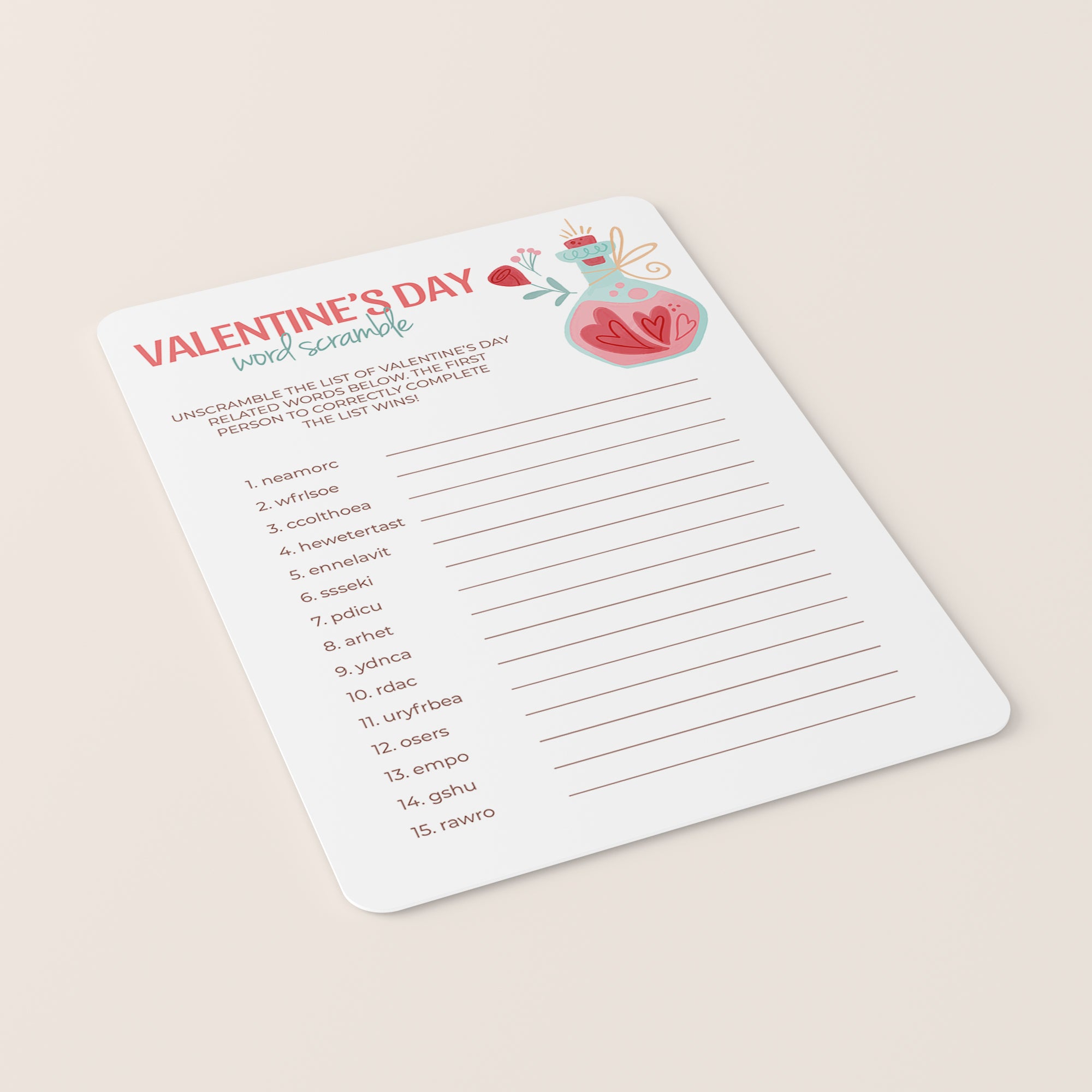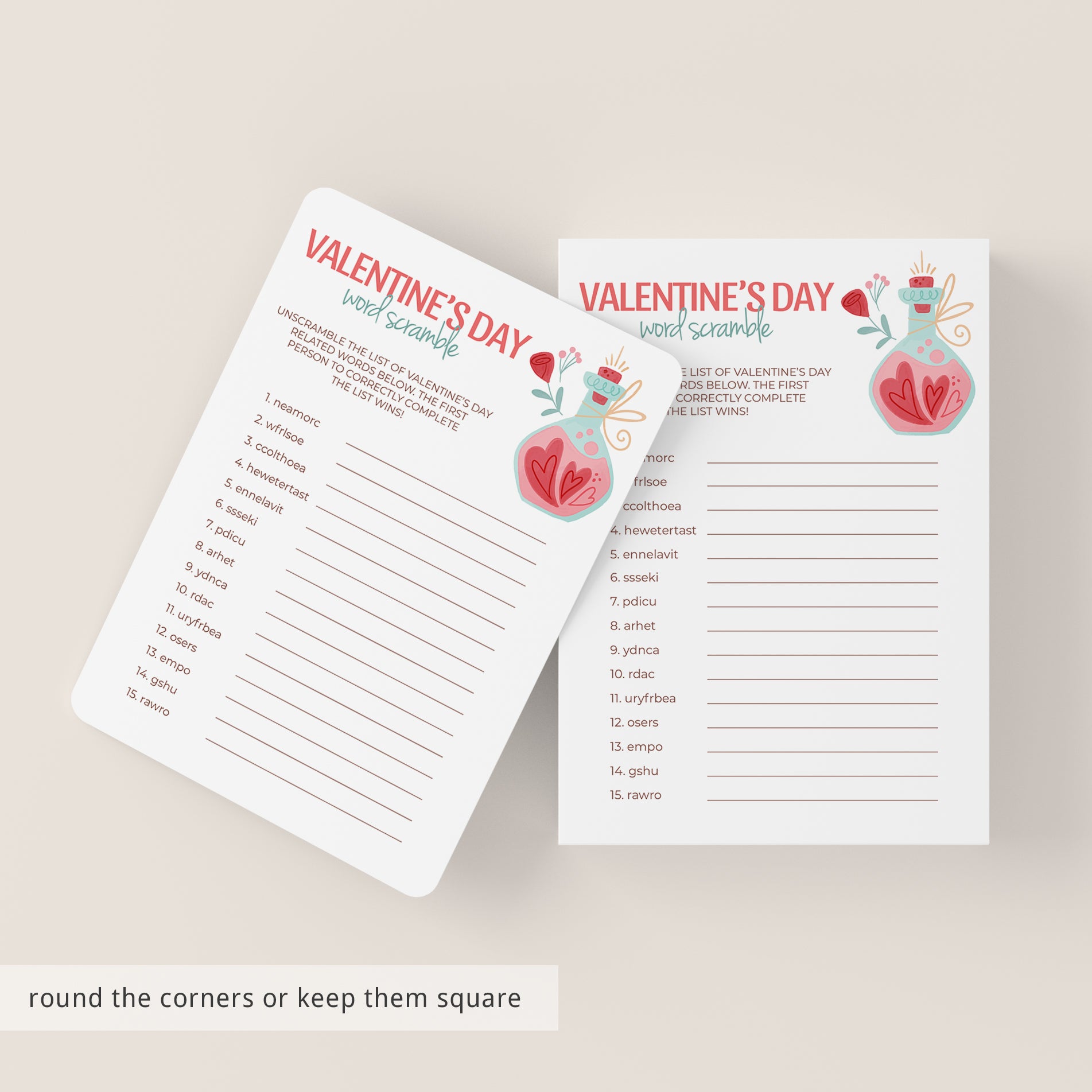 Are you hosting a Valentine's Day party? Add some extra fun with this cute Valentines Word Scramble game with watercolor love potion. It's a ton of fun for all ages.