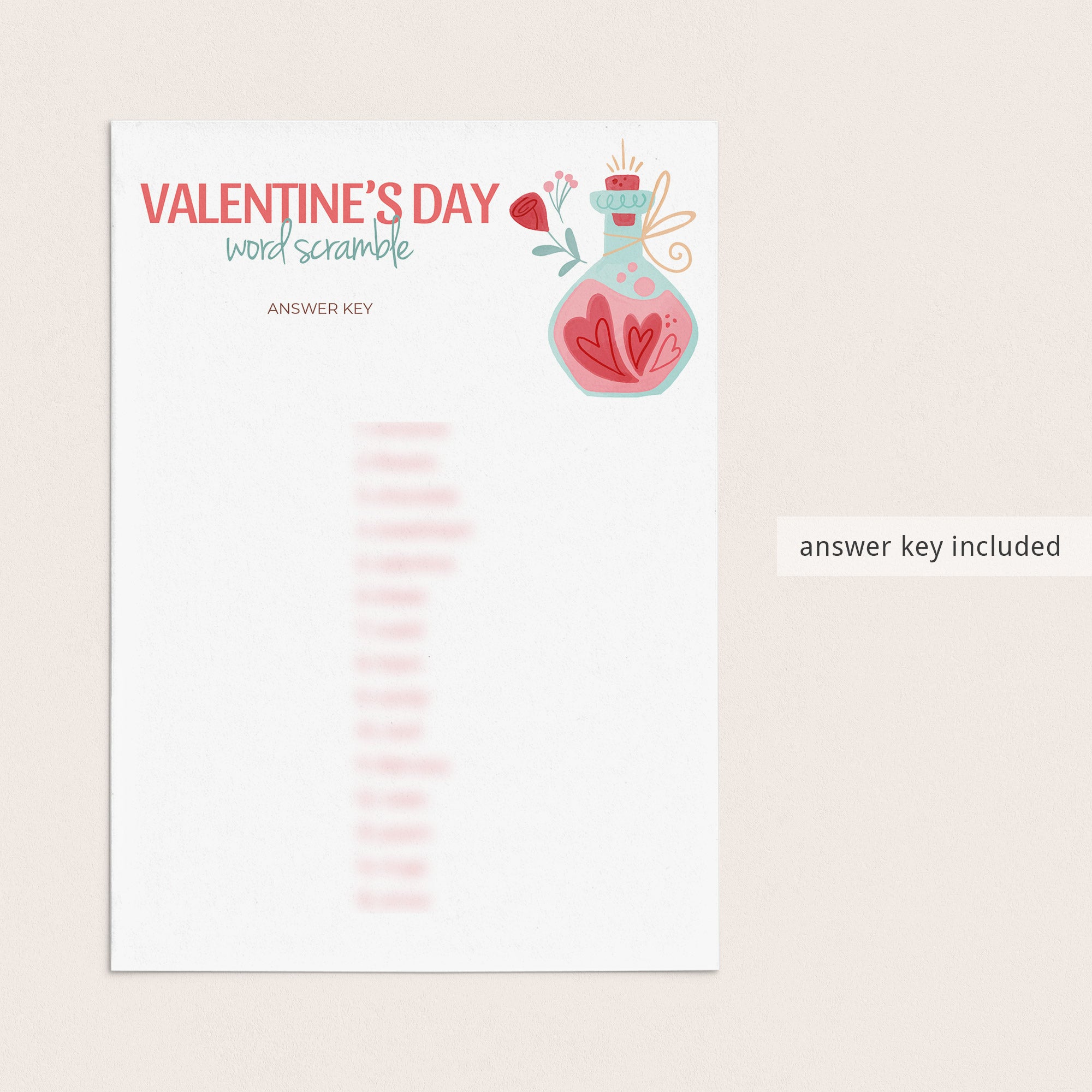 The game can be used in classrooms or for a Valentine's Day party with friends. Have everyone try to unscramble the Valentine's Day-related words. Just in case you have trouble figuring out the scrambled words, an answer key is included.