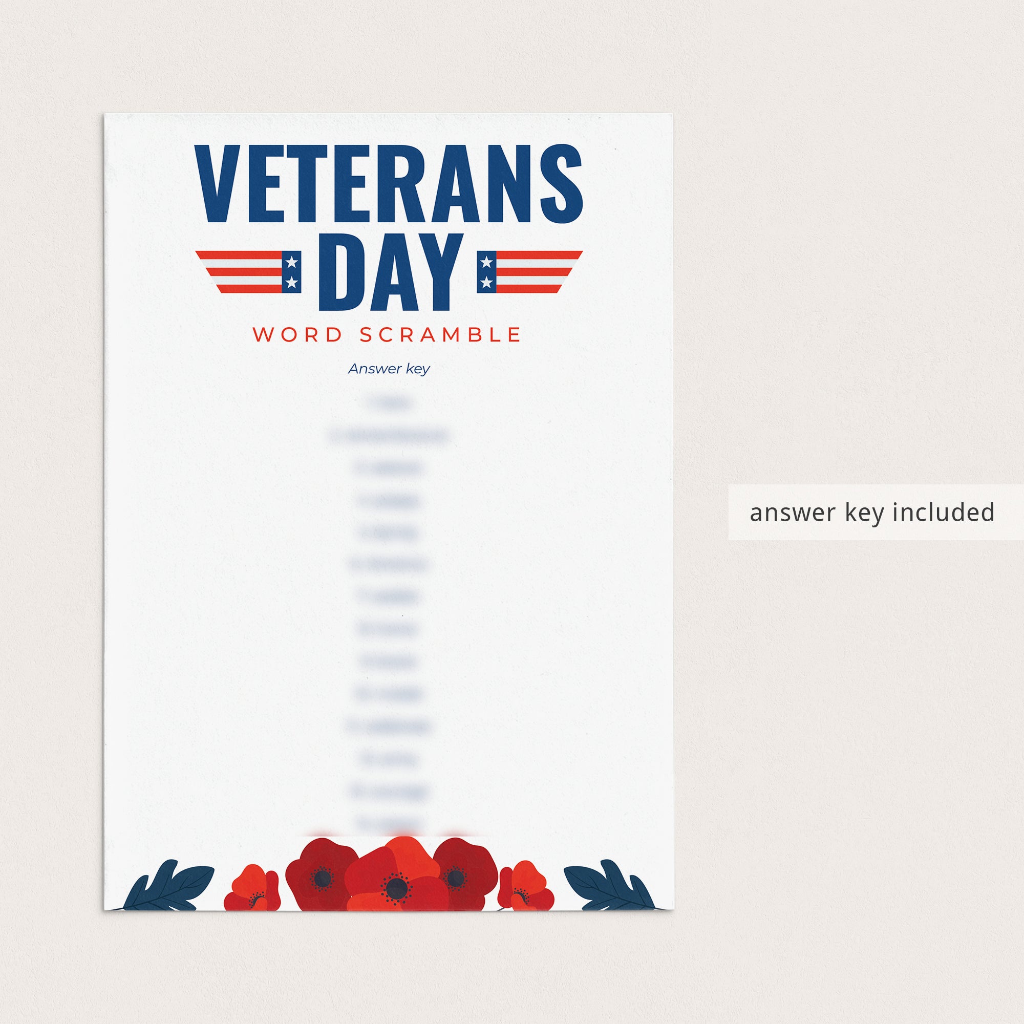 Have everyone try to unscramble the Veterans Day-related words. Just in case you have trouble figuring out the scrambled words, the answer key is included.