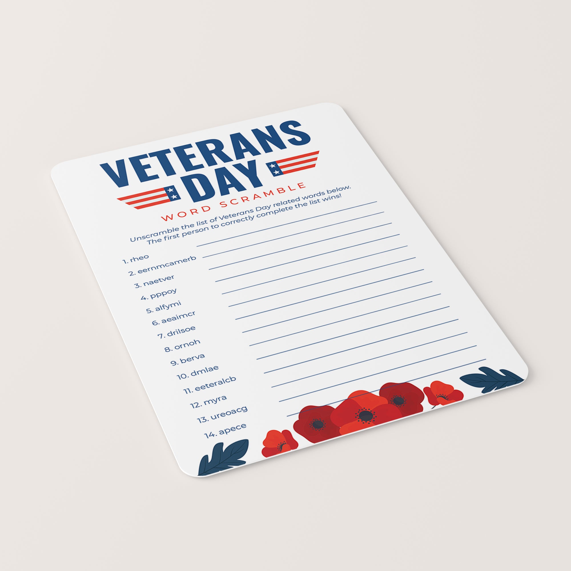 This Veterans Day Word Scramble game with red poppies is a ton of fun for all ages. The game can be used in classrooms, at the office or for your Veterans Day community event.