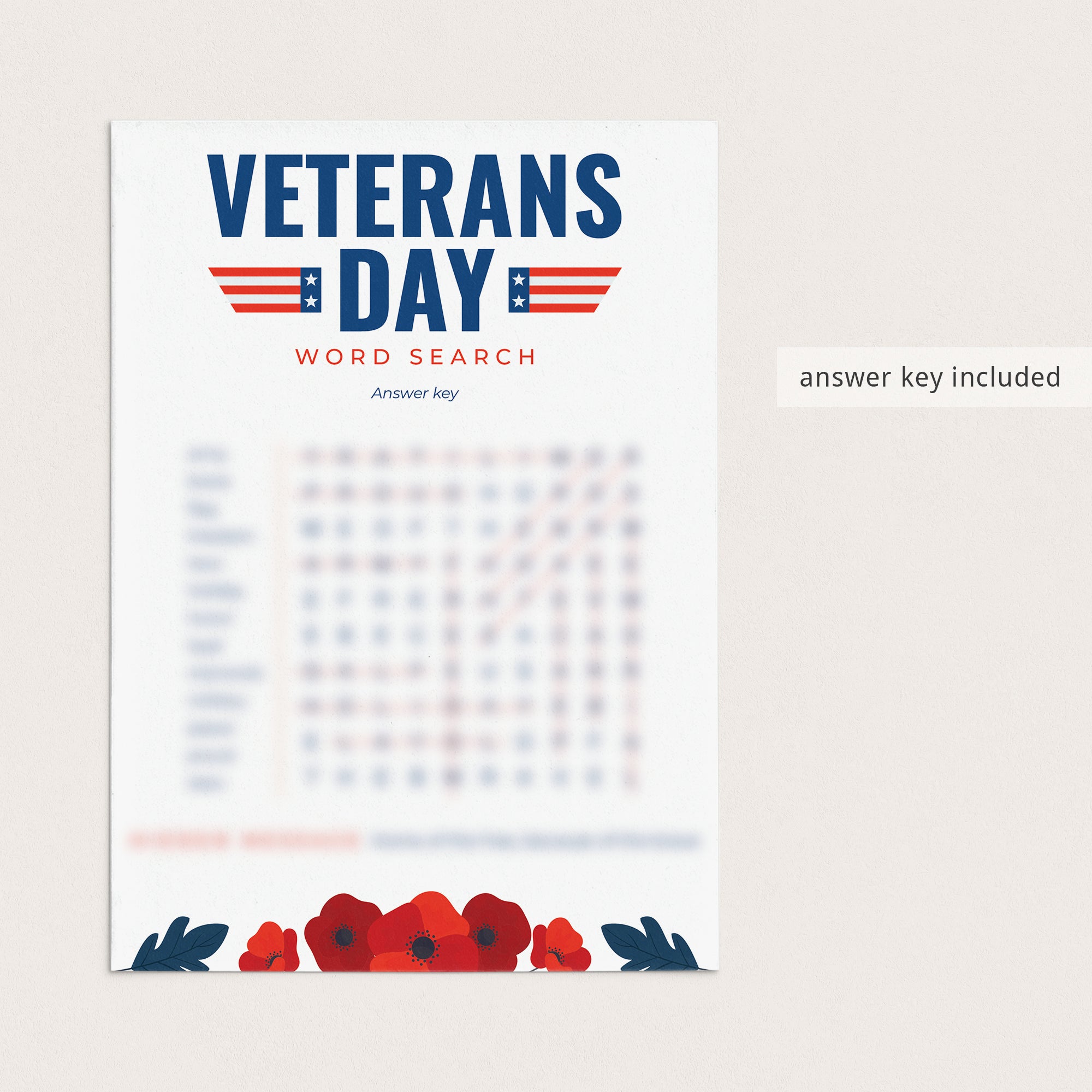 Veterans Day Word Search with Answer Key Printable by LittleSizzle