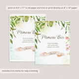 A Mimosa Bar will take your shower to the next level. Use this gorgeous watercolor leaves Mimosa Bar sign to decorate your Mimosa Bar Table and help guests know how to prepare their drinks. You'll easily add a lovely touch to any party.