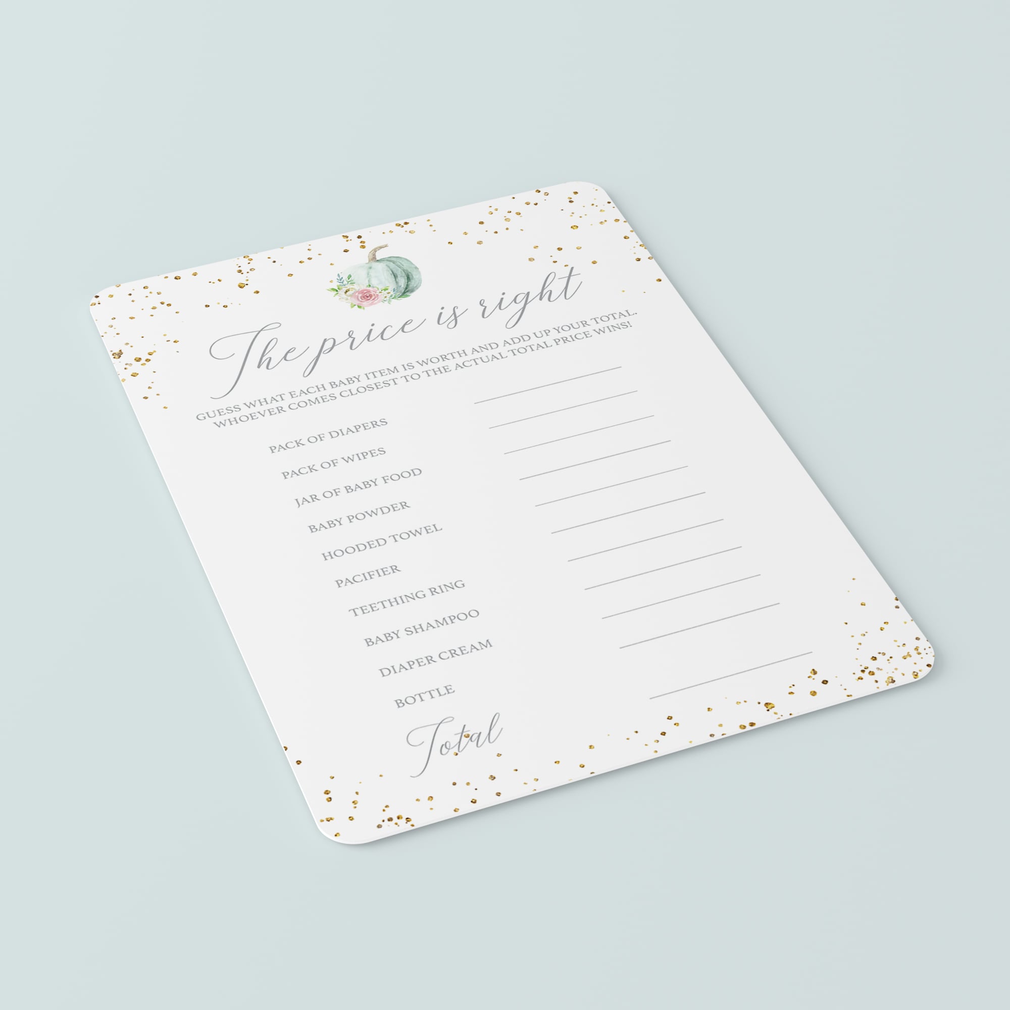 Watercolor Pumpkin Baby Shower Game Price Right by LittleSizzle