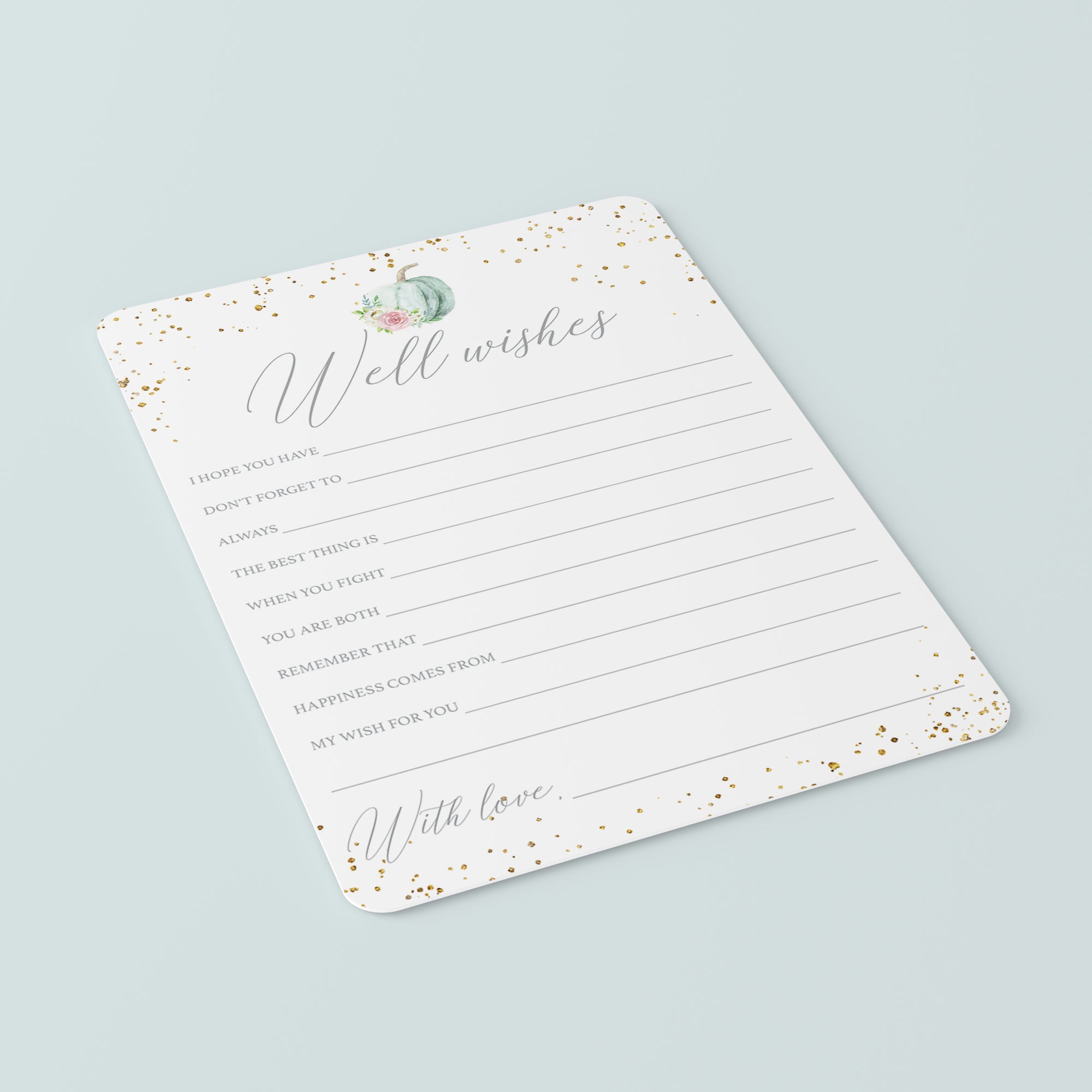 Create an amazing keepsake for the newlyweds with this gorgeous watercolor pumpkin wedding shower well wishes card. It's the perfect addition to any fall wedding shower. Let every guest write down their advice and wishes for the soon-to-be-weds and collect the cards for the happy couple.