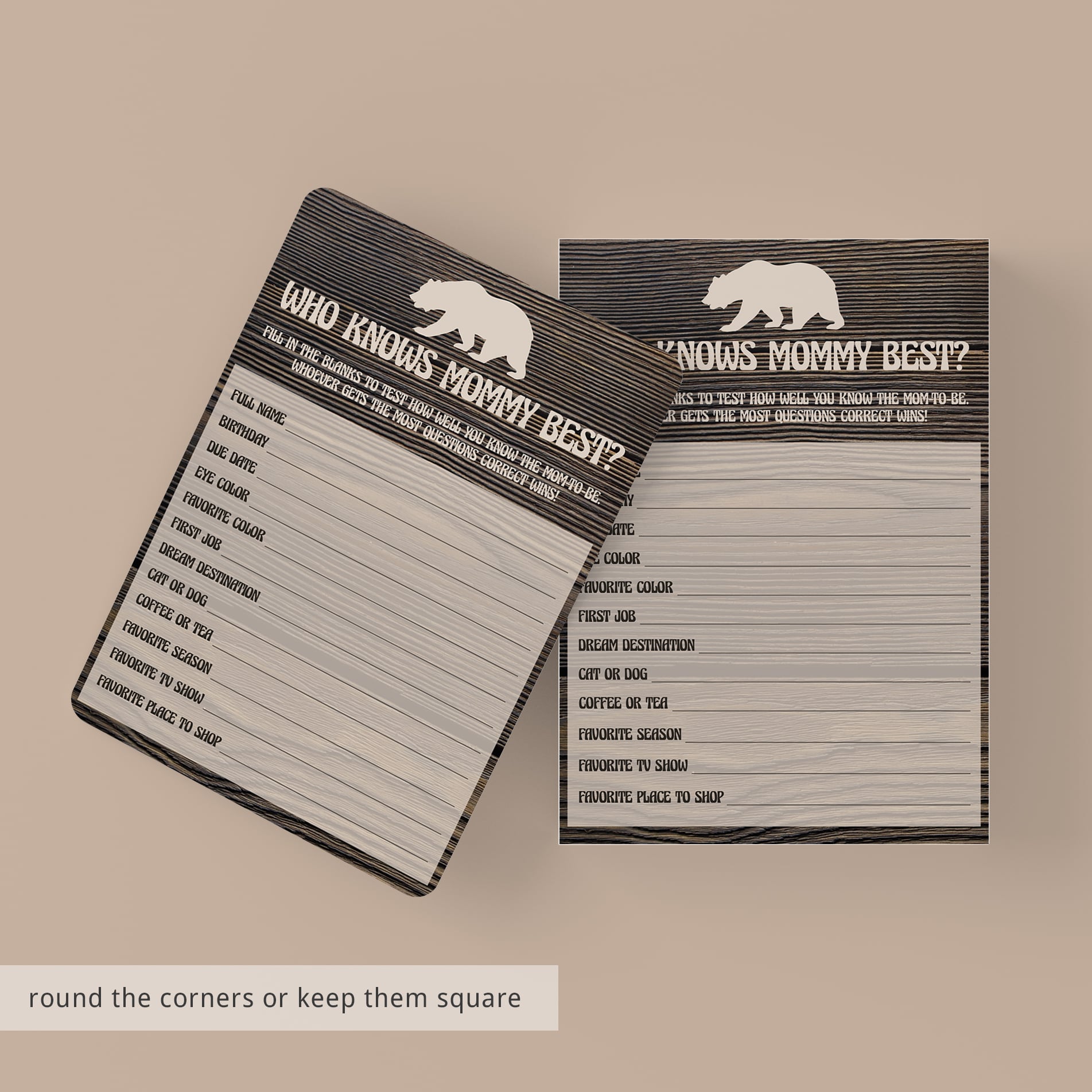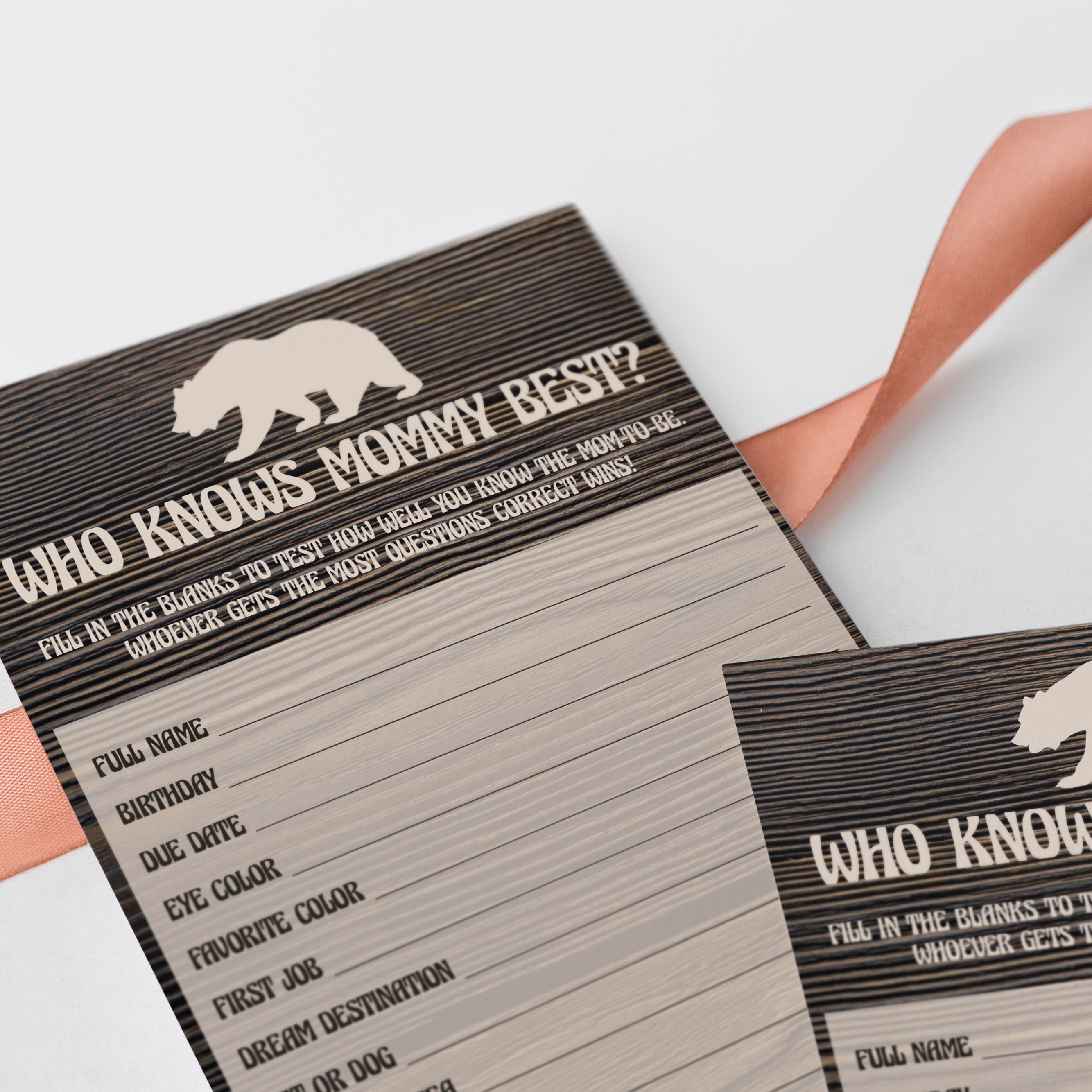 Test your guests how good they know the new mom and play ‘Who knows mommy best’ with these rustic wood baby shower game cards. This mommy quiz is a great way to bring disparate people together and to put them all in a party mood.