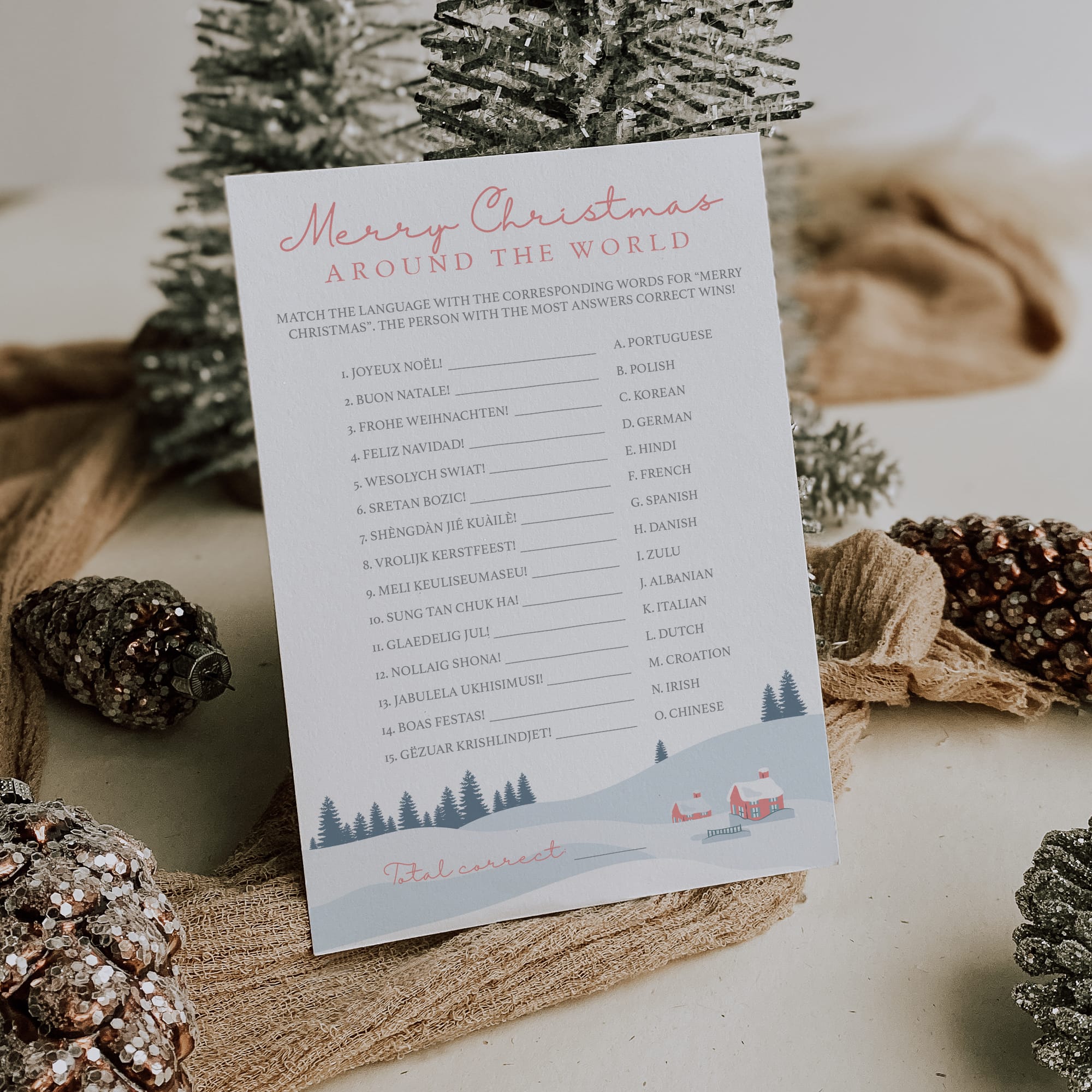 The Christmas games are instant downloadable files, so simply download and print or distribute online within minutes after purchase. The games can be printed at the comfort of your home or ordered from a local or online print shop. A detailed instruction guide, with tips & tricks on printing, trimming and paper choice is included.