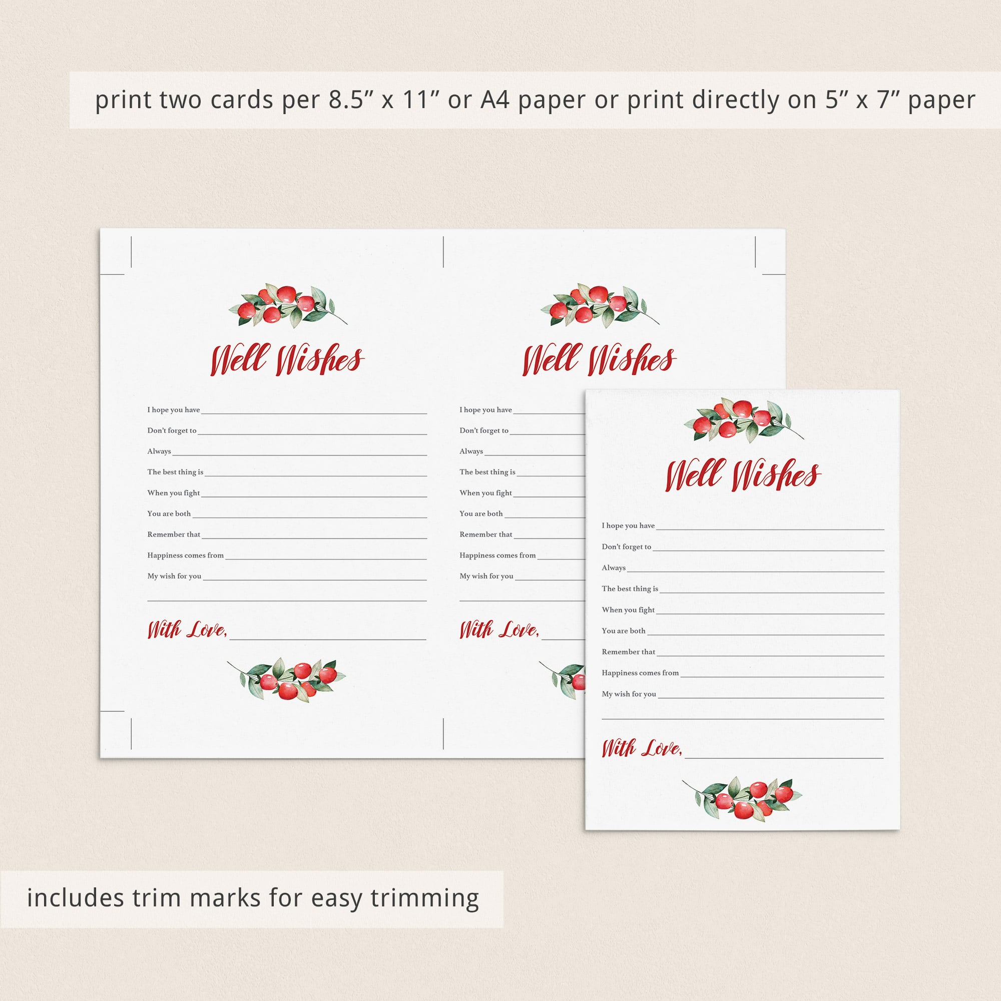 This well wishes card is an instant download, so simply download and print the cards as many times as you need. We recommend printing on a nice heavy card stock for highest quality feel. Print right from your computer in a matter of minutes or have the cards printed at your favorite print shop.