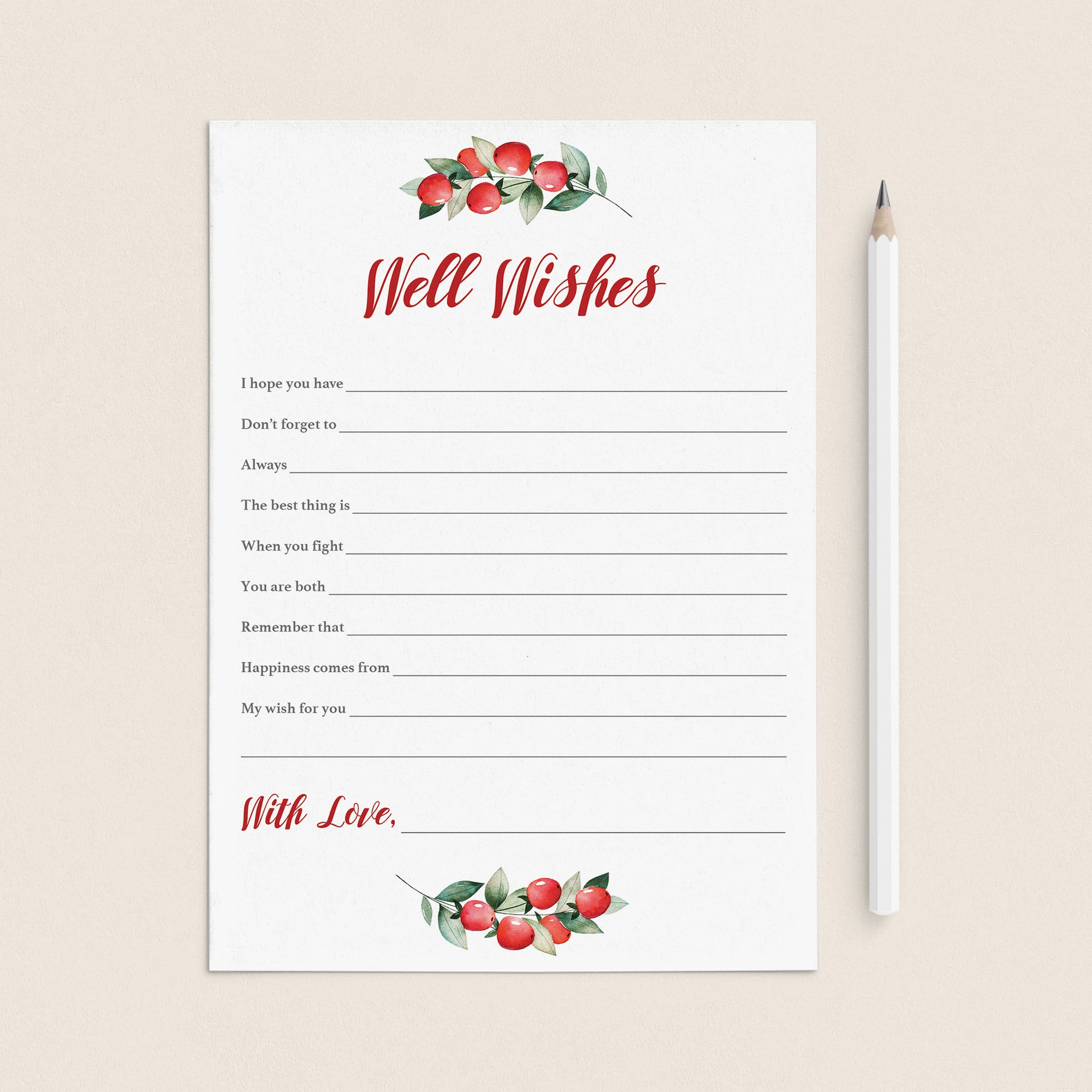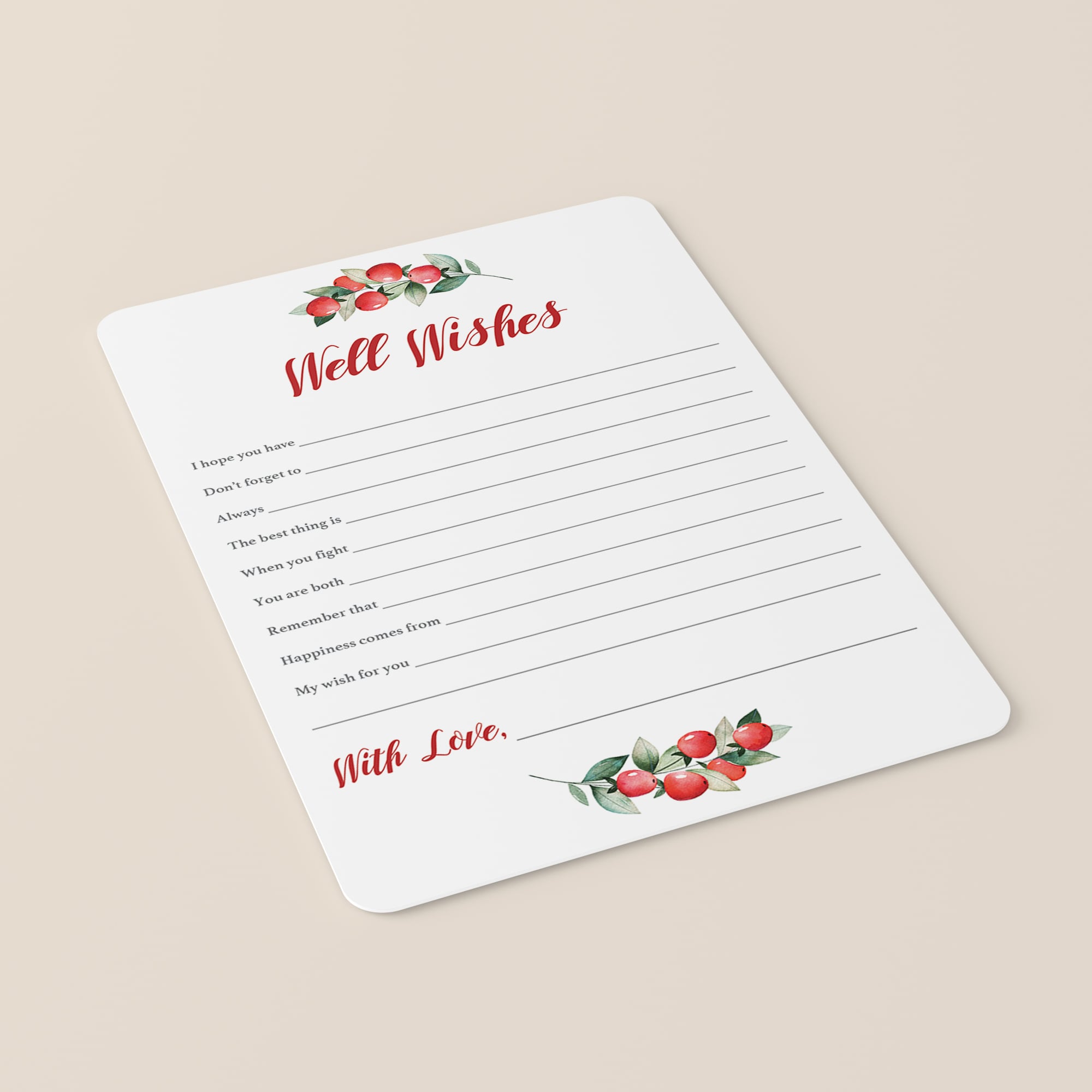The red berries and green leaves will ensure that you have those special winter vibes at your party. It's the perfect addition to any winter bridal shower or bachelorette party. Let every guest write down their advice and wishes for the soon-to-be-weds and collect the cards for the happy couple.