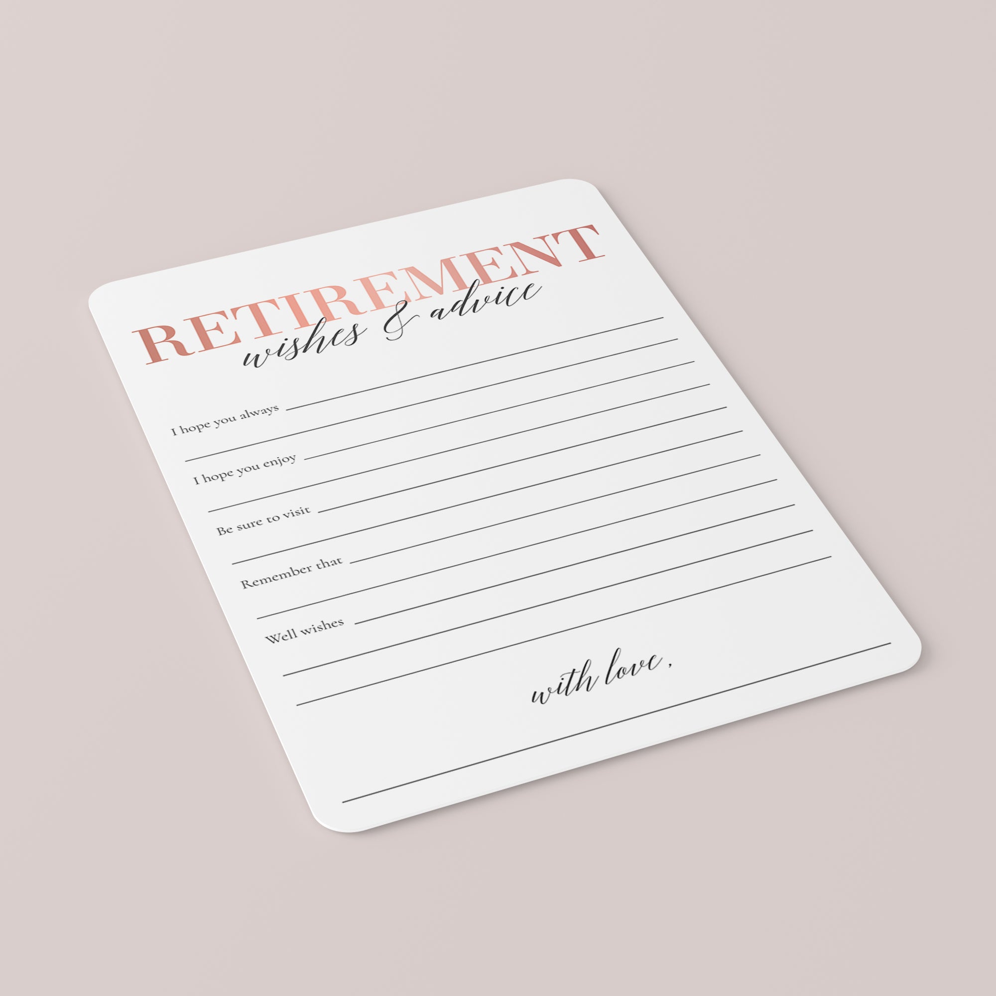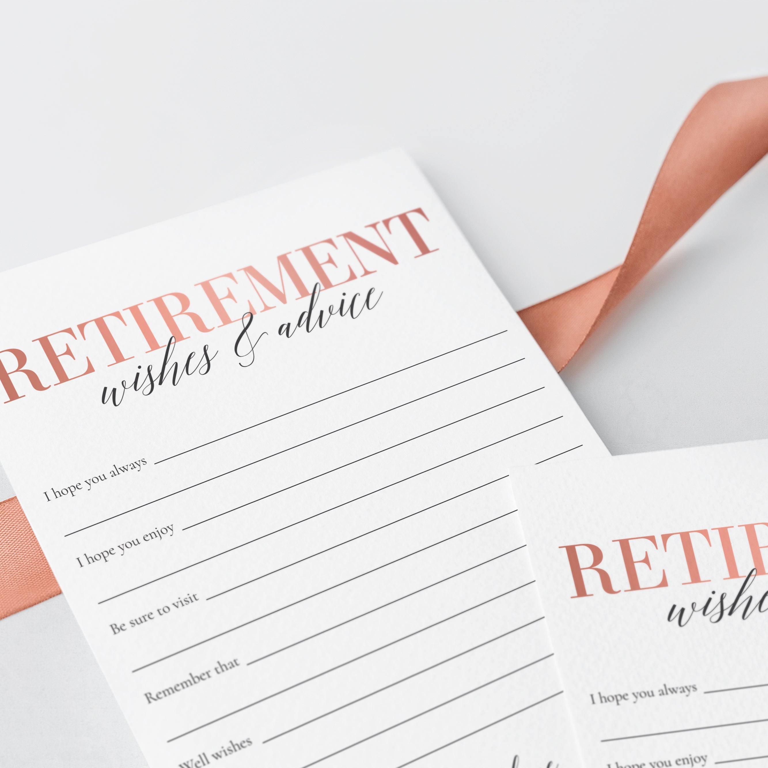 Create an amazing keepsake for the retiree with these women's retirement wishes and advice cards. Let your co-workers, family and friends write down their well wishes and advice and collect the cards for the retiree.... Read more